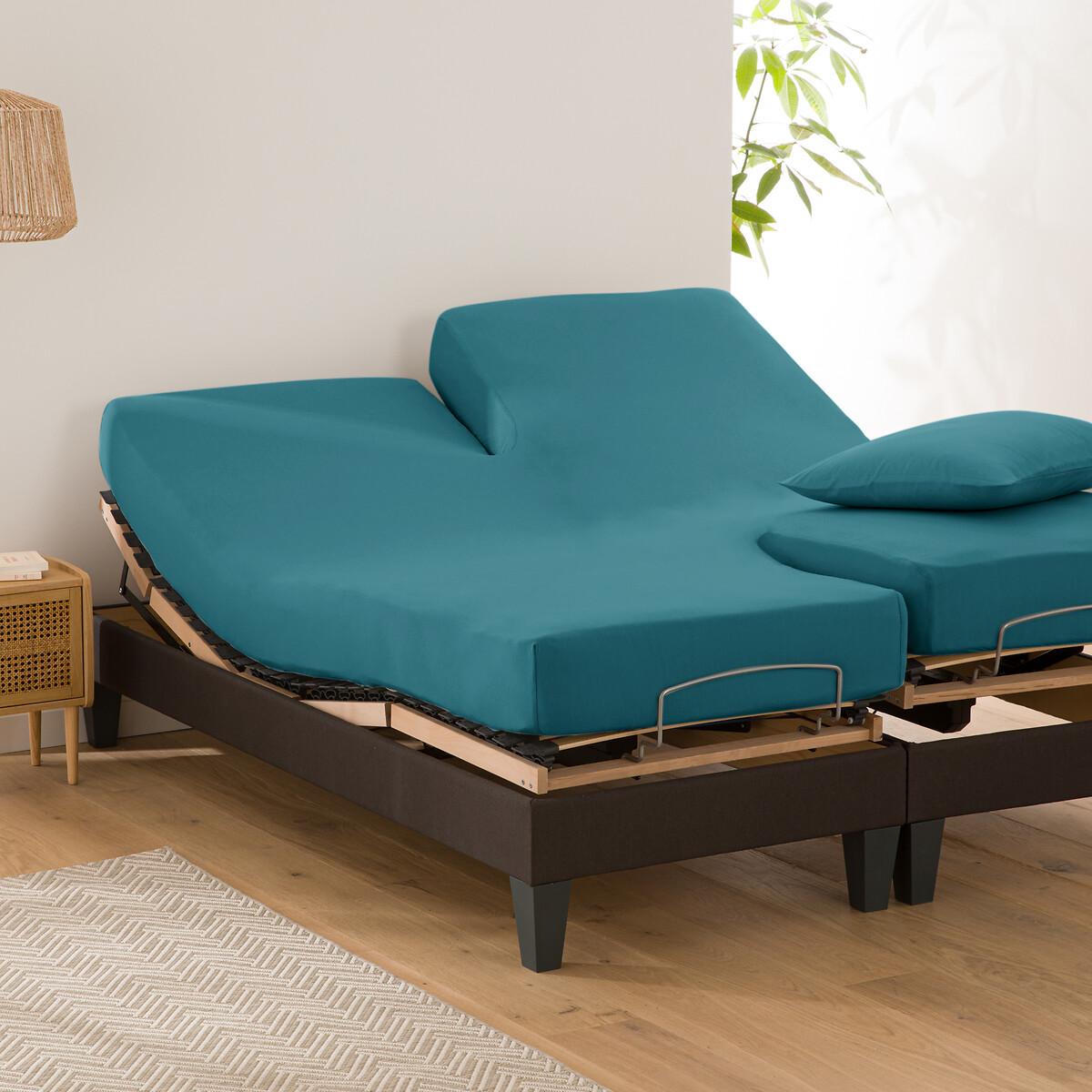 A fitted sheet for an articulated bed in pure cotton canvas. A superb range of current colours to mix at will with the Scenario pillowcases, duvet covers, fitted sheets and flat sheets..Cotton is part of our daily lives. We love it for its suppleness and softness. Easy Care, it is ideal for the beds of young and old alike!Product Details • 100% cotton • 144 thread count • For mattress height 25cm • For articulated beds. Designed for beds with adjustable head and foot : Double bed with adjoining mattresses with independent heads and feet • 4 elasticated corners Care Advice • Machine washable at 60°C • By washing your laundry at 40°C instead of 60°C, you limit energy consumption. Sizes • 140 x 190cm: Double • 160 x 200cm: King • 180 x 200cm: Super King • OEKO-TEX® Standard 100. Standard 100 certification by OEKO-TEX® tests textile products for harmful substances via an independent, international label.