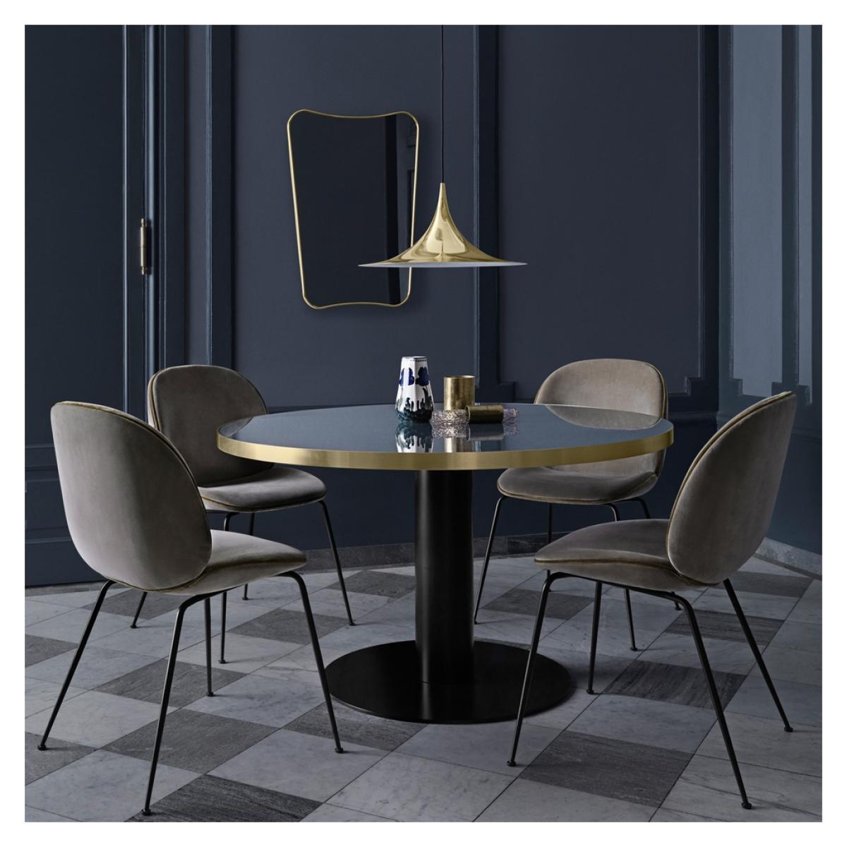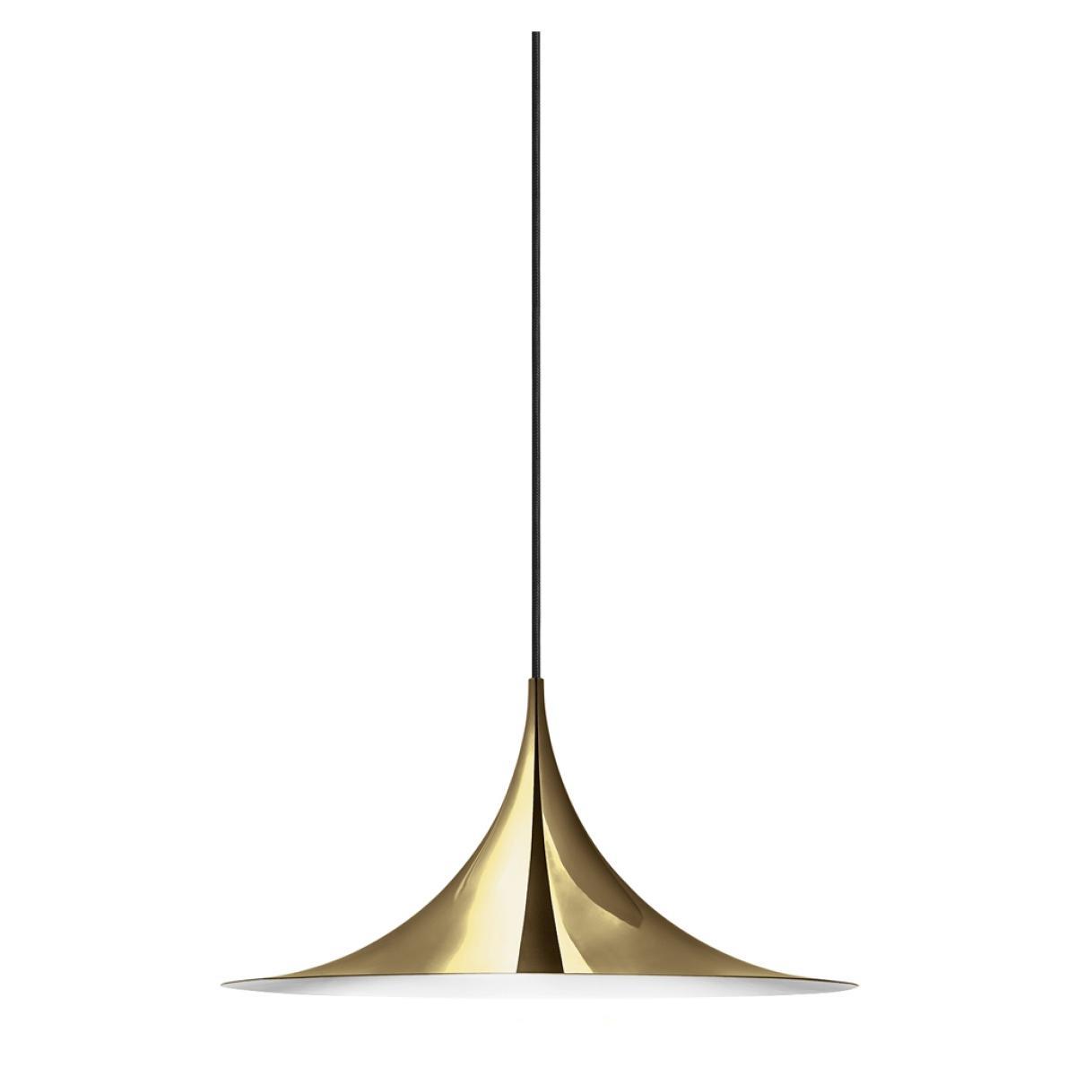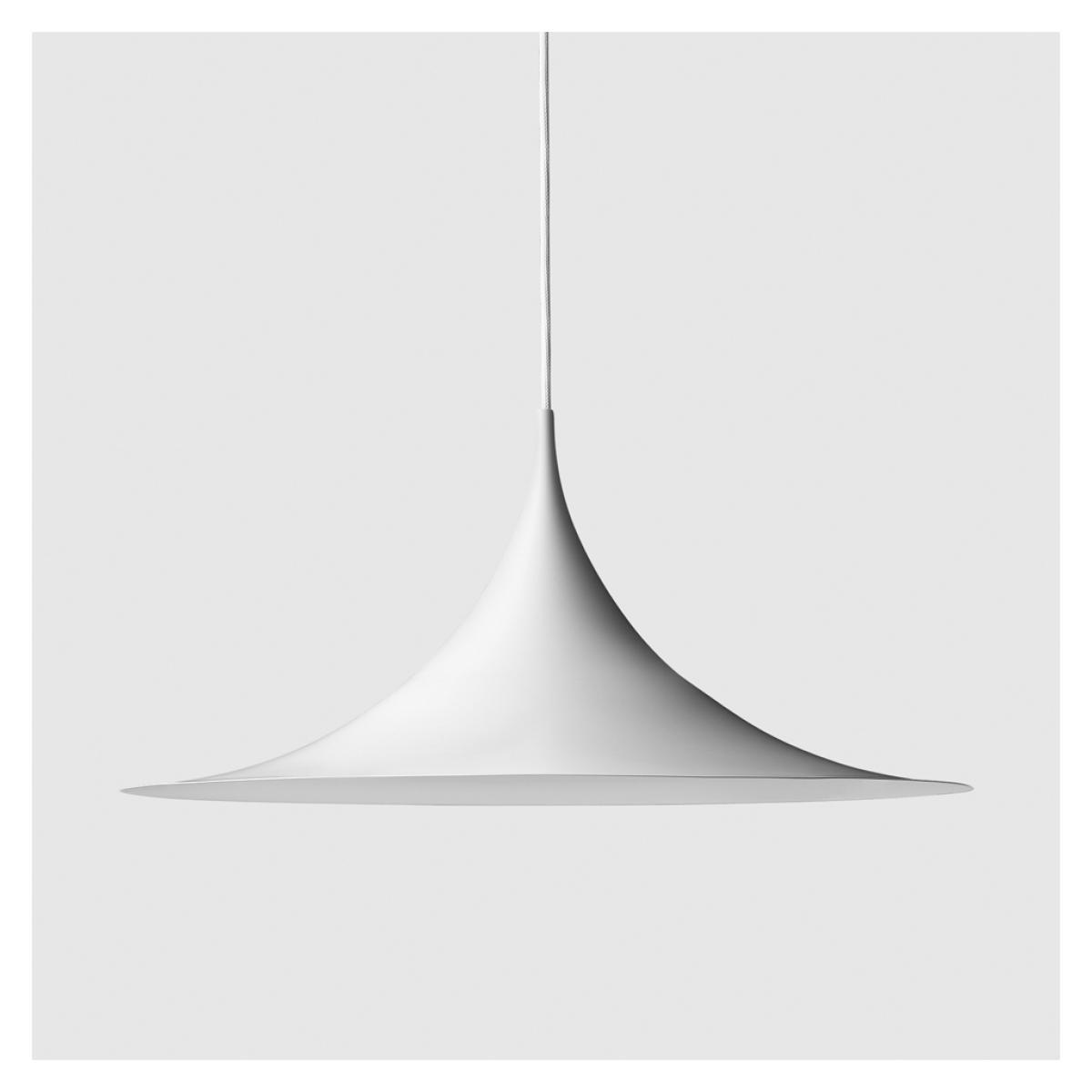 The iconic shape of the large Semi Pendant Light was conceived by placing two crescent shapes back to back to create a distinctive arch form. Hand-spun in aluminium and finished in a range of hues, the elegant Semi Pendant Light hangs from a coordinating white cord. The conical shape of the light casts a direct downward glow, making it ideal for over work surfaces or dining tables. Designed by Claus Bonderup and Torsten Thorup and produced by Gubi, the lightness of form and timeless design of this distinctive light meant that it achieved huge worldwide success during the 1980s, when it achieved the status of best-selling Danish design. Requires: 1 x Max 60W E27 half-mirror max bulb. Discover the rest of the Semi Pendant collection.
