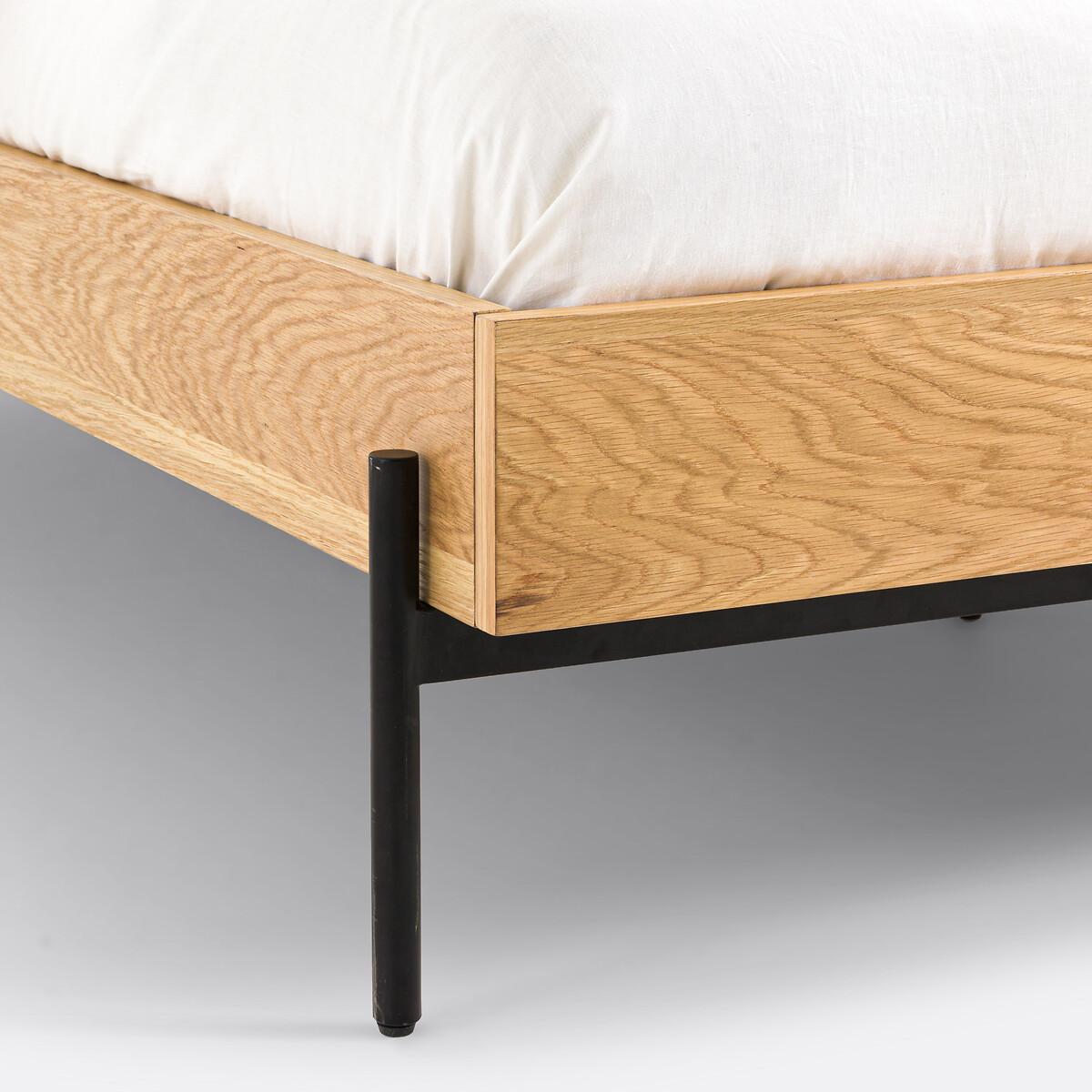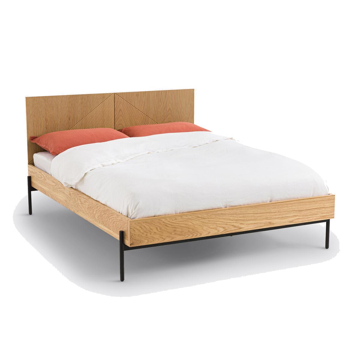 The Lodge Bed is part of the La Redoute Signatures Collection. A selection of exclusive creations, designed by our in-house design studio. Inspiring, easy to live with, trendy... these products have become our customers' favourites. and no doubt yours!. Designed internally by Aurore Delest : "To create the Lodge bed with box spring, I wanted to combine vintage with ethnic influences, notably with carved wood. The streaky wire drawing brings rhythm for a graphic spirit and a contemporary style. "Product Details • In oak and MDF with oak veneer, nitrocellulose varnish finish • Metal legs with epoxy finish • Striped finish on the headboard • Supplied with solid pine slatted baseDimensions. Double Size (140 x 190cm) Width : 151.8cm Height: 91.1cm Length : 198.1cm Weight: 56kg. King Size (160 x 200cm) Width : 171cm Height: 91.1cm Length : 208.1cm Weight: 62kgDelivery:. This product is sold ready to assemble.. Note! Please check that all access points are large enough to accommodate your delivery (doors, stairs, lifts). Dimensions and weight of package:3 parcels. Double size: • L161 x H94.5 x D15cm. 33.5kg. • L200 x H29 x D13.5cm. 20kg. • L145.5 x H22 x D15.5cm. 16kg. King size : • L181 x H94.5 x D15cm. • L210 x H29 x D13.5cm. • L165.5 x H22 x D15.5cm.