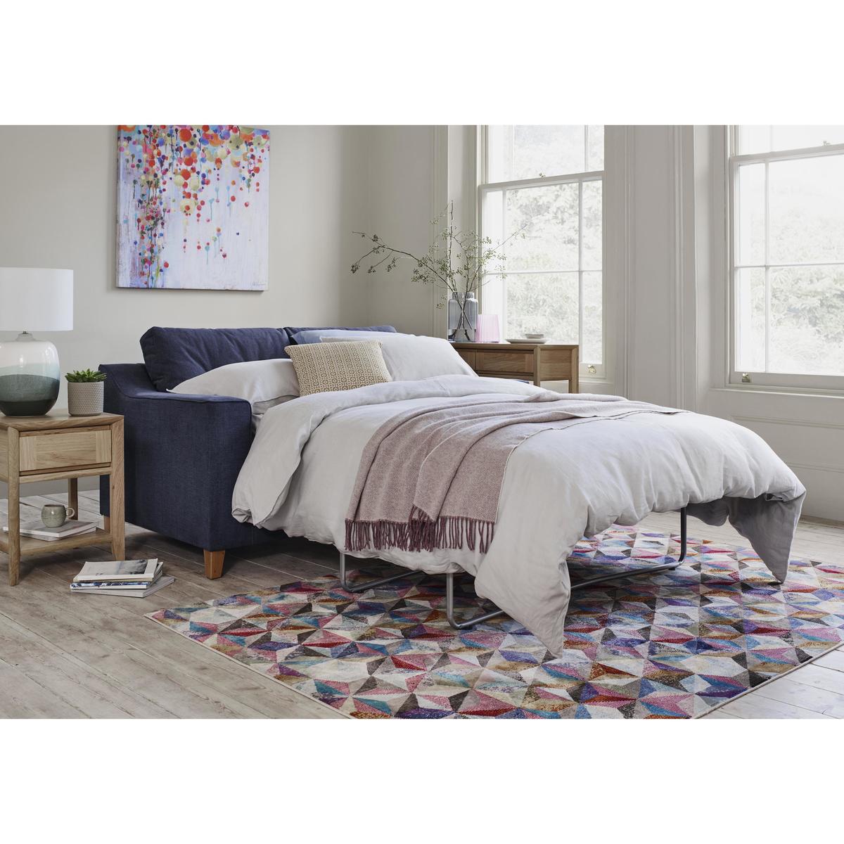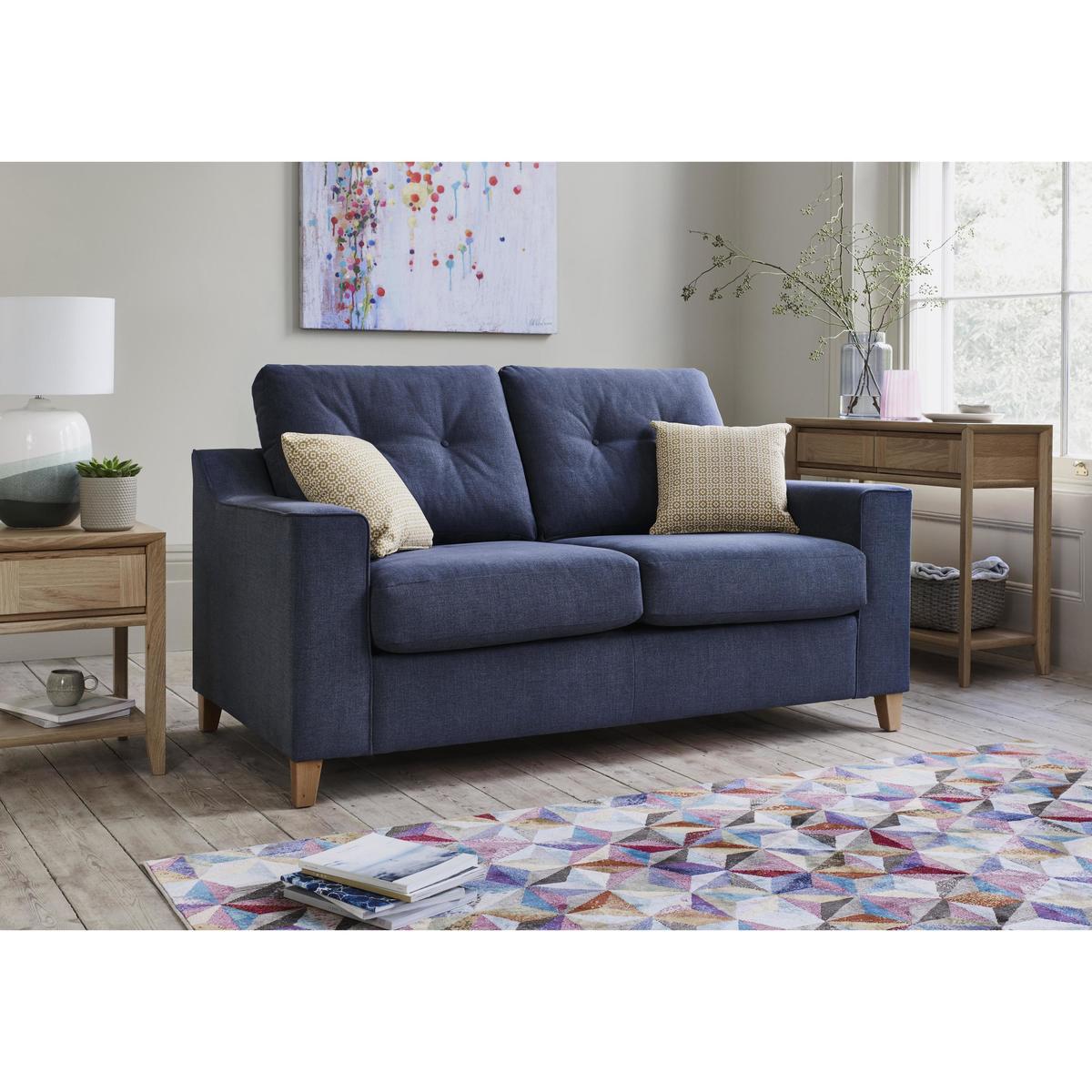 By day, the Sigrid two seater deluxe sofa bed is a stylish and contemporary sofa but by night it becomes a large single guest bed with a high spec memory foam mattress. As a sofa it pampers you with sprung seats and backs and foam with a luxury fibre topping seat cushions. The style of this small sofa bed comes from its relaxed lines, outwardly angled arms, tapered wood feet and buttoned back cushions – this sofa will fit in anywhere. The soft to the touch flat weave upholstery comes in a choice of colours, call 0800 804 8879 for more choices. Scatter cushions in a choice of fashionable accent patterns and colours are available to buy separately. The sofa’s contemporary solid hardwood feet come in a light or dark finish. The versatile, compact Sigrid 2 seater deluxe sofa bed is exclusive to Furniture Village, made in the UK.