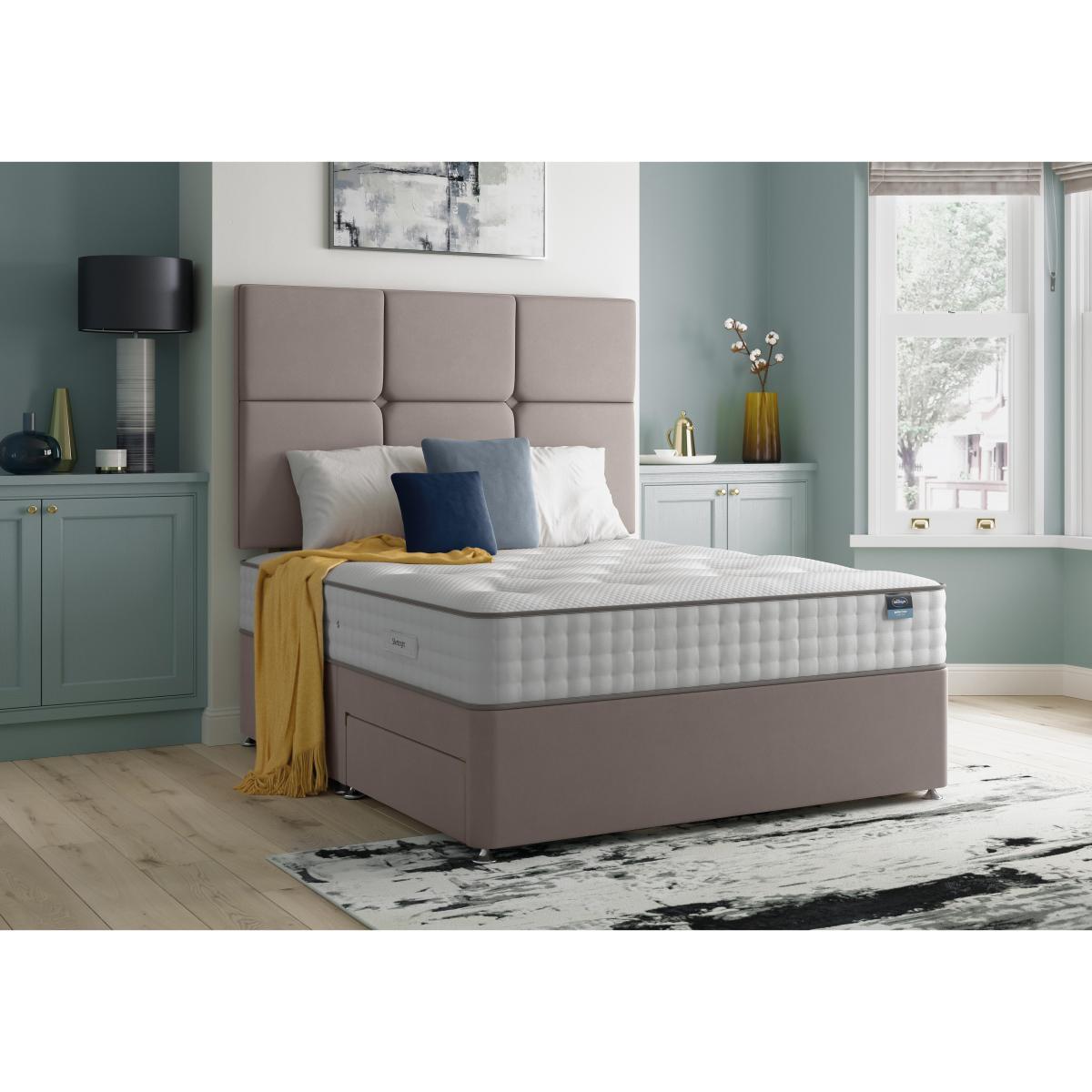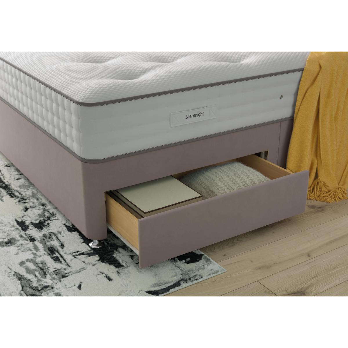 The Silentnight Geltex Luxe 1000 divan set has it all. A pocket sprung mattress with a layer of cooling Geltex and a stylish divan base with choice of drawer storage. Headboard shown available separately. Why you'll love it. Supportive, cooling comfort from Silentnight. At an amazing value price. 1000 responsive pocket springs. Topped with innovative, temperature regulating Geltex. Geltex draws heat from your body as you sleep. So you stay fresh and cool all night long. A ventilated border promotes airflow. Easy care, non-turn mattress. You only need to rotate it occasionally. Luxury fabric upholstered divan base in a wide choice of colours. With no drawers or drawer storage in a choice of configurations. UK made. A Furniture Village exclusive. What you need to know. Mattress type: Pocket springs with Geltex. Depth: 27cm. Firmness: Firm feel. Springs: 1000 pocket springs. Pillow Top: No. Fillings: Pocket springs topped with temperature regulating Geltex. Borders:Ventilated.li>. Edge to edge support: Yes. Cover: Knitted. Requires turning: No. Sizes: Single, double, king, super king. Type of base: Platform top. Drawer configurations available: 2 drawer, 4 drawer, 2+2 drawer. Double, king and super king divan bases are delivered in two pieces for ease of delivery. Mattress care: Please allow mattress to fully recover before use. It may have a faint odour which will dissipate after airing for 4 hours. Due to the pressure relieving properties of the material it may take some time before you become accustomed to the level of comfort and support. Rotate regularly to minimise settling. We recommend the use of a mattress protector.