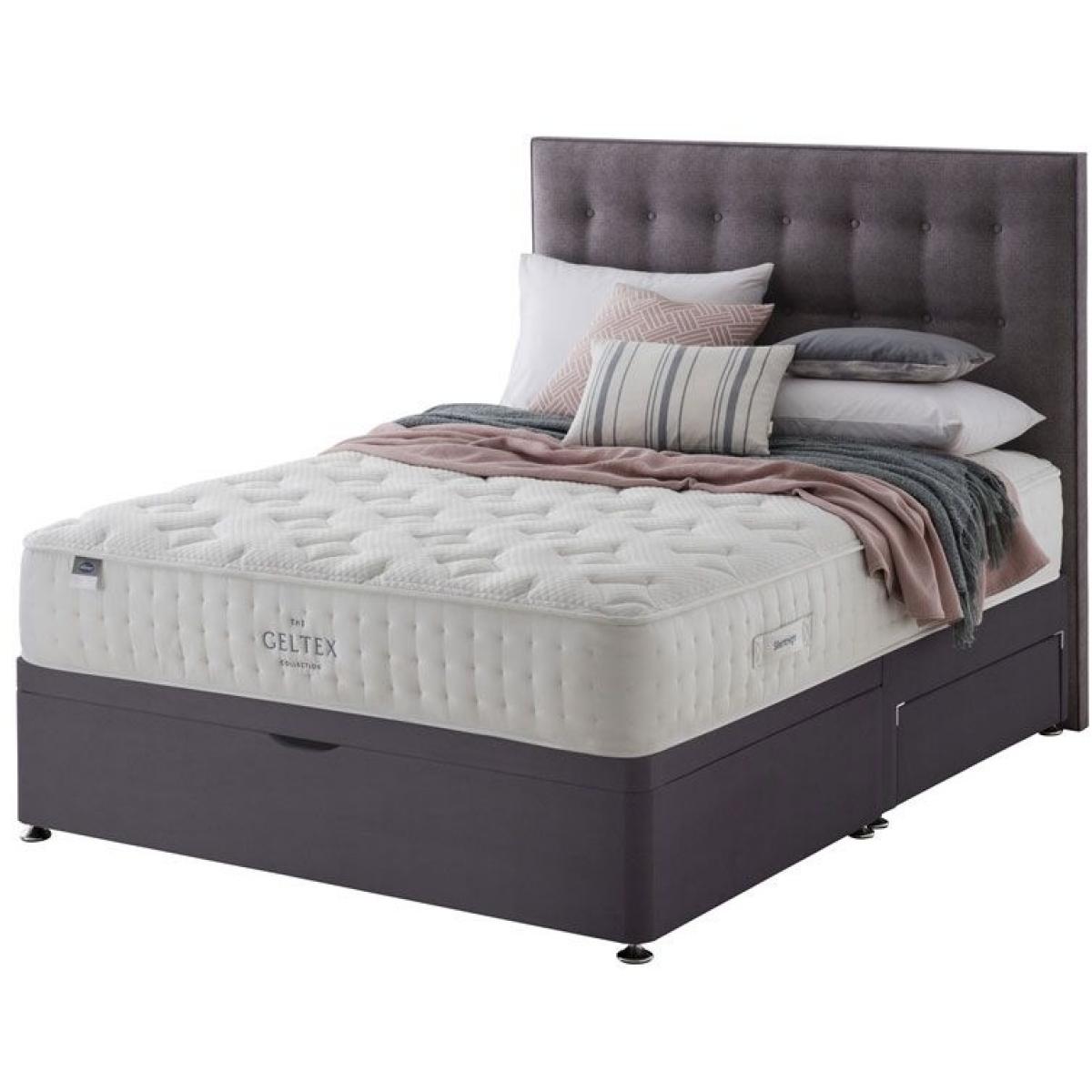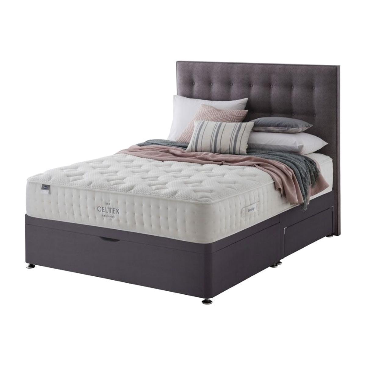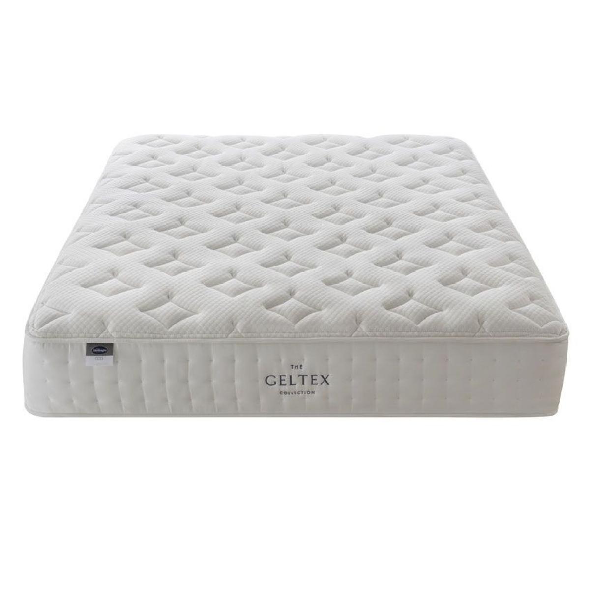 Note - The headboard pictured is not included but is available to purchase separately. The base or frame pictured in the image may not be representative of the specific base you require. Please contact us for more information, if needed. Discover the unique bounce back and breathability of Geltex inside. Actively responding to your body as you sleep, so you wake up felling energised and ready for the day. Geltex is also an extra breathable mattress helping to create a cooler sleeping environment with a breathable open cell structure to let air pass through the mattress to prevent overheating. The single layer of 1000 pocket springs respond independently to weight and delivers individual tailored support to create the perfect comfort for you. Plus the mattress’s medium to soft firmness makes it an ideal choice for those who prefer to sleep on their side or front. The unique miracoil springs offers outstanding support, superior spinal alignment and maximised sleeping space. They also work to reduce "roll together" for less partner disturbance and zoned support where you need it most. All Silentnight Geltex Mattress' are treated with Purotex a 100% natural probiotic that combats allergens and dust-mites, creating a cleaner, fresher and more hygenic sleeping environment. Mattress spring count - 850 Mattress Ticking type - 76% polyester/24% Viscose Firmness - medium soft Base - Spring Type, Wire frame unit Base option - Platform Top 5 Year Warranty All screens vary in colour reproduction and whilst every effort has been made to display the colour as accurately as possible it is for guidance only.