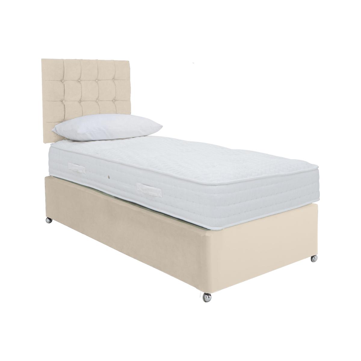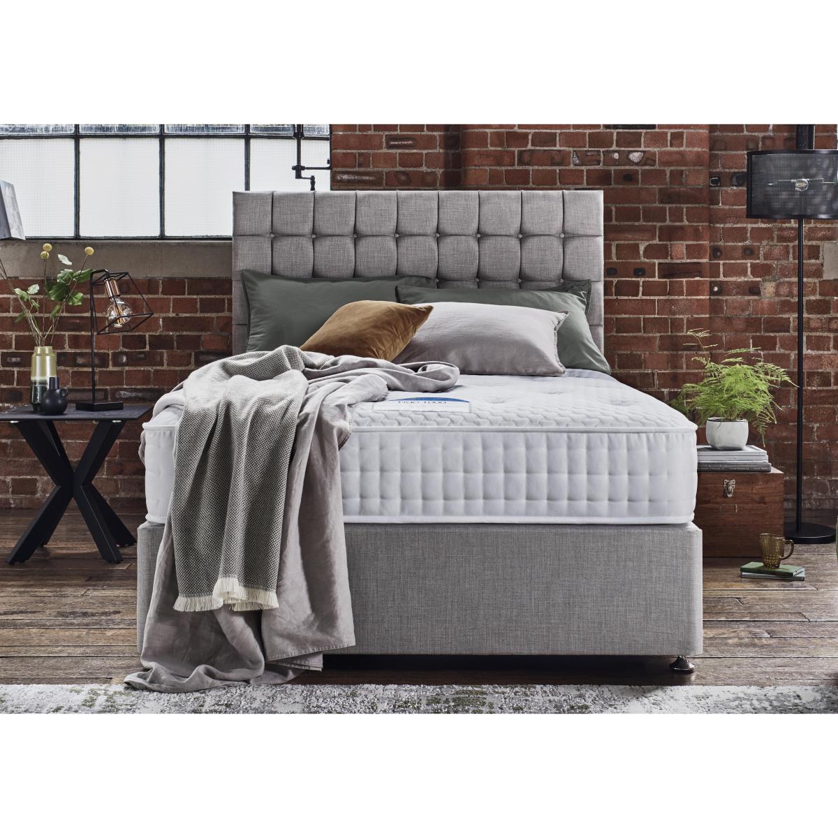 The Sleep Story by Highgrove Ergo 1000 range delivers quality ergonomic comfort at a great-value price. Experience total comfort and support thanks to the 1000 individually pocketed springs which ensure correct spinal alignment while you sleep. And with layers of medical-grade fillings, there’s luxurious cushioning to indulge in too. A generous reflex foam layer delivers total body support, responding to your body’s movements through the night and breathable stretch cover breathes with you while you sleep. Divan bases are beautifully upholstered in a choice of colours and come with a range of space-saving drawer and ottoman storage options. Handcrafted in Britain exclusively for Furniture Village. Firm-feel mattress comfort meets sophisticated divan style in this great-value divan set, only at Furniture Village. The mattress has medical-grade fillings for body-responsive comfort. Why you'll love it. Great-value divan base plus ergonomic mattress with medical-grade fillings. Combination of pocket springs and foam in the mattress provides total body support. 1000 individually encased pocket springs in king size for correct spinal alignment. Foam layer responds to body movement for instant comfort. Hand-tufted. Hypoallergenic. Platform-top base with a choice of optional storage drawers. Available in a wide selection of stylish upholstery fabrics. Made in the UK by Highgrove and exclusive to Furniture Village. The Sleep Story Ergo 1000 range also includes a mattress and ottoman divan sets. What you need to know. Headboard is an optional extra. Mattress type: Pocket spring and foam. Depth: 28 cm. Firmness: Medium. Springs: 1000 pocket springs in king size. Pillow top: No. Fillings: Medical grade foam. Cover: Breathable stretch fabric. Requires turning: No. Base type: Platform top with optional drawer storage. Sizes: Small single, single, small double, double, king and super king. Mattress care: Air for 4 hours before using to remove any odour. Allow at least 4 hours for springs to settle and for mattress to attain its full size. Indentations caused by settlement of fillings or body weight are normal and are not considered defects. If used on a slatted bed frame, the space between slats must be no wider than 7.5 cm. Spaces wider than this may cause excess dipping of the mattress and invalidate the guarantee. Always use a mattress protector. Rotate regularly. Divan base care: Clean upholstery weekly using a soft brush or vacuum with the curtain attachment. Professional cleaning advised for oil- and grease-based stains. Please note: Divan base is supplied in two halves for small double, double, king and super king sizes.