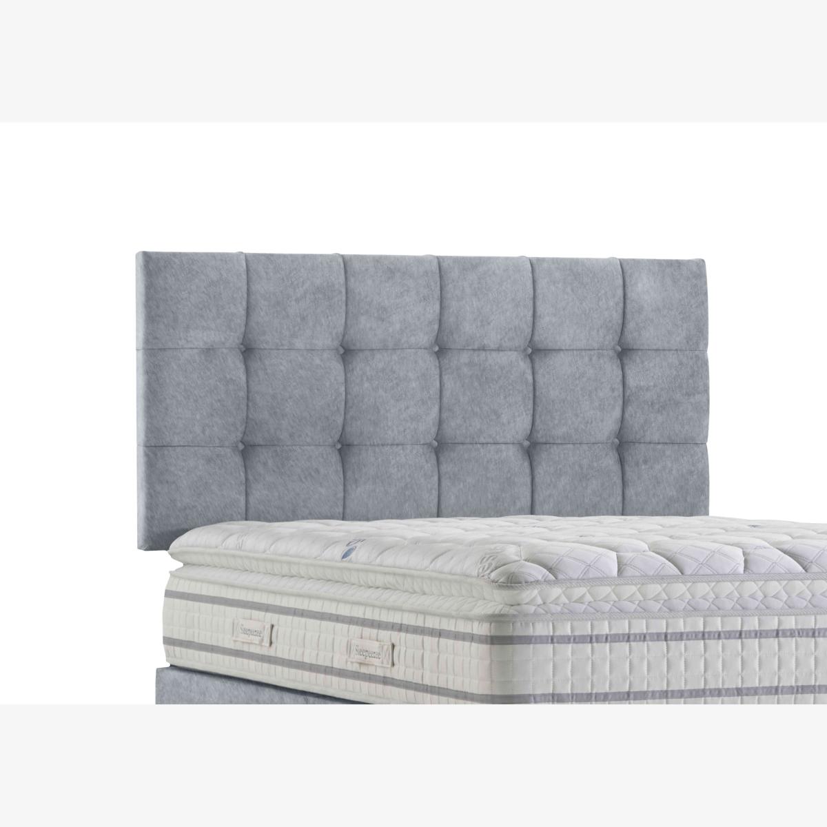 Give your bedroom a touch of modern luxury style with this beautifully cushioned, upholstered and buttoned strutted headboard. Handmade for Furniture Village. Why you'll love it This strutted headboard is neatly finished with two rows of buttoning. Modern geometric appearance suits contemporary bedrooms. Extensive choice of fashionable upholstery fabrics. Attaches easily to any standard divan base. Made by hand in England. Only at Furniture Village. The Apex strutted headboard is part of our Sleepeezee collection. What you need to know Available in single, small double, double, king and super king sizes. Clean upholstery weekly using a soft brush or vacuum with the curtain attachment. Professional cleaning advised for oil- and grease-based stains.