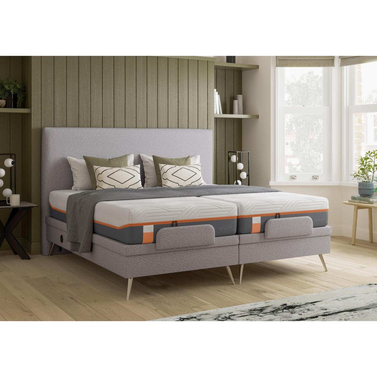 The contemporary Surface bed is a far cry from traditional adjustable beds. Set on cool angled legs and with neatly tailored upholstery, this fabulous bed frame combines high style with exceptional adjustability. Why you'll love it. Beautiful adjustable bed combines well-crafted luxury with designer flair. Contemporary style. Robust and sturdy. Wireless remote-control operation for easy multi-position adjustability. Fashionable stiletto legs with a metallic finish. Integrated USB port for easy charging of phones and tablets. Available in standard bed sizes from small single to super king. Made in Britain. What you need to know. Headboard shown is available separately. Mattress not included. Clean weekly using a soft brush or vacuum with the curtain attachment. Professional cleaning advised for oil- and grease-based stains. Some fabrics can show wear on areas of more use or in direct sunlight. Do not sit on the bed with the foot in the raised position.
