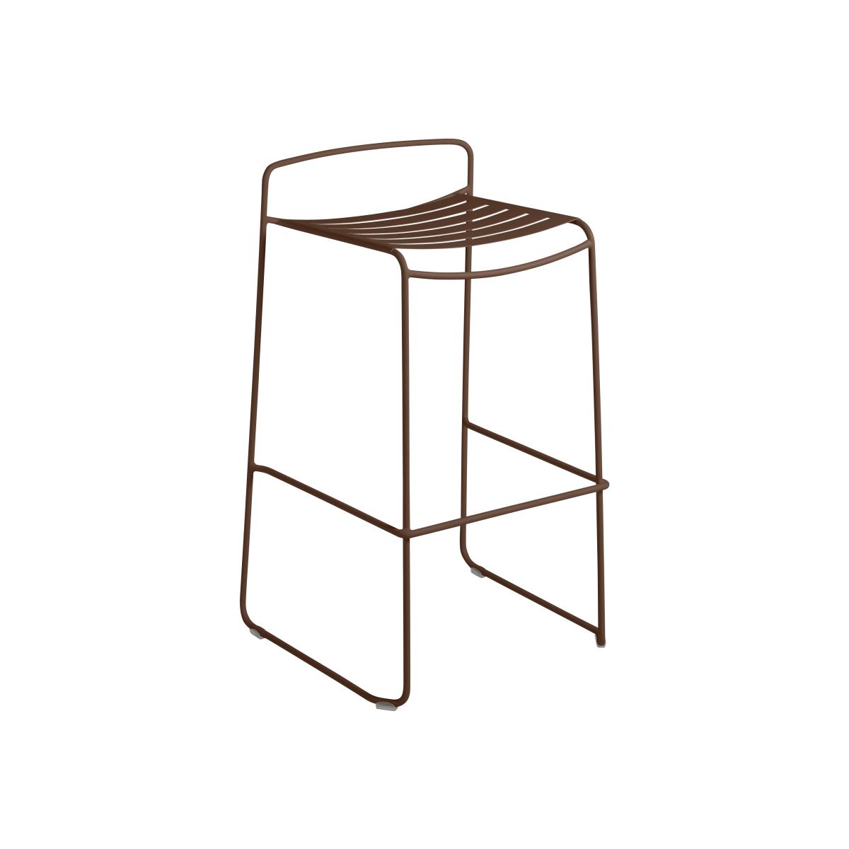 A simple and essential form for a very contemporary elegance. Surprising is a collection all about simplicity, elegance and finesse. This high stool offers an aesthetic coherence between the finesse of the wire structure and the extreme finesse of the seat. The steel wire work which forms the outline in a single whole, grants the range great lightness. This design allows for an overall airy shape to be obtained with a minimum amount of material. The seat is made of thin curved and enveloping slats made from steel sheets. The sled-shaped legs are characteristic of the Surprising collection.