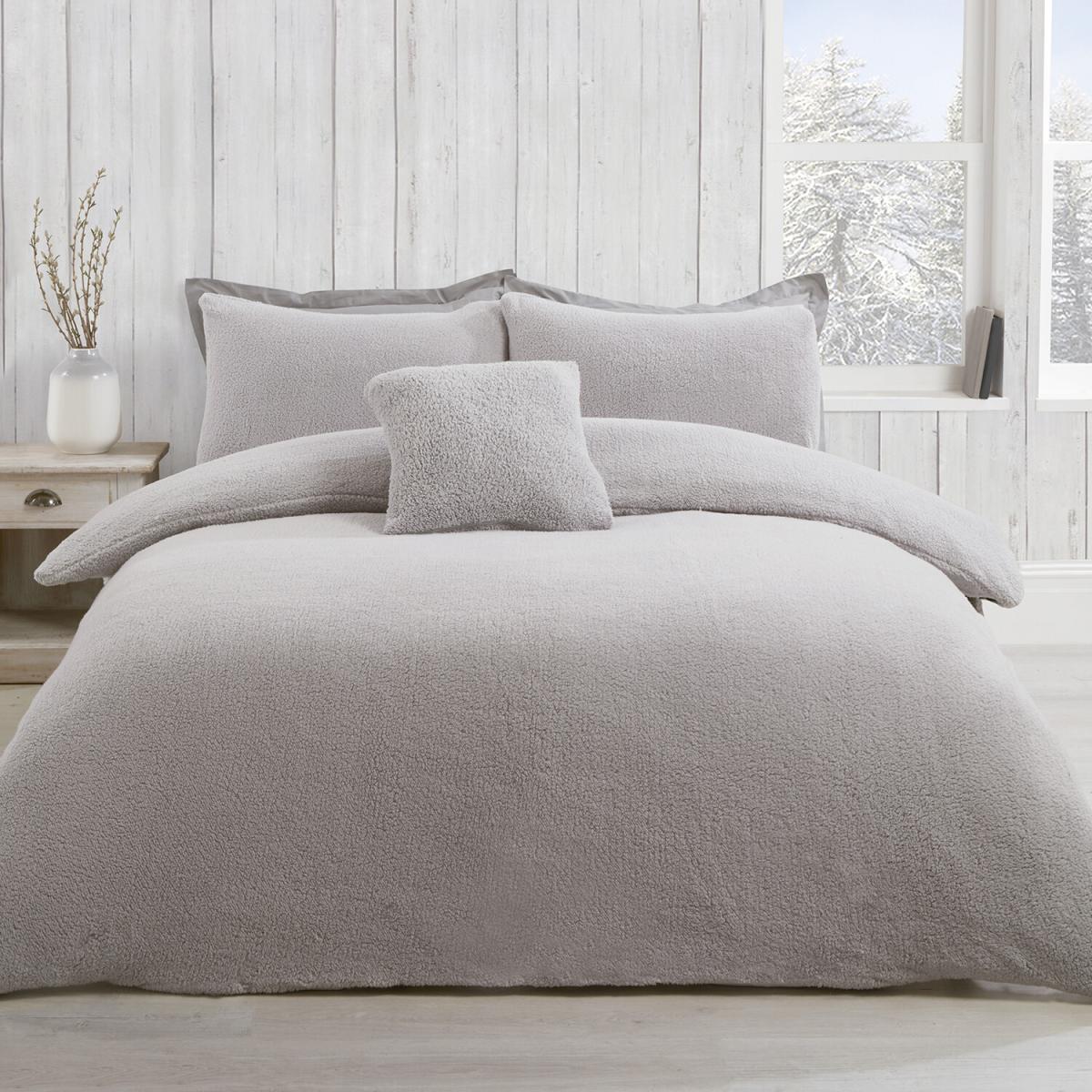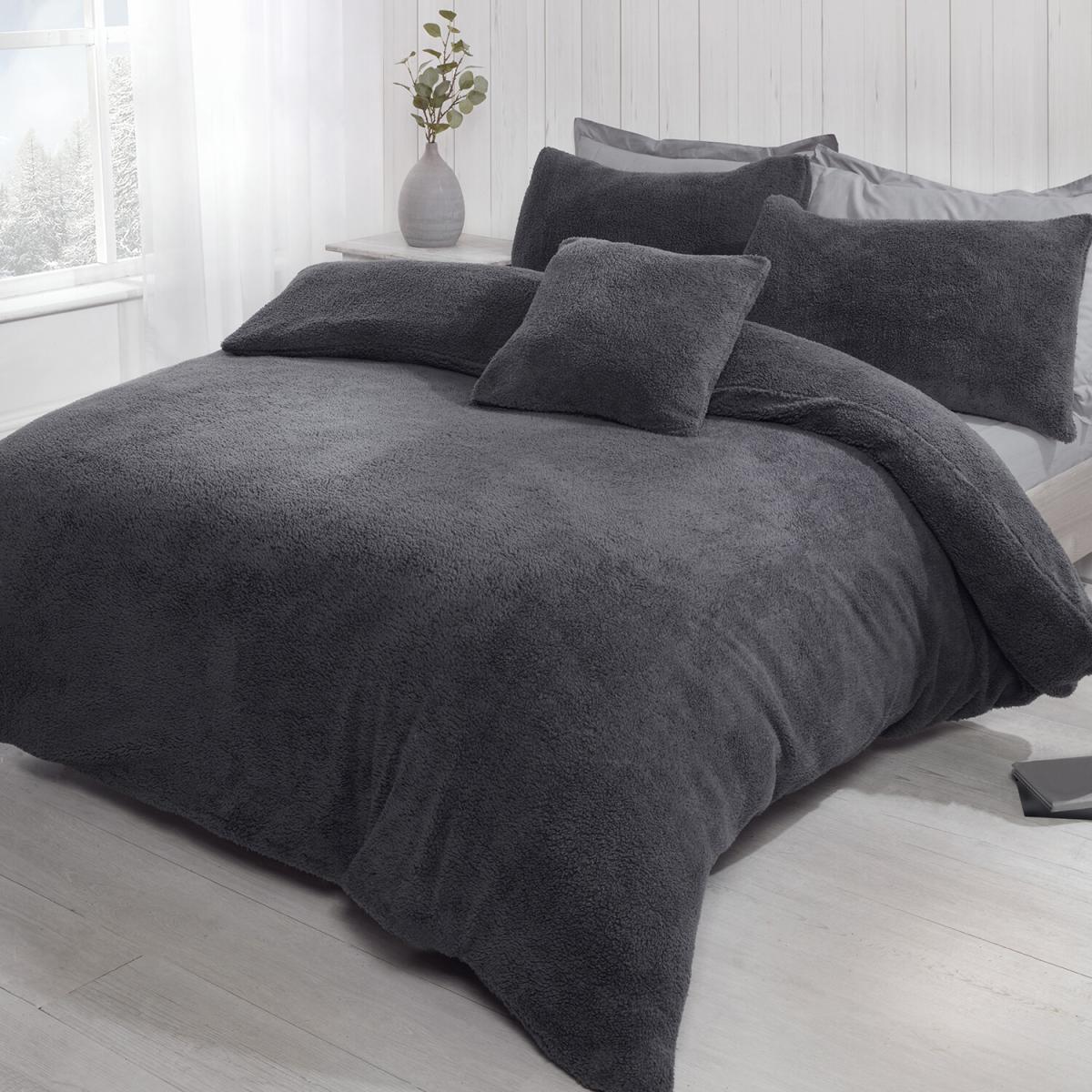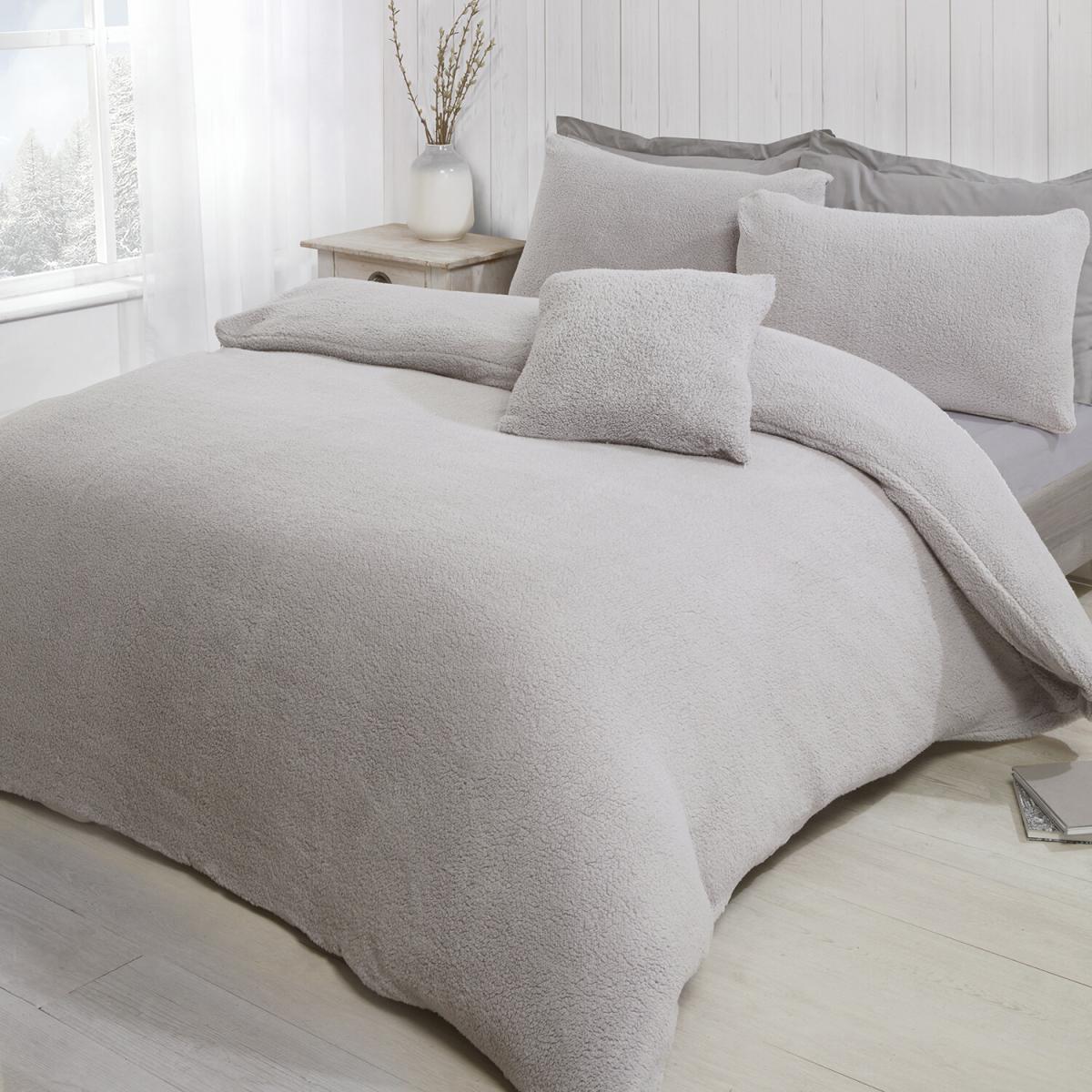This Teddy Fleece Duvet and Pillow Case Set is absolutely perfect for cold winter nights. Super soft and fluffy, this set is covered in a warm fleece that will keep you cosy as the winter nights bring the temperature down. This duvet set is available in either dark charcoal grey for a dramatic look, clean ivory that will bring light elegance, flat silver that will complement anything, or soft pink to create a trendy feminine vibe to your bedroom.