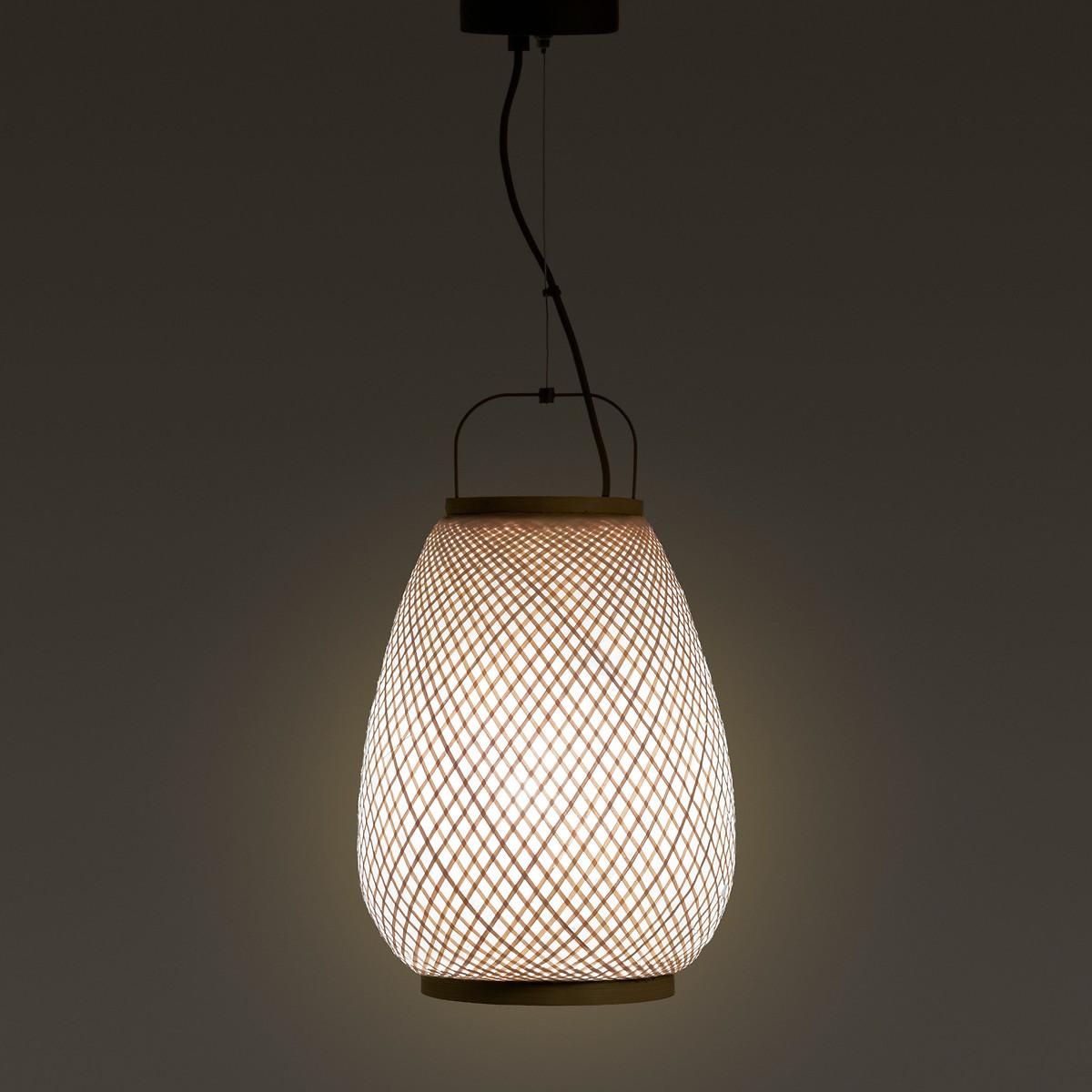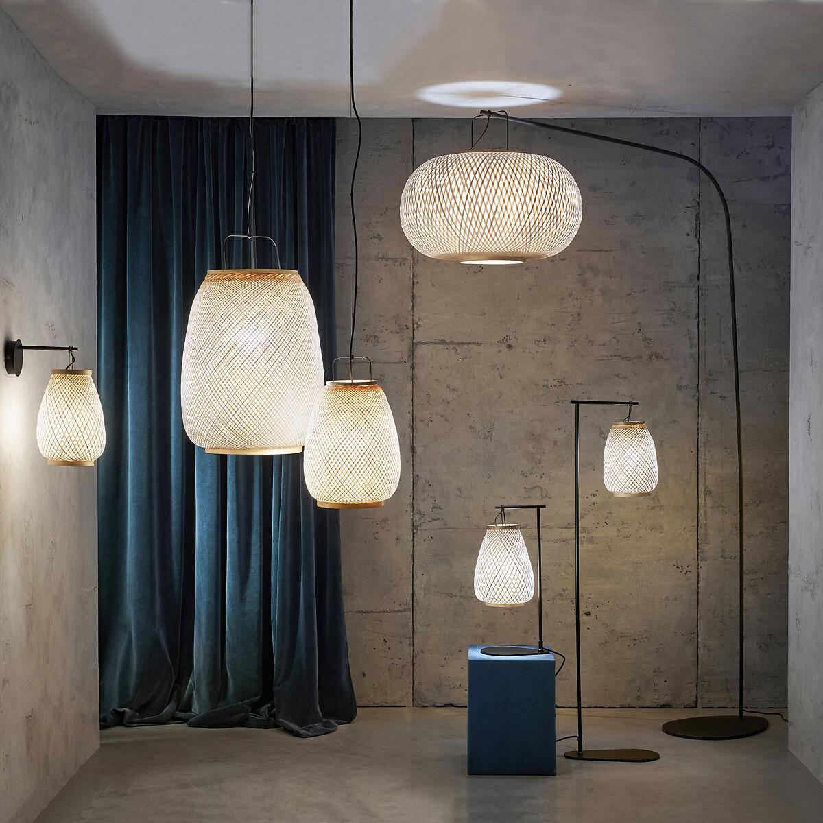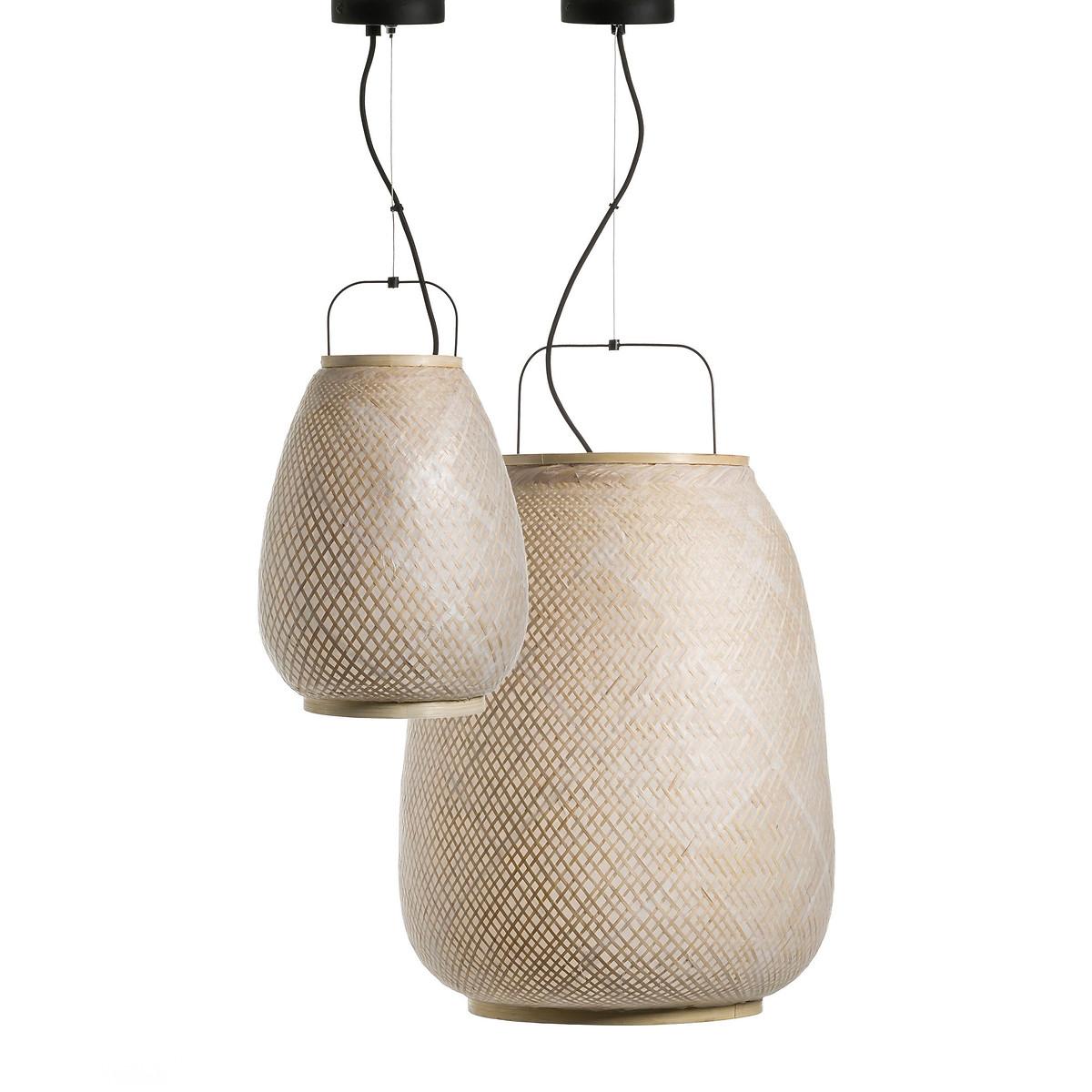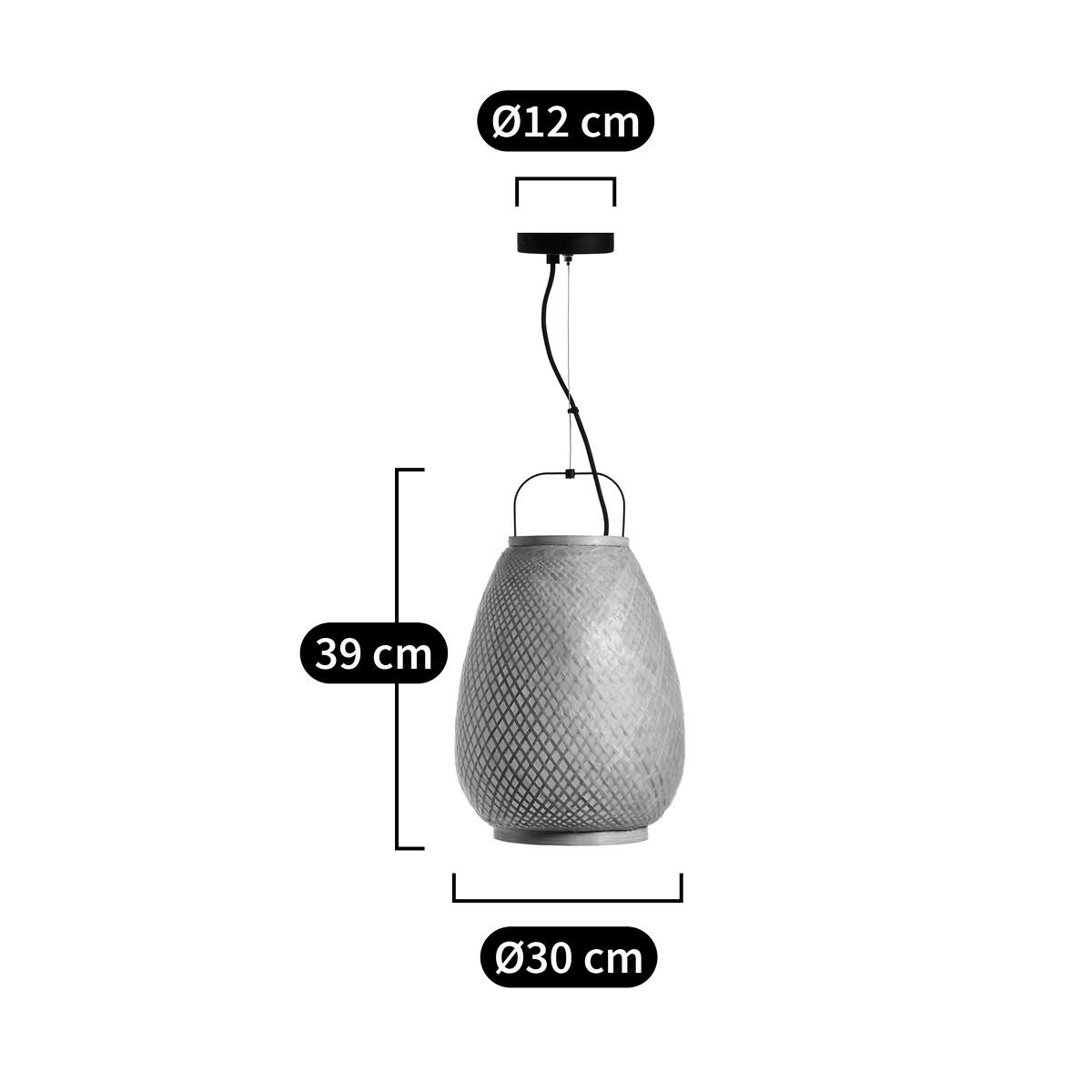 The Titouan Ceiling Light, an Emmanuel Gallina creation, exclusively for AM.PM by Emmanuel Gallina. With its rounded lines and artisan inspirations, it gives off a soft and subdued warm light. Product Details • Lampshade: woven bamboo structure covered with small squares of leaves stacked randomly and by hand. The superposition of the leaves allows the light to be filtered randomly. • Iron plate with matte black epoxy finish • Electric cable covered with matt black fabric • E27 socket for 40W bulb (not included) • Compatible with bulbs in energy classes A-EDimensions • Lampshade:Diameter 30 x H39cm • Cable:Maximum length 100cm • Base: Diameter 12cm, Thickness 2.5cm Parcel dimensions and weight • Length 50cm x Width 32cm x Height 32cm • 1.75kg
