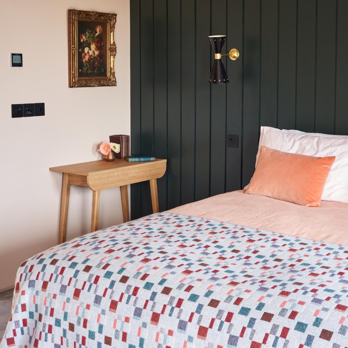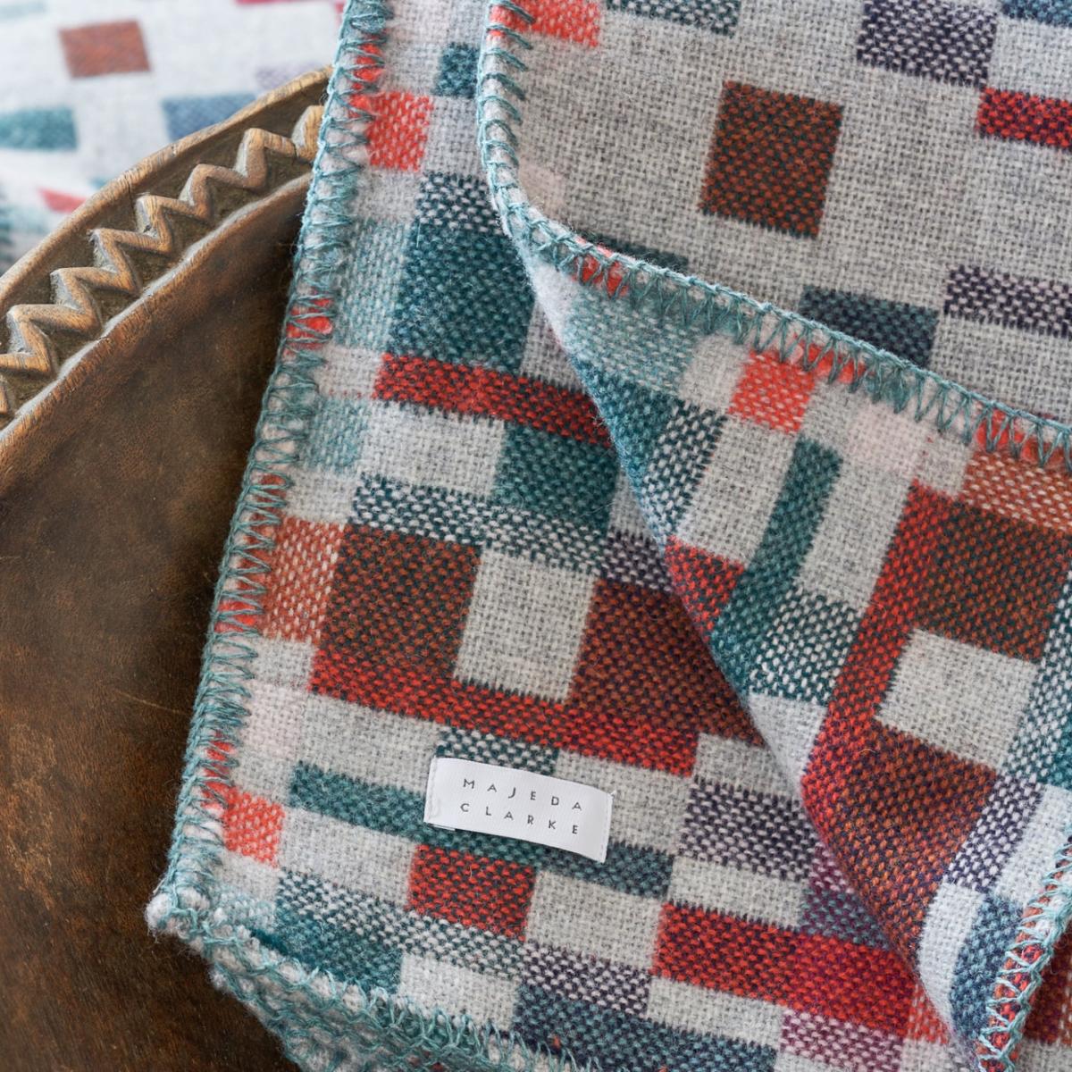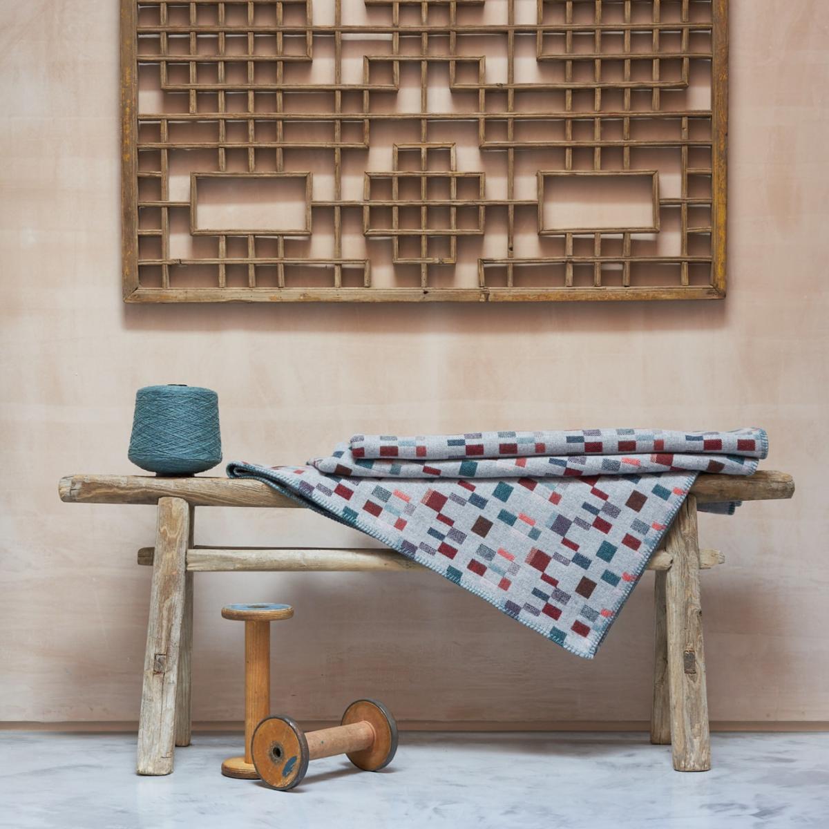 The Tuluk design is a collaboration with Carlowrie Castle to celebrate the life of the intrepid Edwardian explorer Isobel Wylie Hutchison. Isobel journeyed across Greenland documenting the Inuit tribes and the flora and fauna she encountered. This blanket was borne out of her beautiful watercolour sketches and intricate patterns on the Inuit ceremonial cape she wore. Tuluk is the affectionate name given to her by the Inuits. This collection is inspired by extraordinary female explorers and their sketchbooks. This collection evokes an artist’s palette much like the watercolours used by these women on their expeditions. The harsh environments limited what they could carry on their journeys reducing the variability of colour, which is demonstrated in the tonal hues of the design.