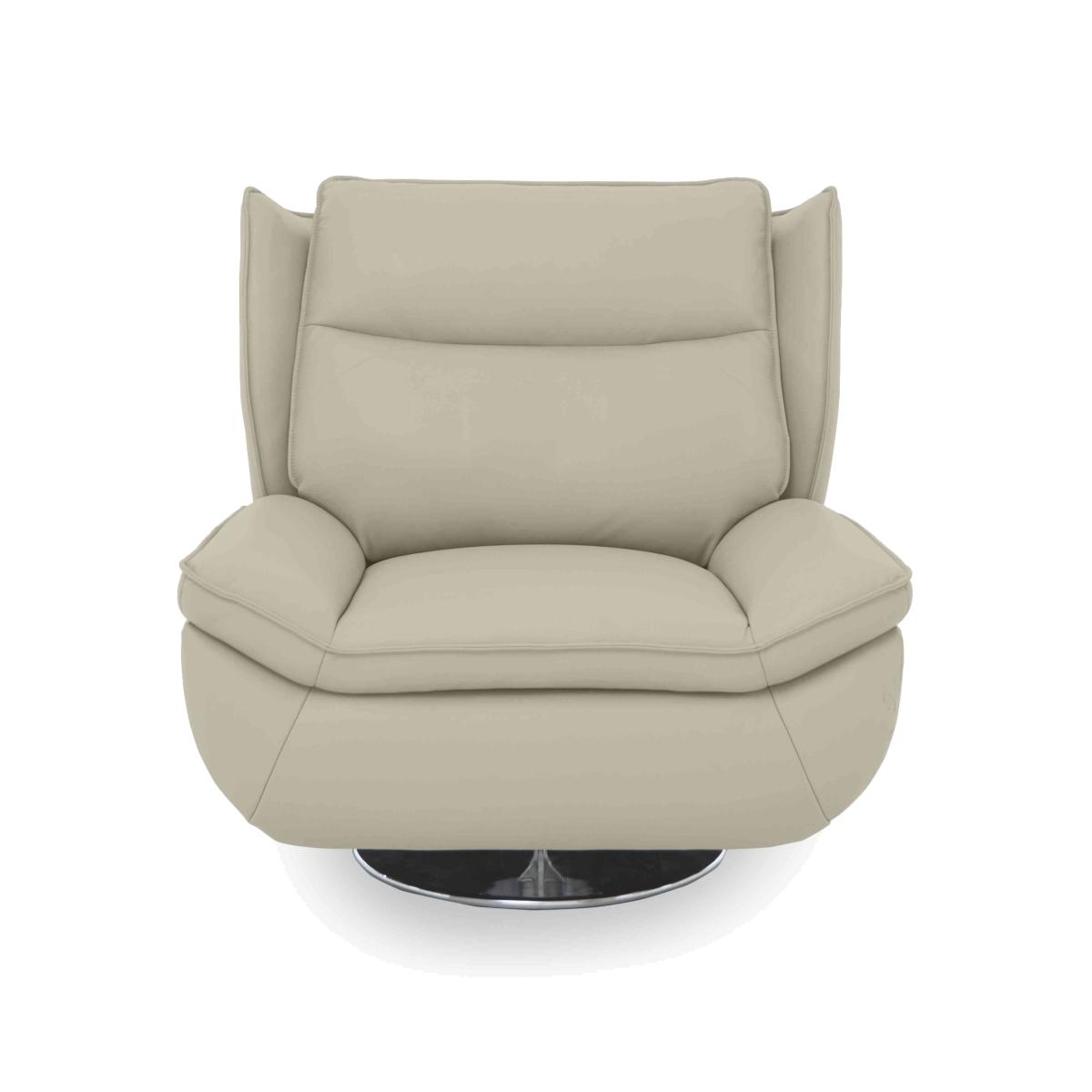 Exuding class and style, this fabulous 1970s-inspired swivel chair is fully upholstered in soft 100% leather. It’s the ultimate in cool living room style. Why you'll love it Sink into this cool 1970s-style leather swivel armchair. Fantastically comfortable cushioning all over – seat, back and arms. Sprung seat for real support. Sturdily constructed with a wood frame. 100% leather upholstery in a wide choice of colours. This leather swivel armchair is exclusively available at Furniture Village. What you need to know Medium comfort level. Seat suspension: pocket spring. Back suspension: webbing. Seat cushioning: foam and Dacron. Seat cushion is fixed. Back cushioning: fibre. Back cushion is fixed. Arm cushioning: foam and Dacron. Leather has unique marks and characteristics with variation in colour and texture. Leather softens with use. Smoothing the tops of leather cushions prevents signs of visual comfort. Please read our upholstery care guide for more advice.