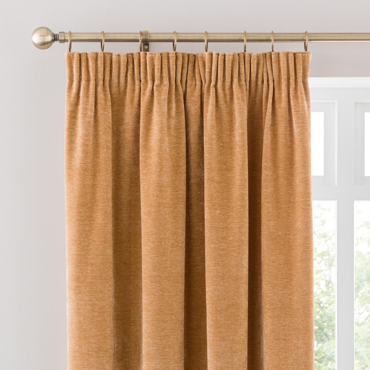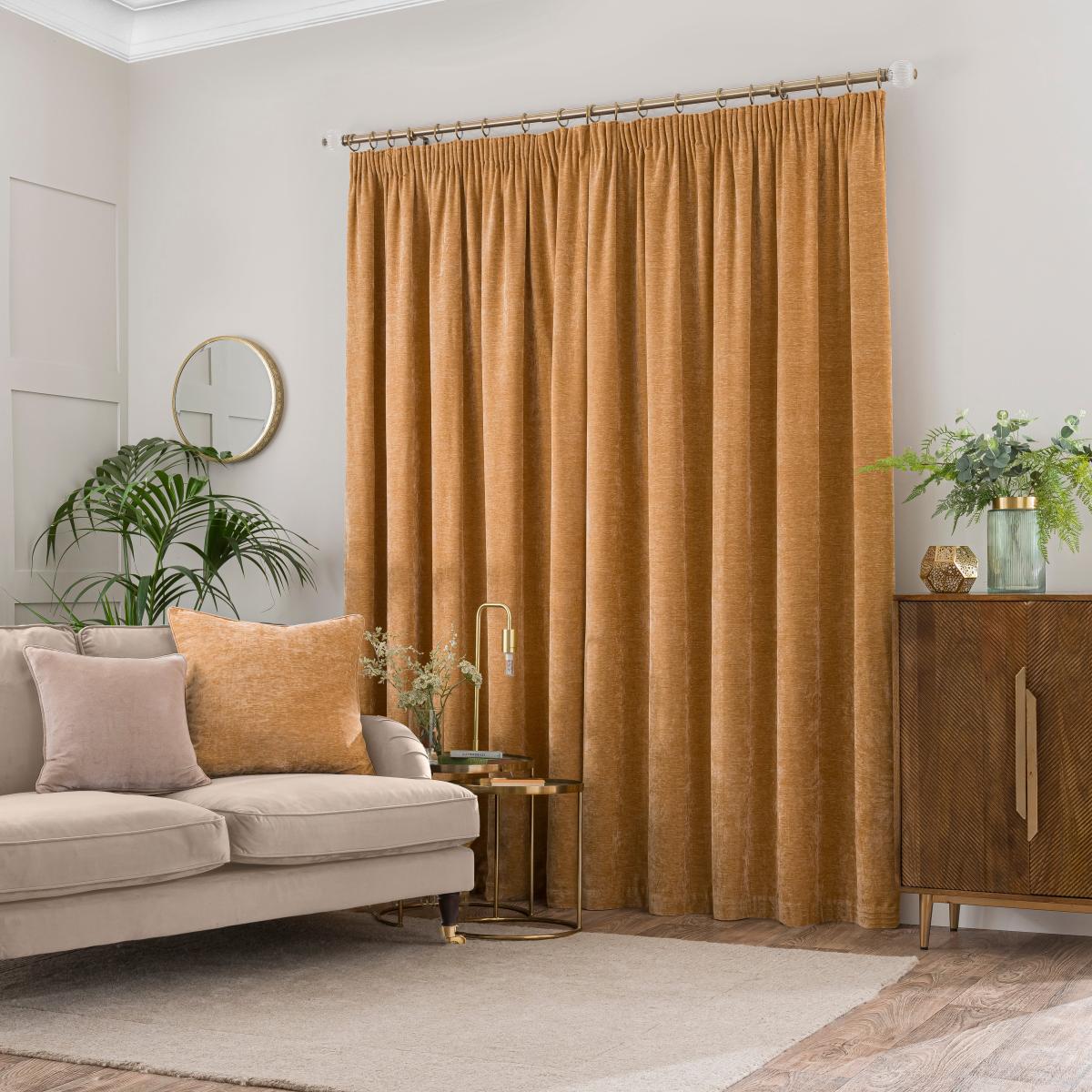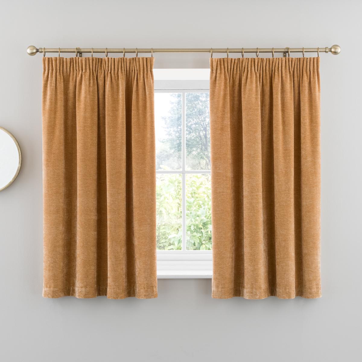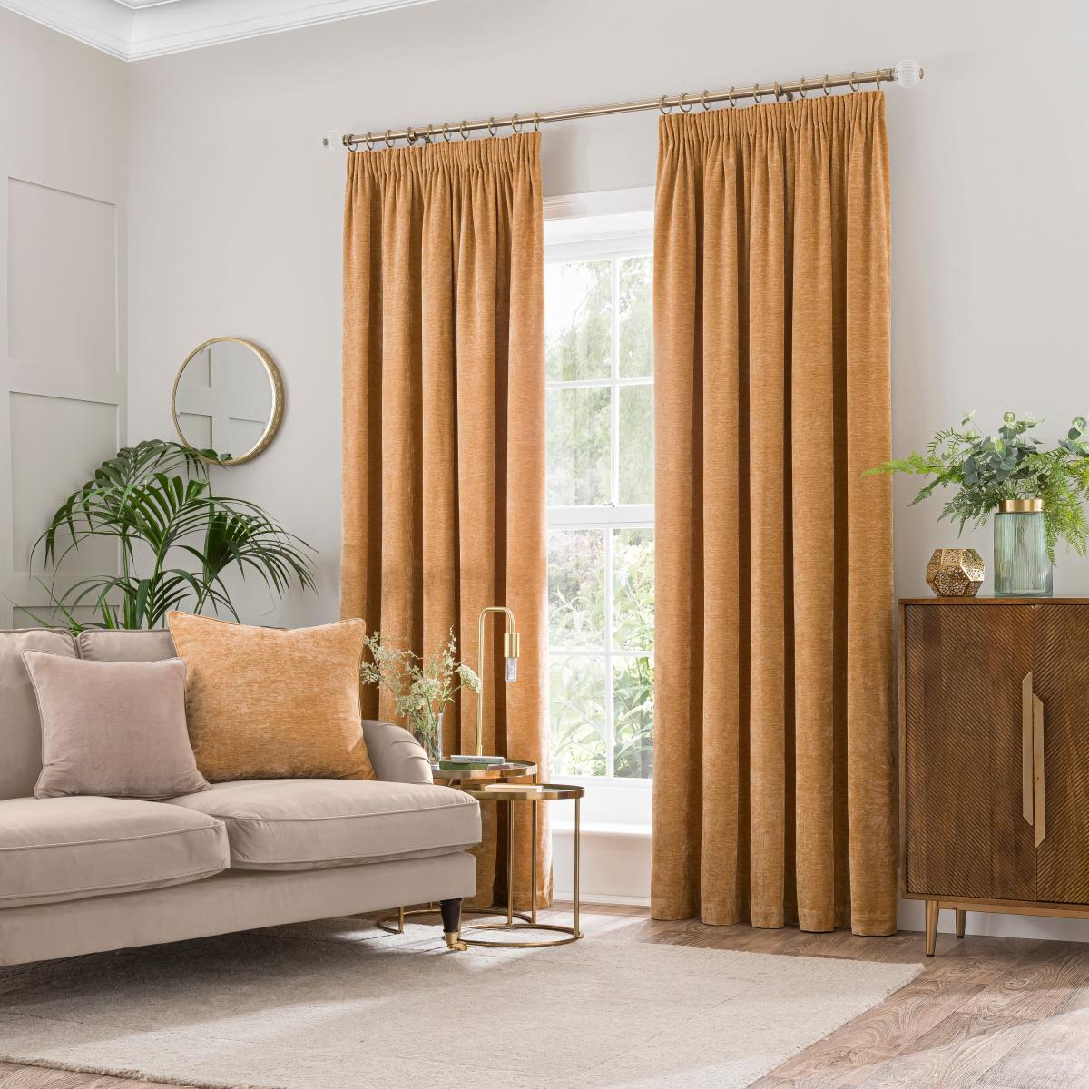 * 1 pair - includes 2x curtain panels* Pencil pleat header* Sumptuously soft velvety feel* Made from recycled polyester* Available in a choice of colourways and sizes* Coordinating cushion available to purchase separately This sumptuously soft pair of Chenille curtains are woven from luxurious chenille yarns resulting in an opulent fabric resembling that of traditional velvets in texture and feel. Fully lined, these curtains will help insulate your home throughout all seasons by blocking external heat in summer and preventing cool draughts and retaining warmth in winter. Available in a selection of sizes and colours to suit your style, match with the coordinating cushion for a truly sumptuous look. The size of the curtains shown is the size of 1 panel, you will receive 2 panels of this size. Choose the width that is closest to your pole length for full look. This collection is verified by OEKO-TEX and independently tested for harmful substances as well as manufactured using sustainable processes under socially responsible working conditions.