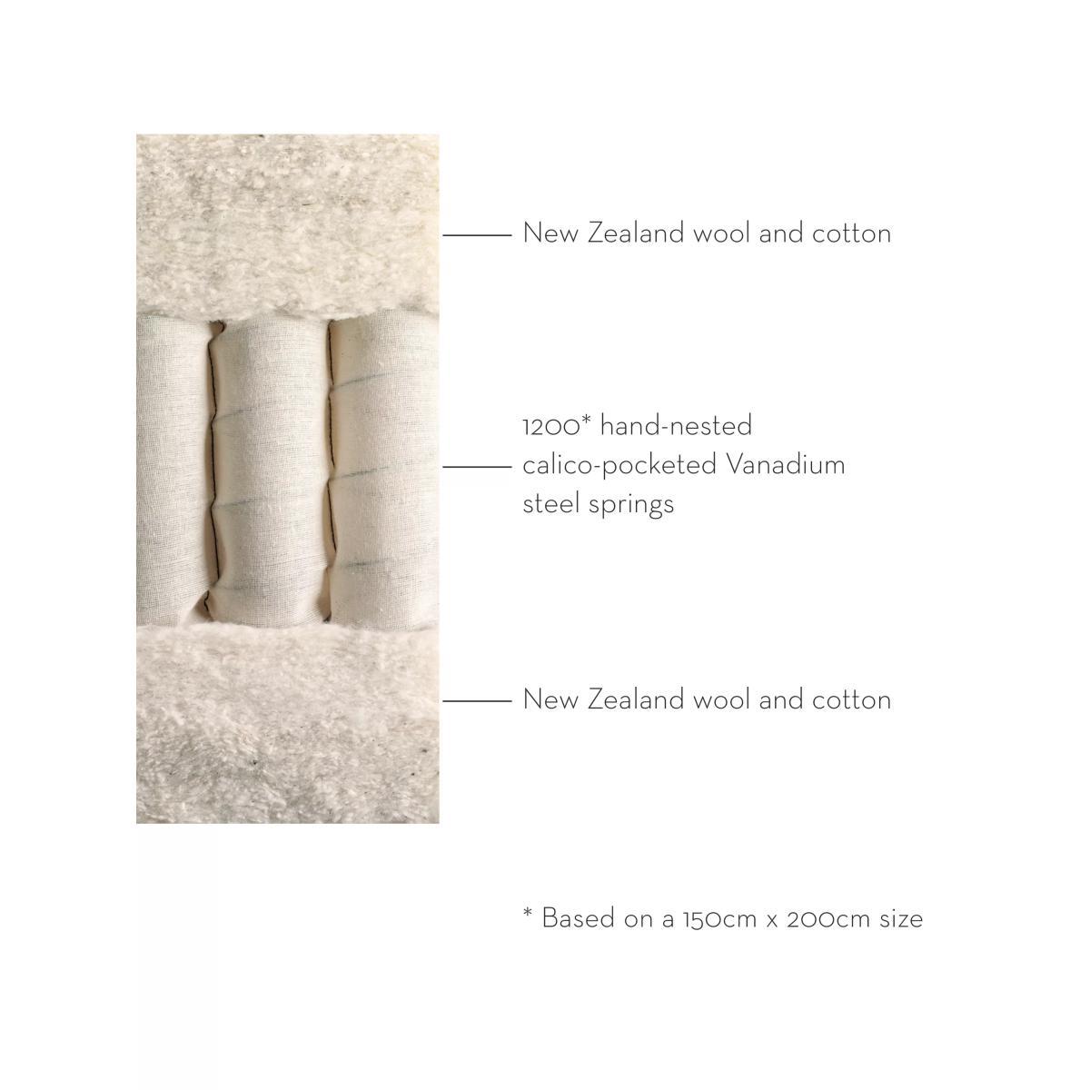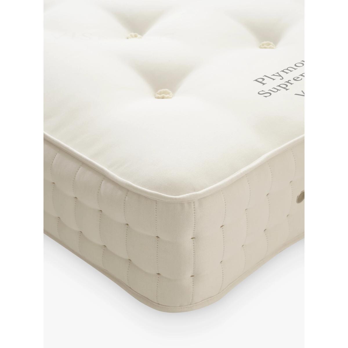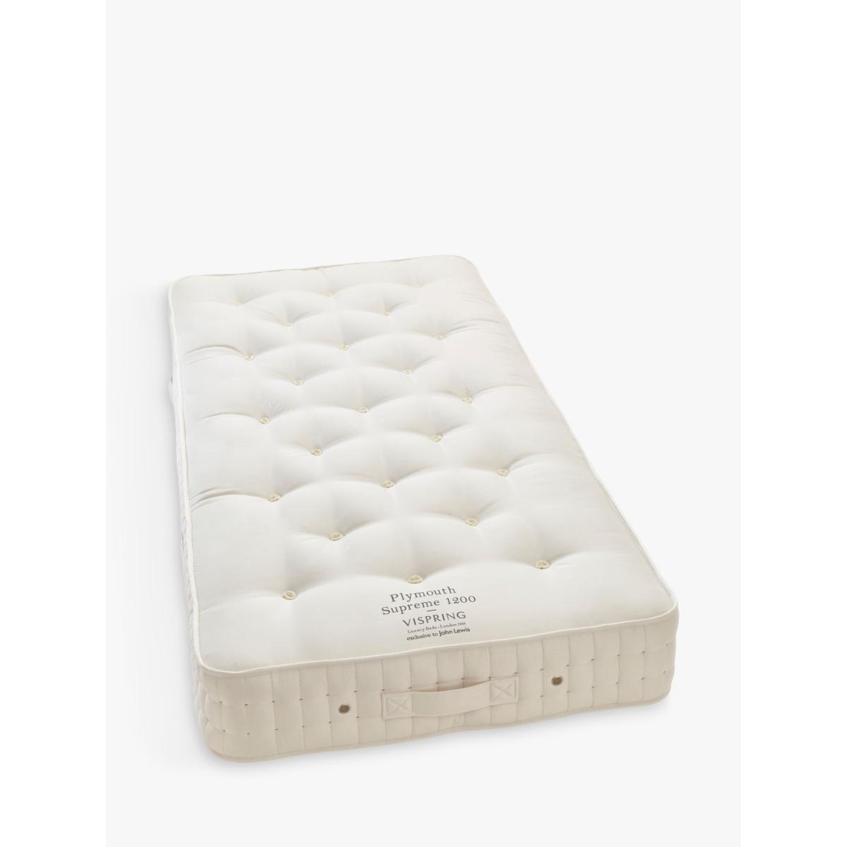 Made in the UK The Plymouth Supreme 1200 range of mattreses from Vispring are designed with layers of natural materials alongside a pocketed Vanadium steel spring system. Handmade in Plymouth with a total of 1200 pocket springs in the king size model, this range offers tailored support each night and a medium tension level of comfort. Natural Materials Filled with generous layers of insulating New Zealand wool and breathable pure cotton, this mattress maintains a natural airflow throughout the night. Providing a cushioned and supportive feel, sustainably-sourced natural materials also wick moisture away while you sleep, so that you feel cool and comfortable, while ensuring that your sleep environment stays hygienic. Vanadium Steel Pocket Springs This support system is designed with hand-nested springs in a honeycomb formation, to offer tailored, responsive and effective support for your entire body. Enveloped by the natural fillings, pocket springs also help to maintain the structure of your mattress. M-PURE Cover M-PURE is an exclusive, sustainable and chemical-free flame retardant ticking. This cover has passed rigourous testing that's required by the British Safety & Fire Regulations. Made from a natural, bio-based raw material, it continues to reduce the environmental footprint of Vispring products throughout their full life cycle. Cotton felt tufts and 2 rows of hand side-stitching offer a premium finishing touch. Vispring 30 Year Guarantee To register your guarantee, please click Try before you buy This is an important purchase and it’s worthwhile to try your choice of mattress in store to make sure it's right for you. Our store Partners will be able to tell you more about its benefits, and recommend options based on your needs.