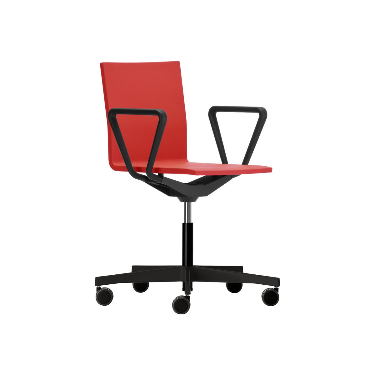 Designed by Maarten van Severen for Vitra just over two decades ago, the minimalist red- and black-hued.04 Office Chair follows a 'less is more' concept. Instantly recognisable thanks to its sleek, slimline shape, the height-adjustable chair retains a discreet and elegant aesthetic whilst providing extraordinary comfort. Crafted from resilient polyurethane foam, the seat's ergonomic shell rests on a steel frame and five-star swivel base. At the same time, a rubber ball joint allows multi-directional movement, and fitted armrests provide extra support. Having studied architecture at the Art Academy in Ghent, Maarten van Severen designed his first pieces of furniture in 1986 and founded his own workshop in 1987. With a focus on form, material and construction, van Severen is devoted to rejuvenating essential furniture such as chairs, tables, and cabinets.