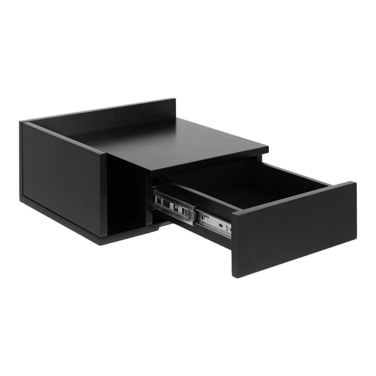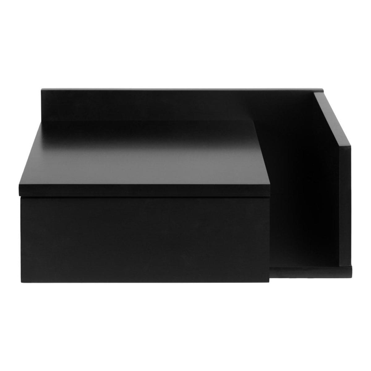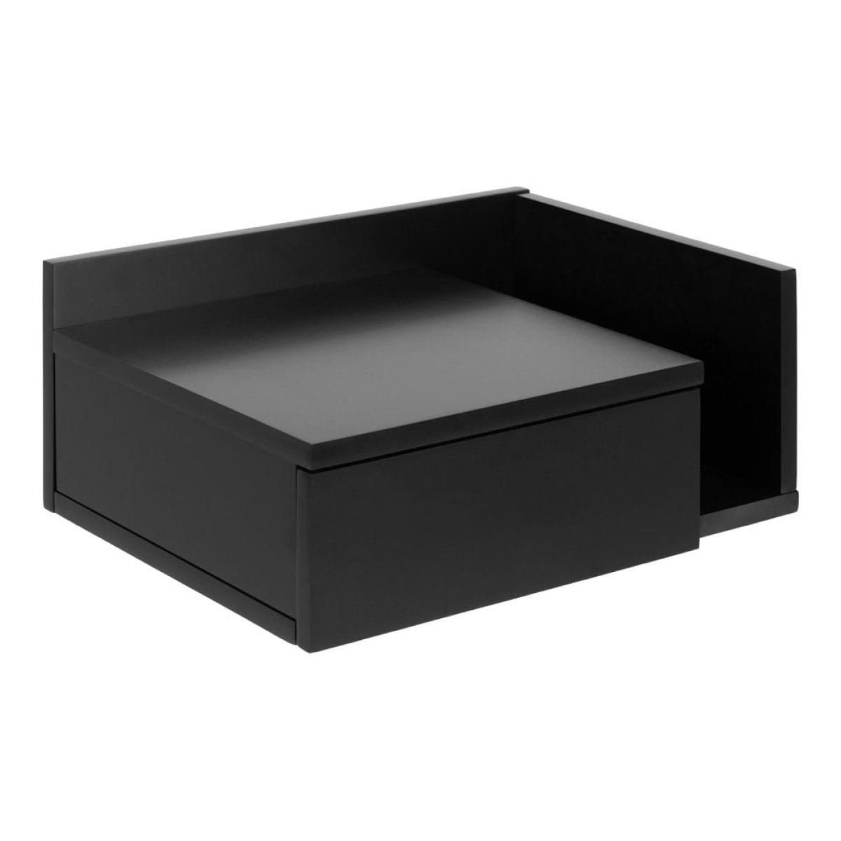 If you prefer a simple minimalist design for your bedroom, we have the ideal bedside table for you. The Ashlan in black wood can be attached to your wall at any height you need for a clean yet natural vibe. Featuring an open side compartment, one drawer for an array of essentials, and a neat surface.
