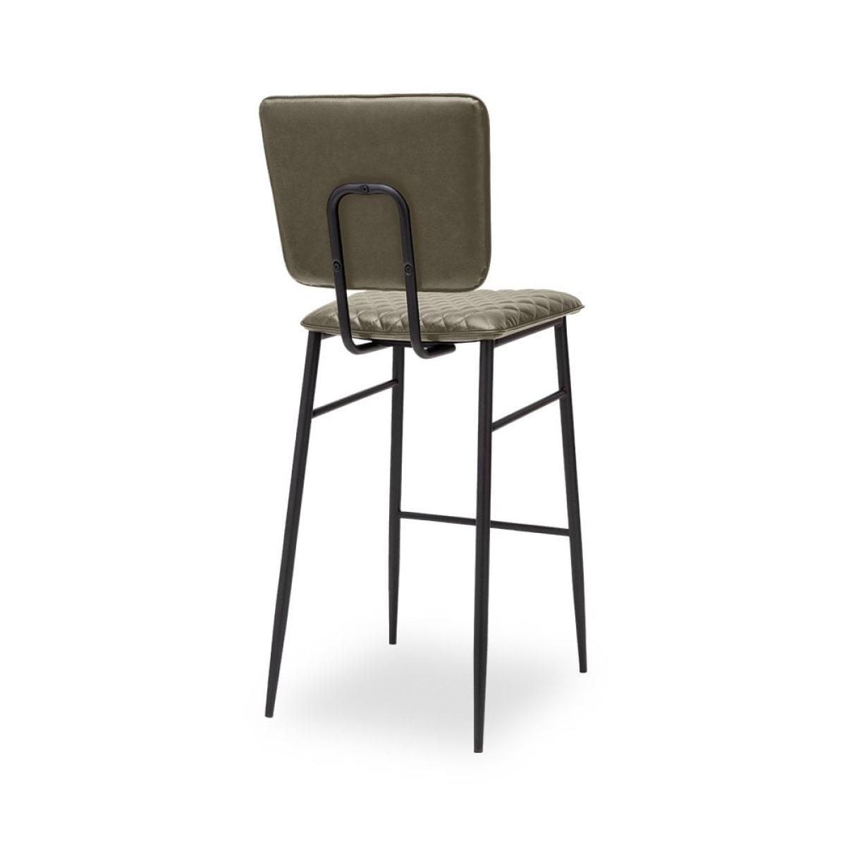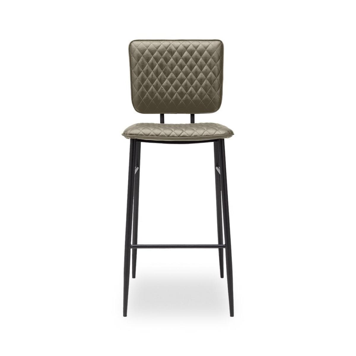 This is the Elgin - a bold, sophisticated metal kitchen stool that will add an industrial charm to your kitchen. Showcasing a quilted light grey faux leather upholstery and a sleek metal frame that emanates a retro vibe. Complete the look with a reclaimed wood dining table. View The Elgin Range