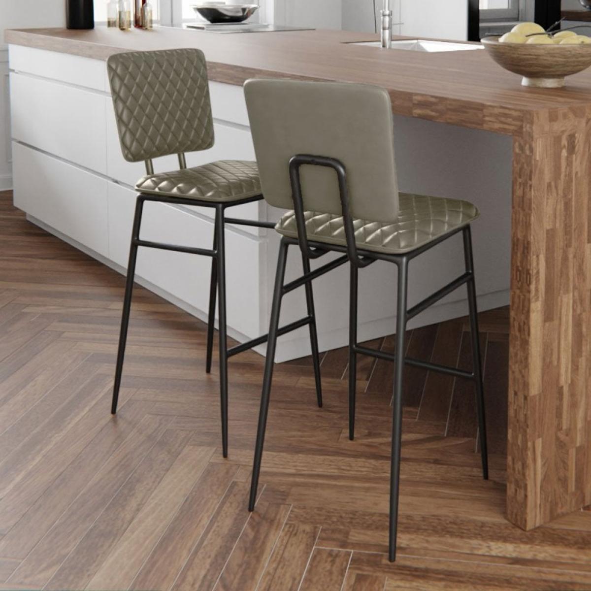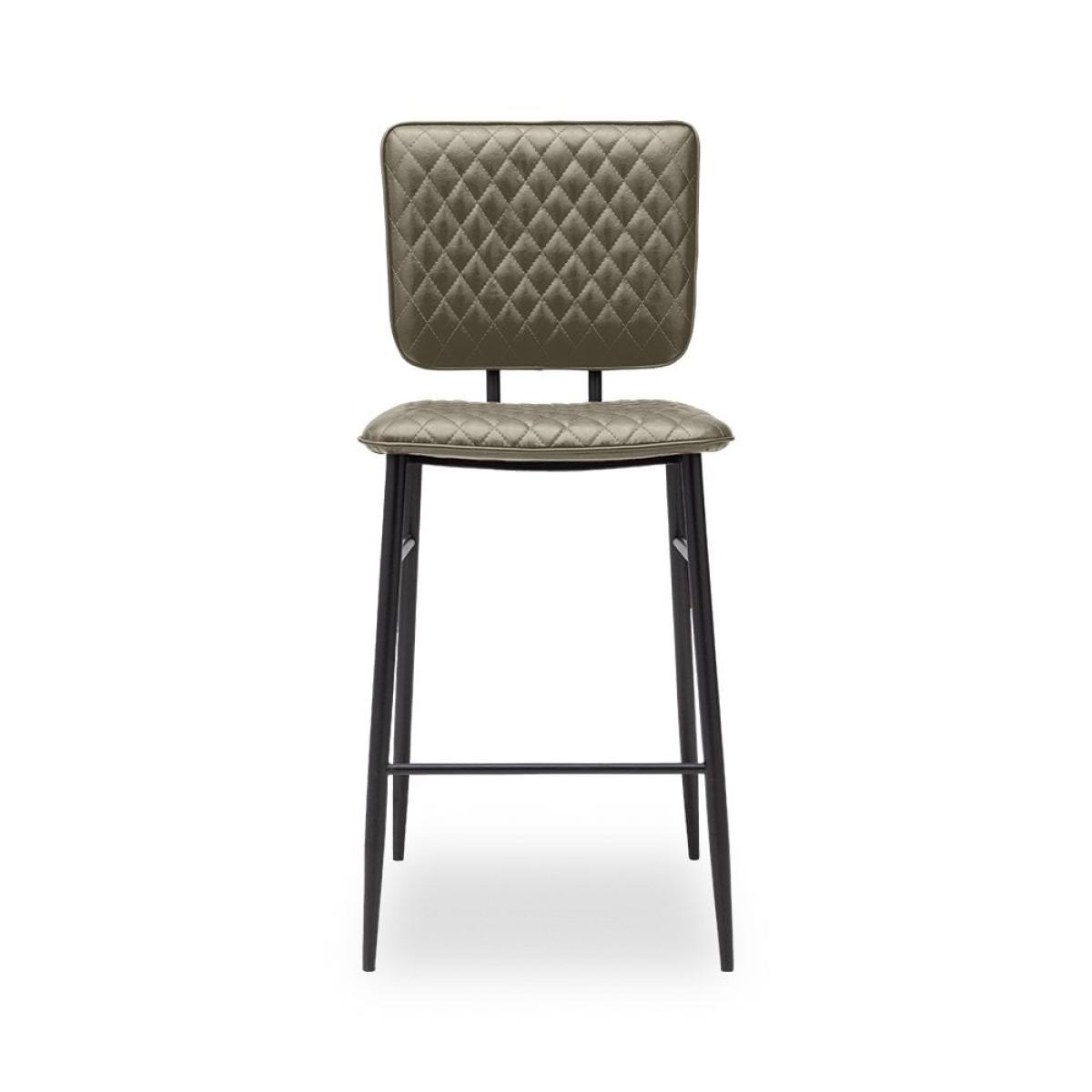 This is the Elgin - a bold, sophisticated metal kitchen stool that will add an industrial charm to your kitchen. Showcasing a quilted light grey faux leather upholstery and a sleek metal frame that emanates a retro vibe. Complete the look with a reclaimed wood dining table. View The Elgin Range