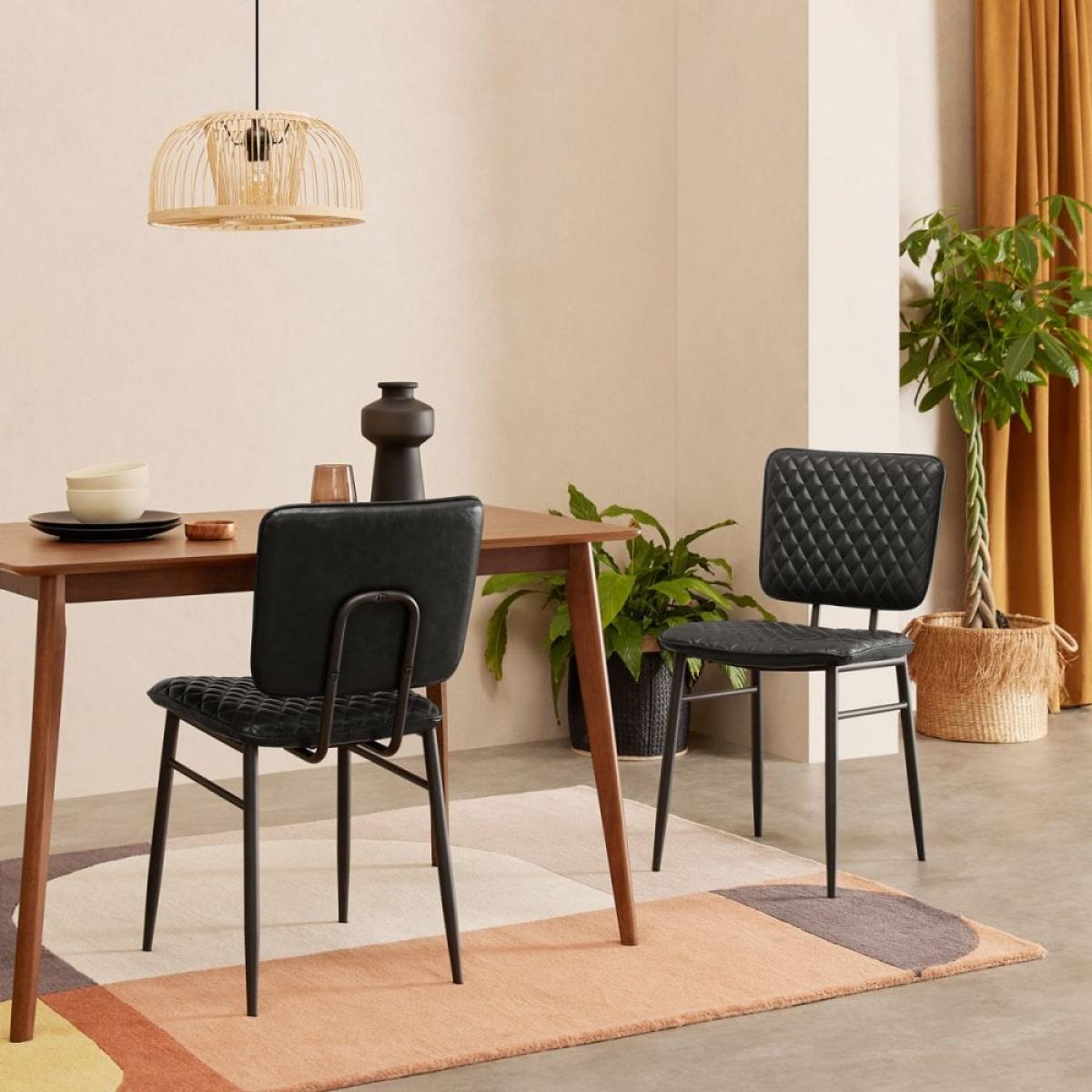 I’m a fan of this quilted black dining chair for its sleek profile and subtle texture - the diamond stitching lifts a simple metal frame without overwhelming the space. It works equally well in a pared-back Scandi kitchen or as contrast seating around a light wood or marble table. For a cohesive look, pair with matte-black or brushed-steel accents and add a slim seat pad in a neutral tone for extra comfort.