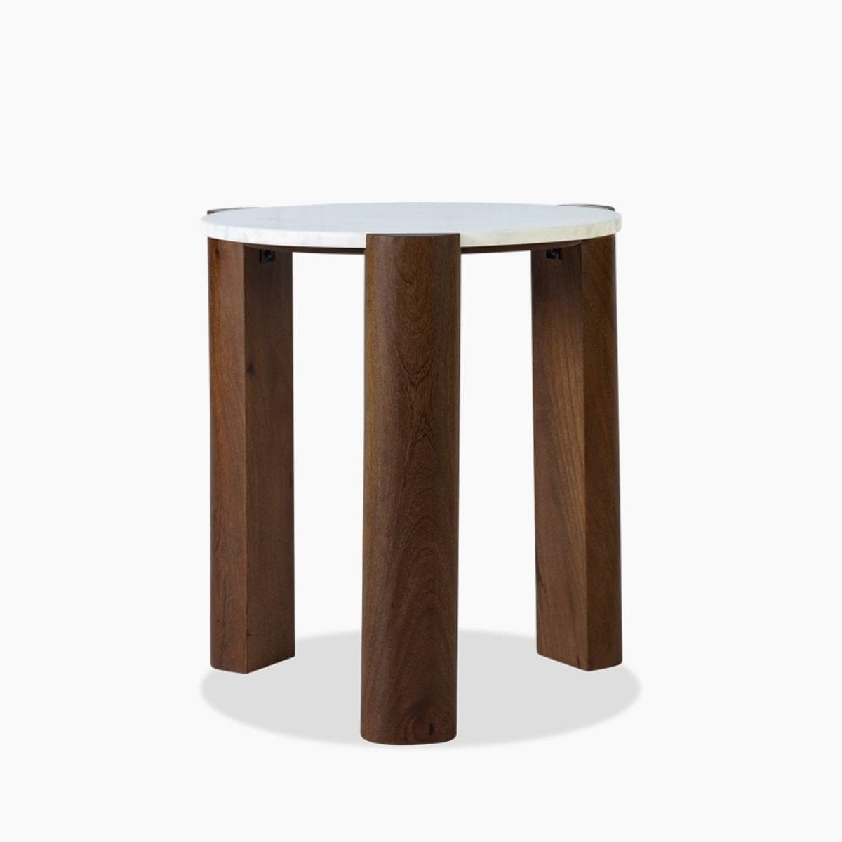 £10 Off Emil Round Side Table, Dark Mango Wood & White Marble