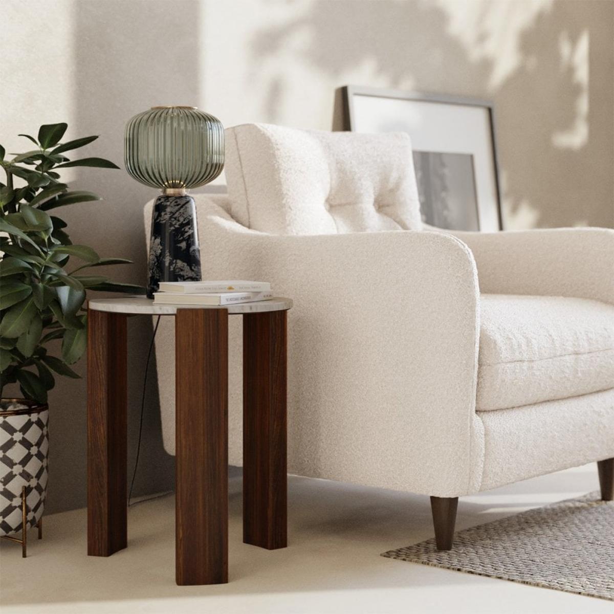 I’m a big fan of the Emil side table for its clean lines and simple material mix - the dark mango wood legs bring warmth, while the white marble top adds a cool, refined touch. It slots easily into modern Scandi, mid-century or neutral minimalist schemes without fuss. Styling-wise, keep it uncluttered: a slim table lamp or a small cluster of ceramics on one side and a stack of coffee-table books on the other works well. Its 45 cm diameter makes it an ideal bedside or sofa-side perch, and the £10 saving means you get a designer look on a modest budget.