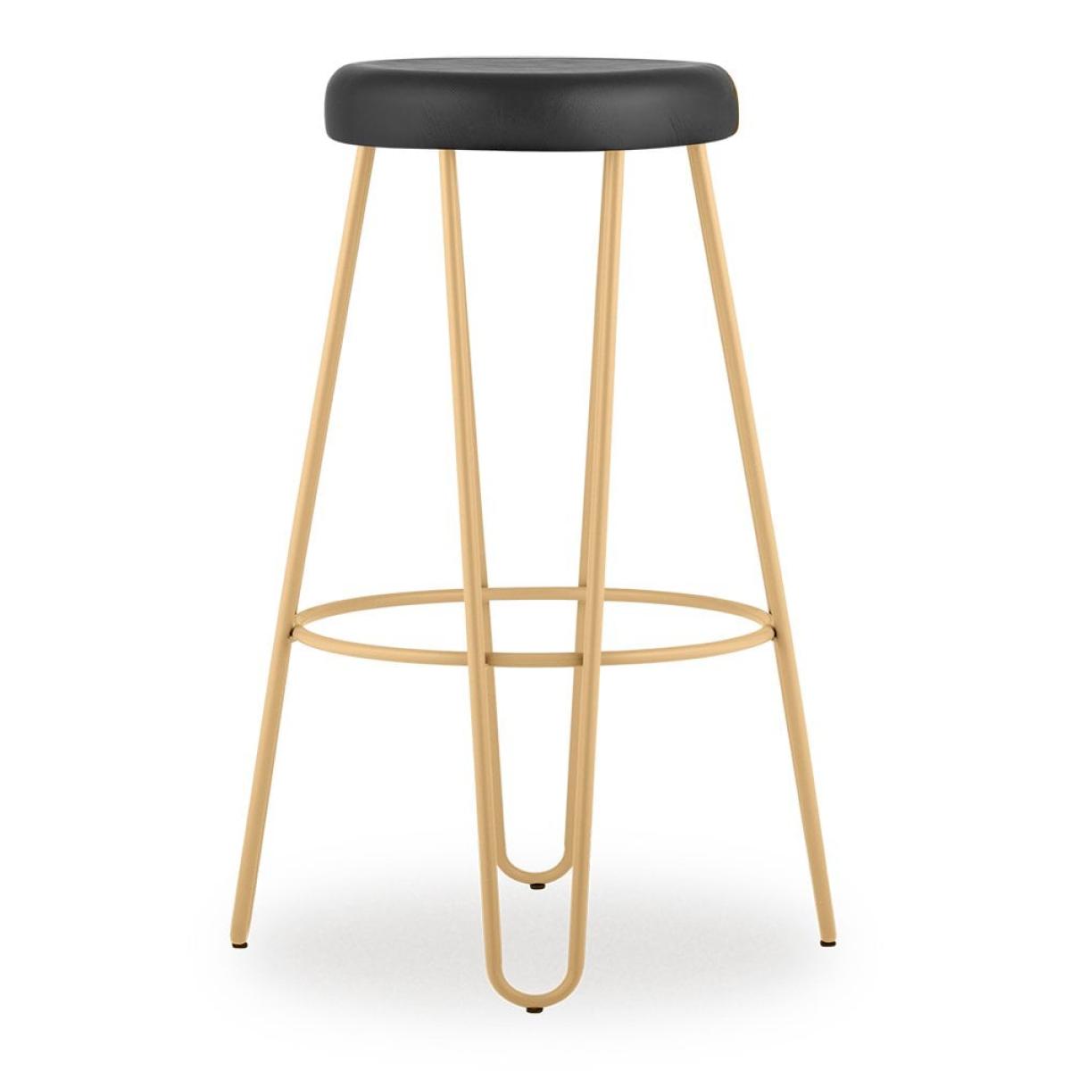 £10 Off Hairpin Metal Kitchen Stool, Brass Seat Colour: Black Seat