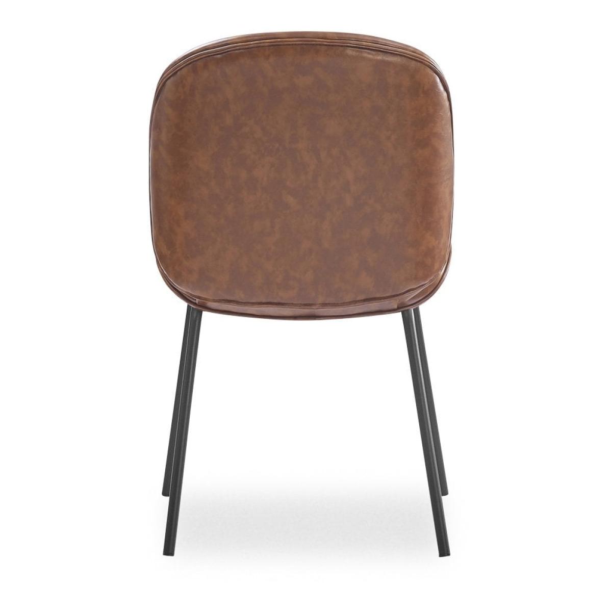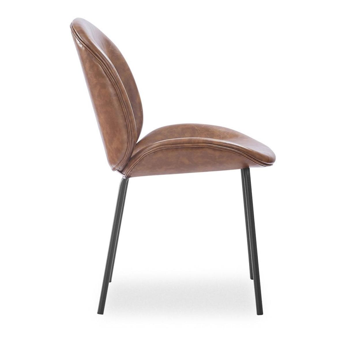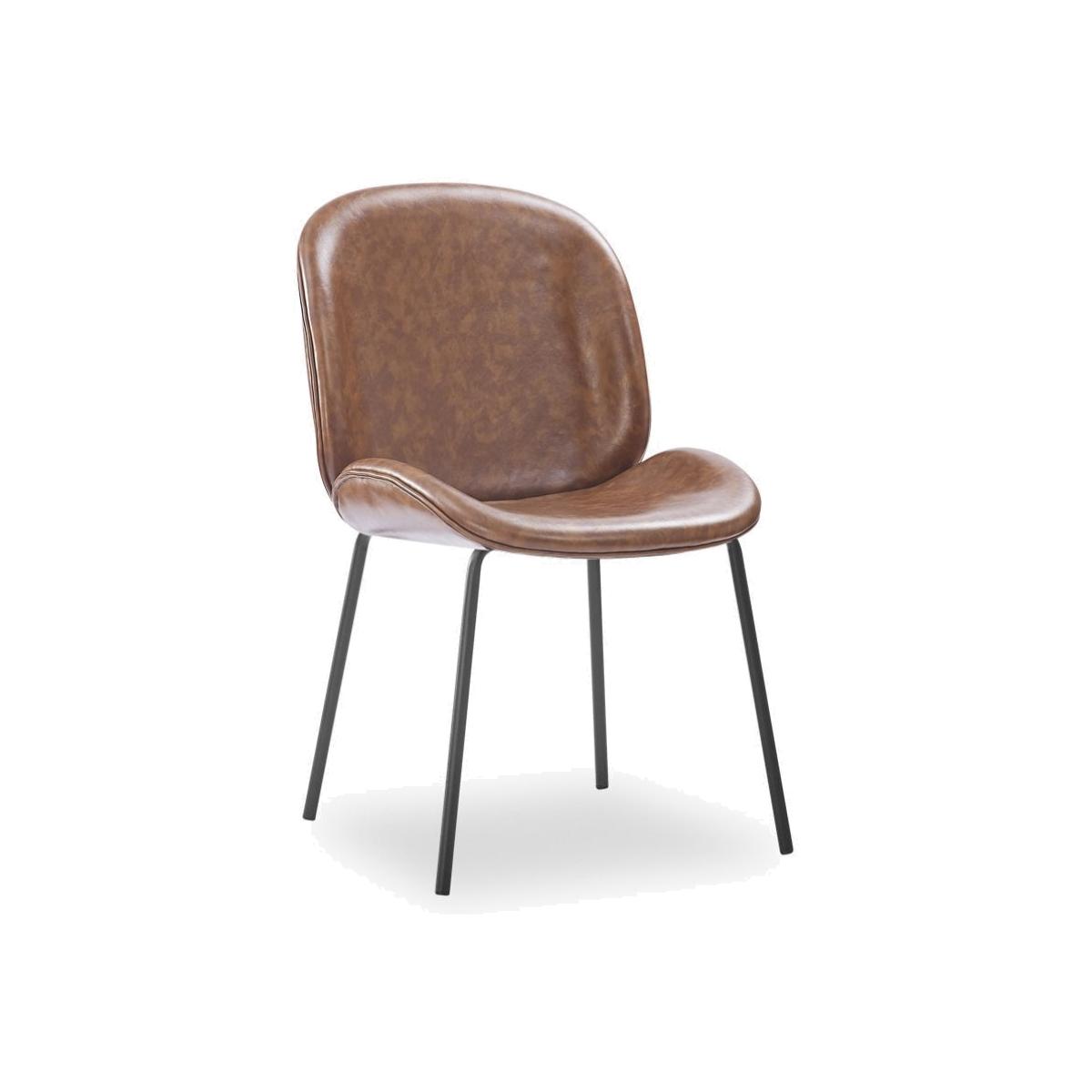 The Hoxton Dining Chair ensures comfort with its curved seat and backrest that slots into any contemporary dining room or kitchen. Upholstered in vintage tan brown faux leather with sleek metal legs for a robust yet delicate design, this classic design is both organic and precise, bringing Scandinavian style into your home.