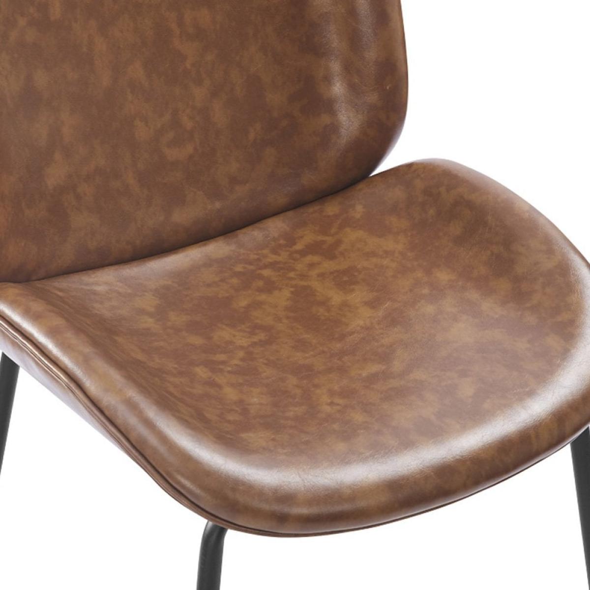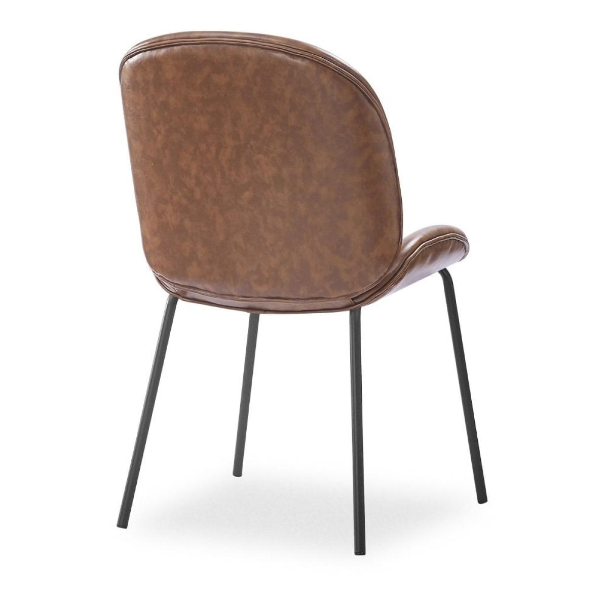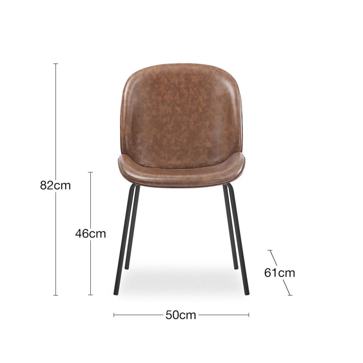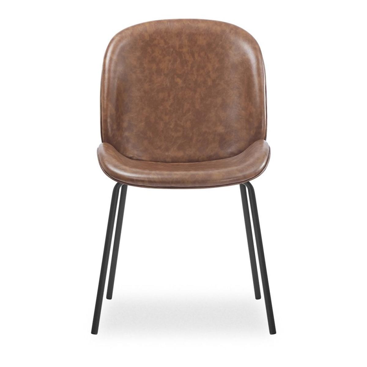 The Hoxton Dining Chair ensures comfort with its curved seat and backrest that slots into any contemporary dining room or kitchen. Upholstered in vintage tan brown faux leather with sleek metal legs for a robust yet delicate design, this classic design is both organic and precise, bringing Scandinavian style into your home.