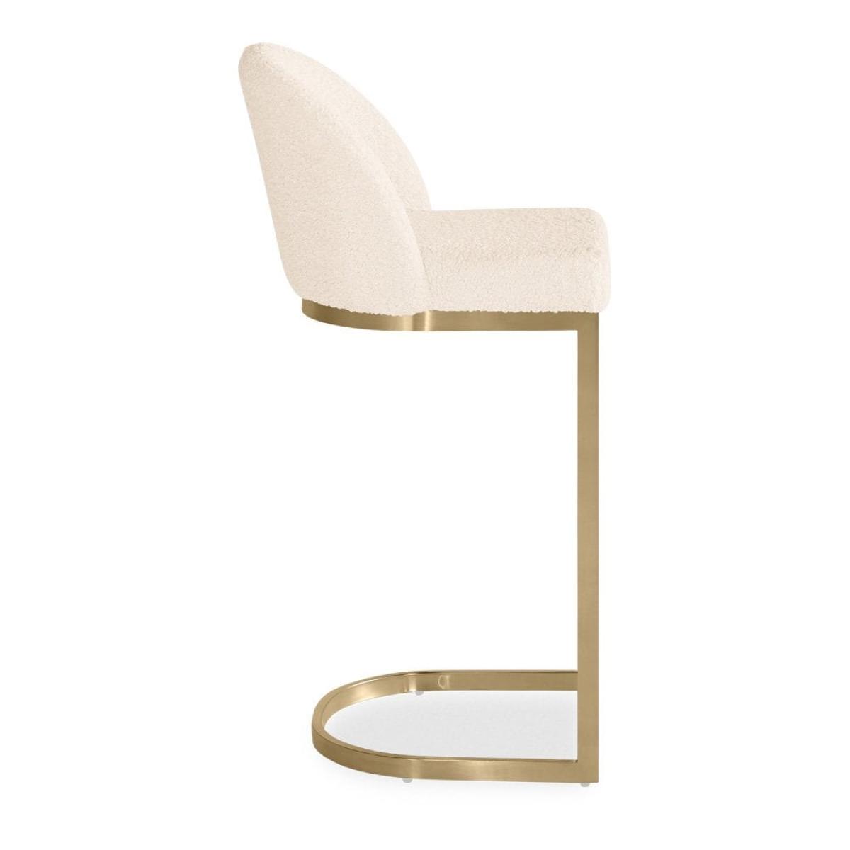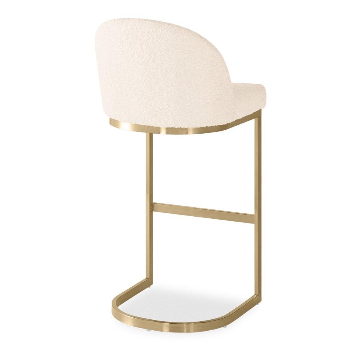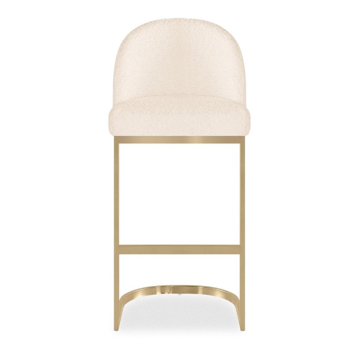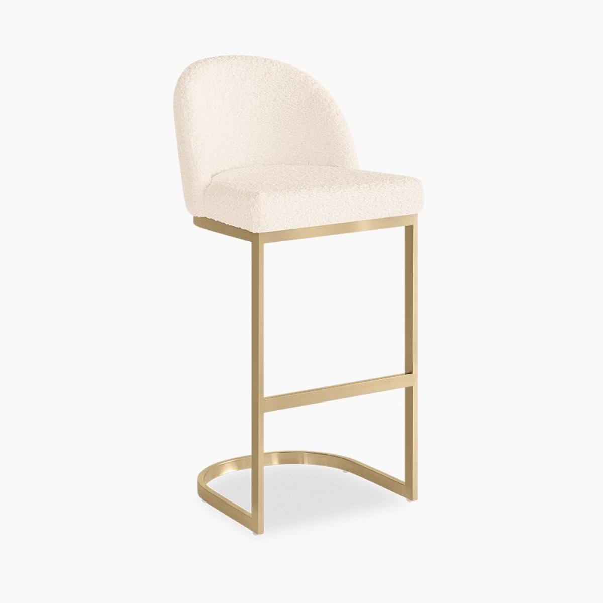 The Matteo metal bar stool in ivory white brings Art Deco-inspired furniture into your home. The thick brushed metal base of the stool is in a curved design with built-in footrest, perfect for perching at the breakfast island or bar. The Matteo range features a comfortable padded seat with our premium boucle upholstery. The result is a contemporary style that adds luxe design without compromising on comfort. View The Matteo Range