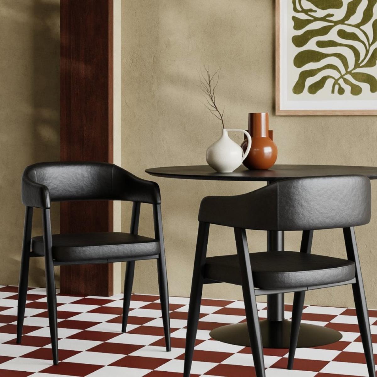 I’m a fan of the Carver dining chair in vintage black for its slim, open-frame silhouette and easy-clean faux leather seat. It slots neatly into modern, industrial or Scandi schemes and makes smaller dining areas feel uncluttered. Pair it with a light oak or marble-tone table to balance the dark finish, mix in a textured cushion for comfort and tie the look together with a simple runner or place mats in a contrasting shade.