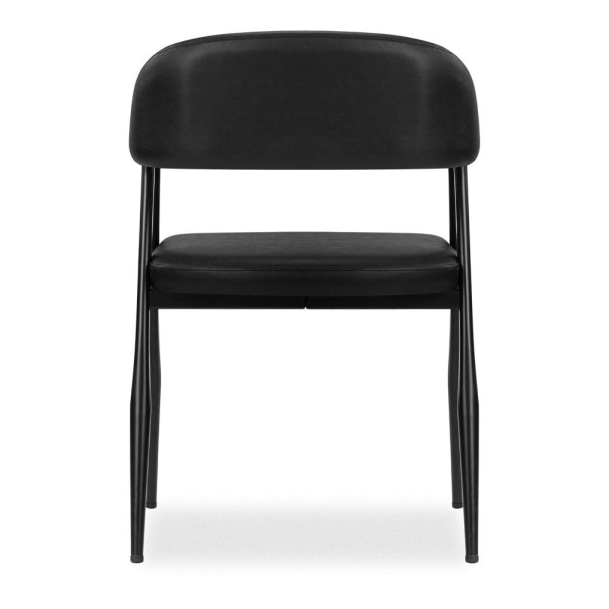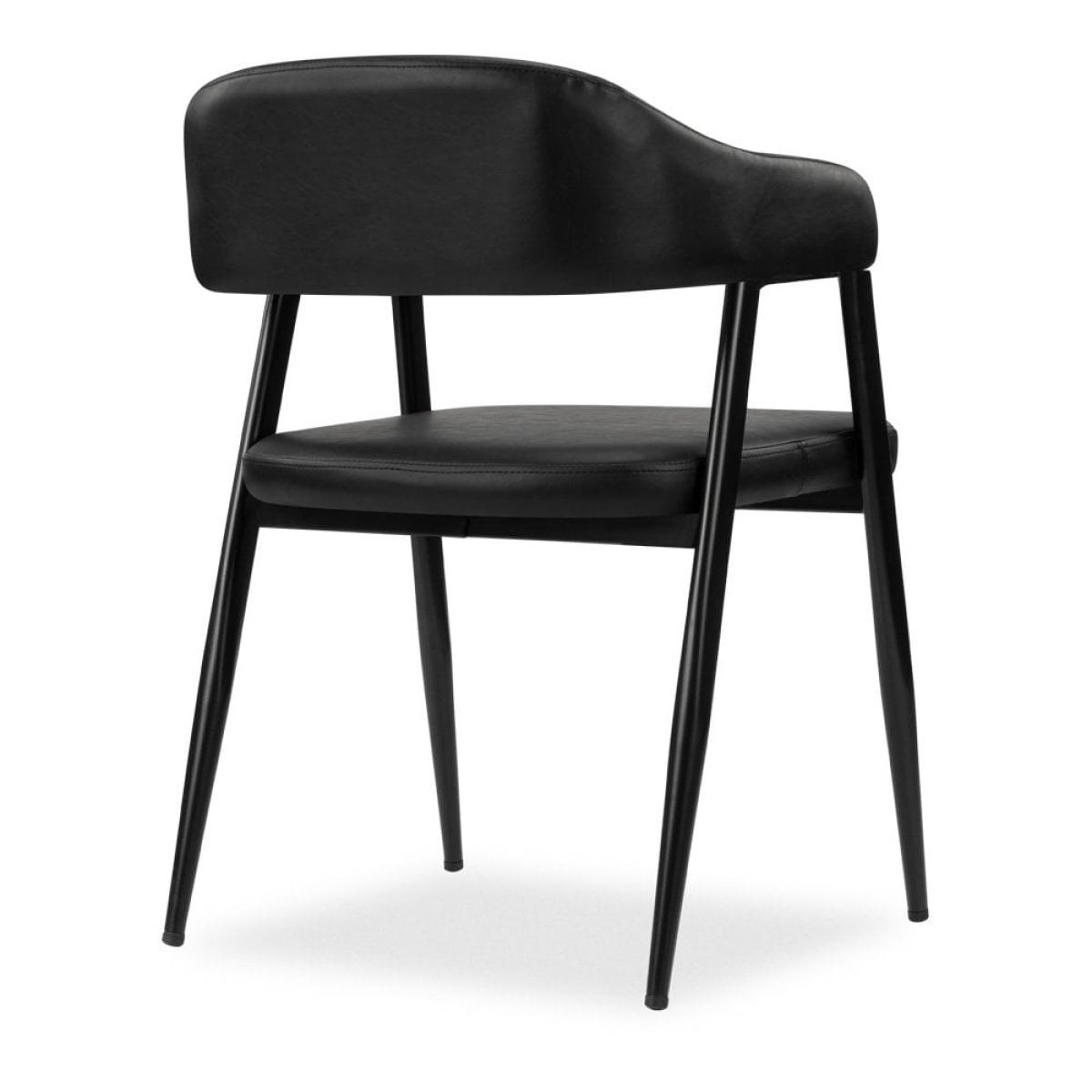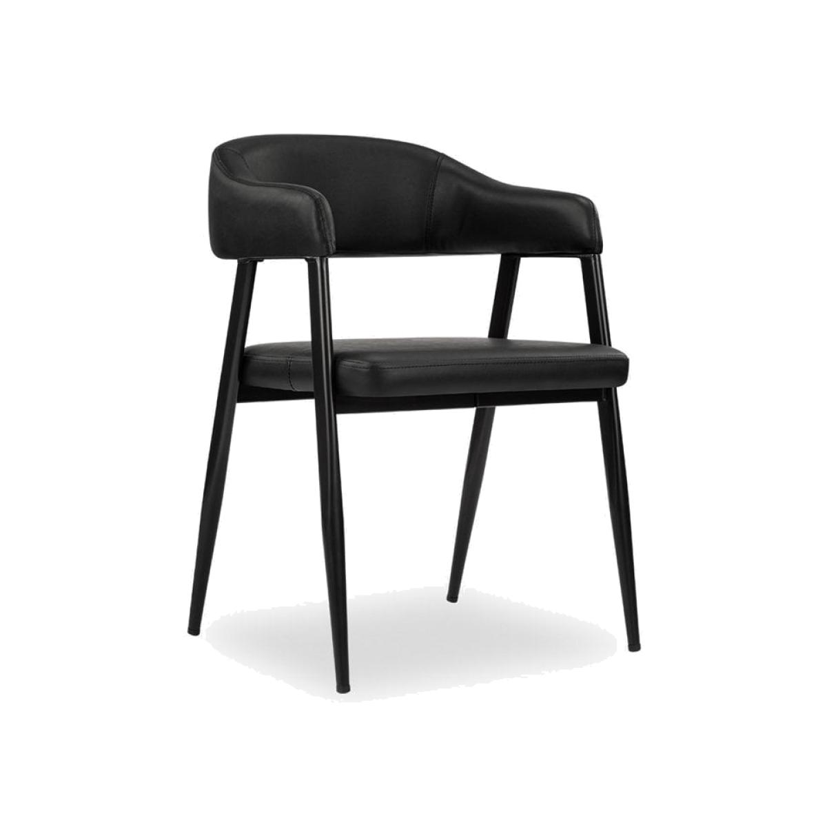 An industrial dining chair made from soft faux leather and metal, the Presley displays strong structural design and comfort, all in one. Upholstered in vintage black with a padded backrest and seat, and durable black metal legs, angled for further stability. This is style and functionality for your modern dining space. View The Presley Range