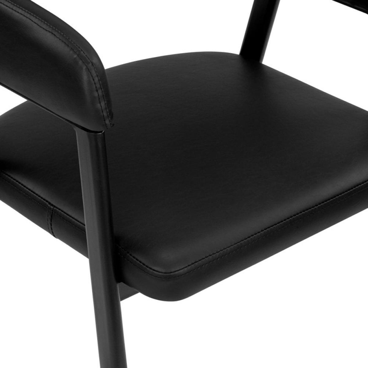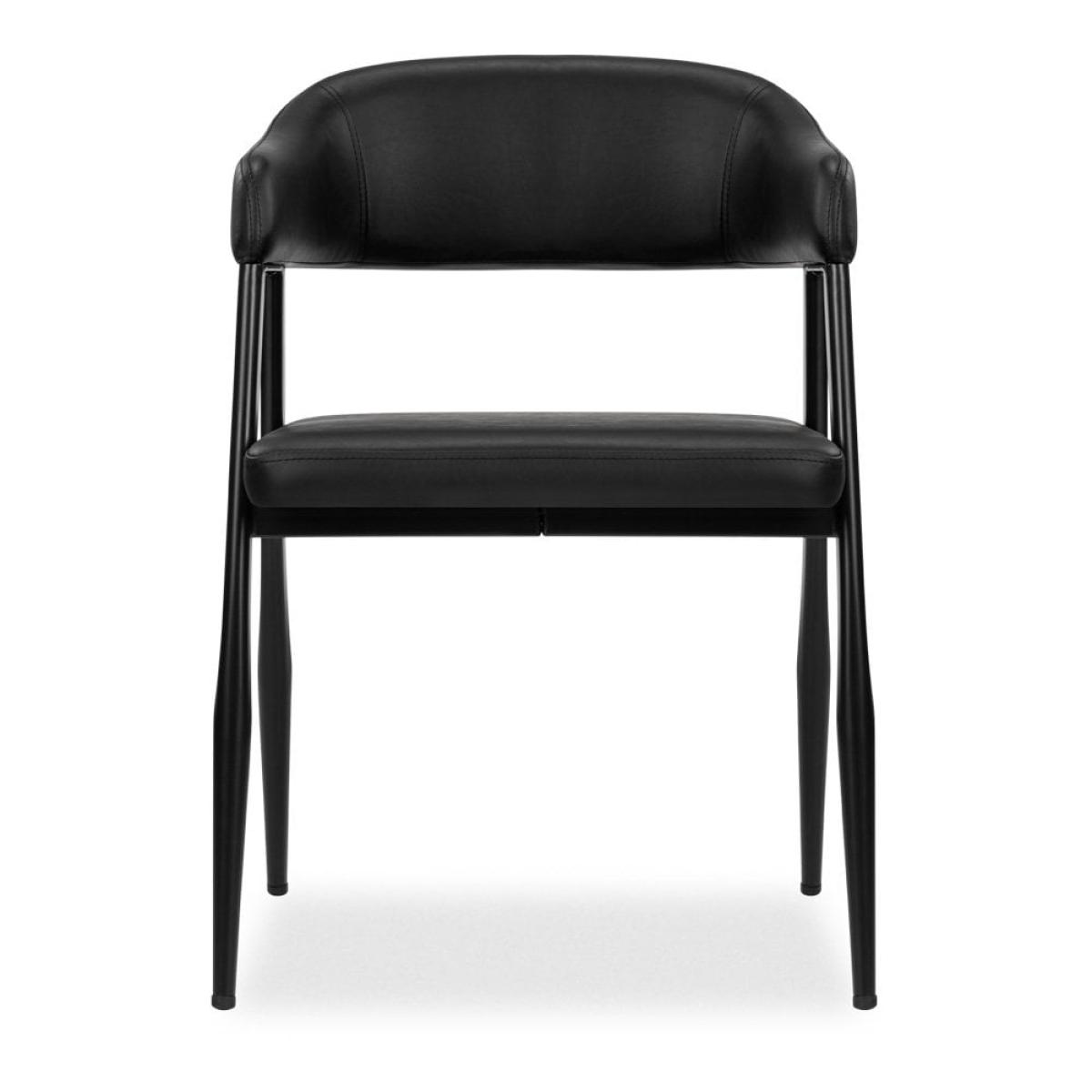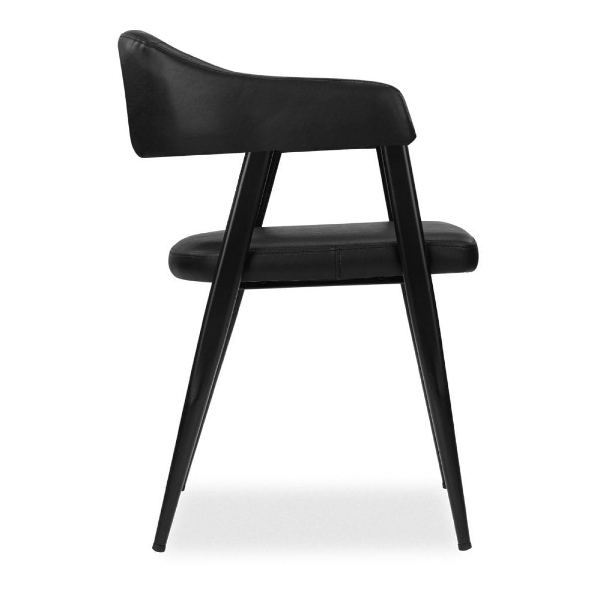 An industrial dining chair made from soft faux leather and metal, the Presley displays strong structural design and comfort, all in one. Upholstered in vintage black with a padded backrest and seat, and durable black metal legs, angled for further stability. This is style and functionality for your modern dining space. View The Presley Range