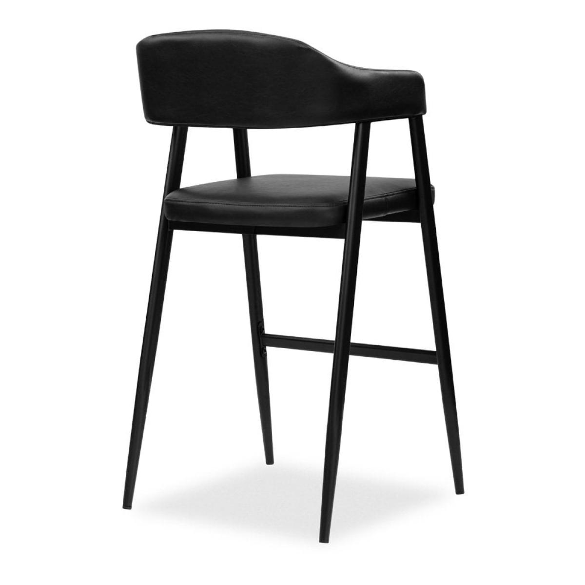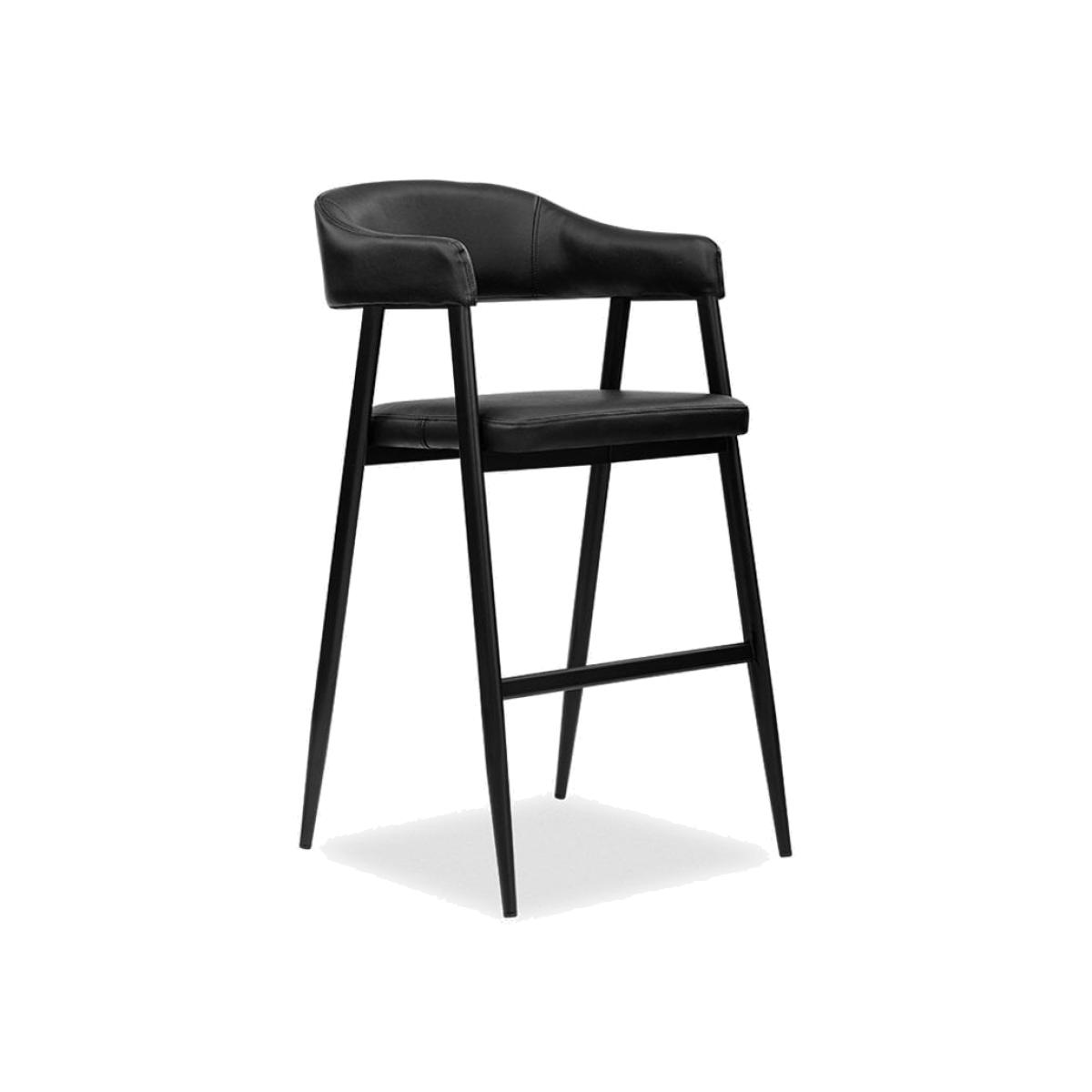 An industrial kitchen stool made from soft faux leather and metal, the Presley displays strong structural design and comfort, all in one. Upholstered in vintage black with a padded backrest and seat, and durable black metal legs, angled for further stability. This is style and functionality for your modern dining space. View The Presley Range