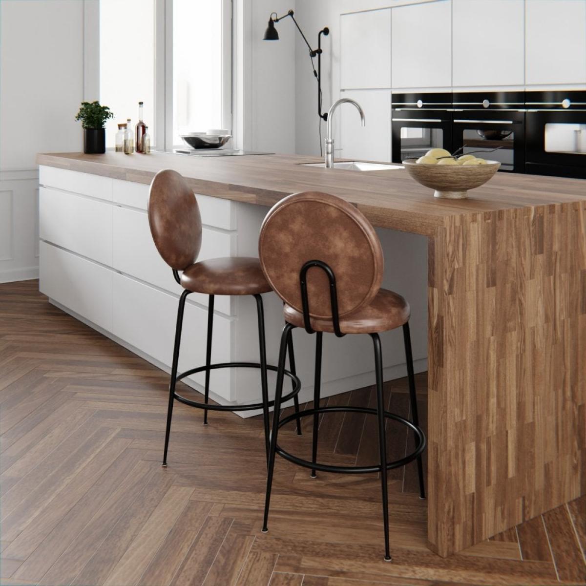 I really like this £10 off bar stool with its vintage tan finish - it brings a warm, retro vibe to contemporary or industrial interiors. Its slim black metal legs and simple backrest make it a versatile piece, perfect for those with a pared-back, minimal look, but it also works well alongside eclectic or rustic kitchens. Styling tip: pair it with matching or complementary coloured accessories, like leather cushions or metal accents, to create a cohesive space. It’s practical too; its height and backrest give comfort while maintaining a sleek silhouette, making it a great choice for casual dining areas or home bar setups.