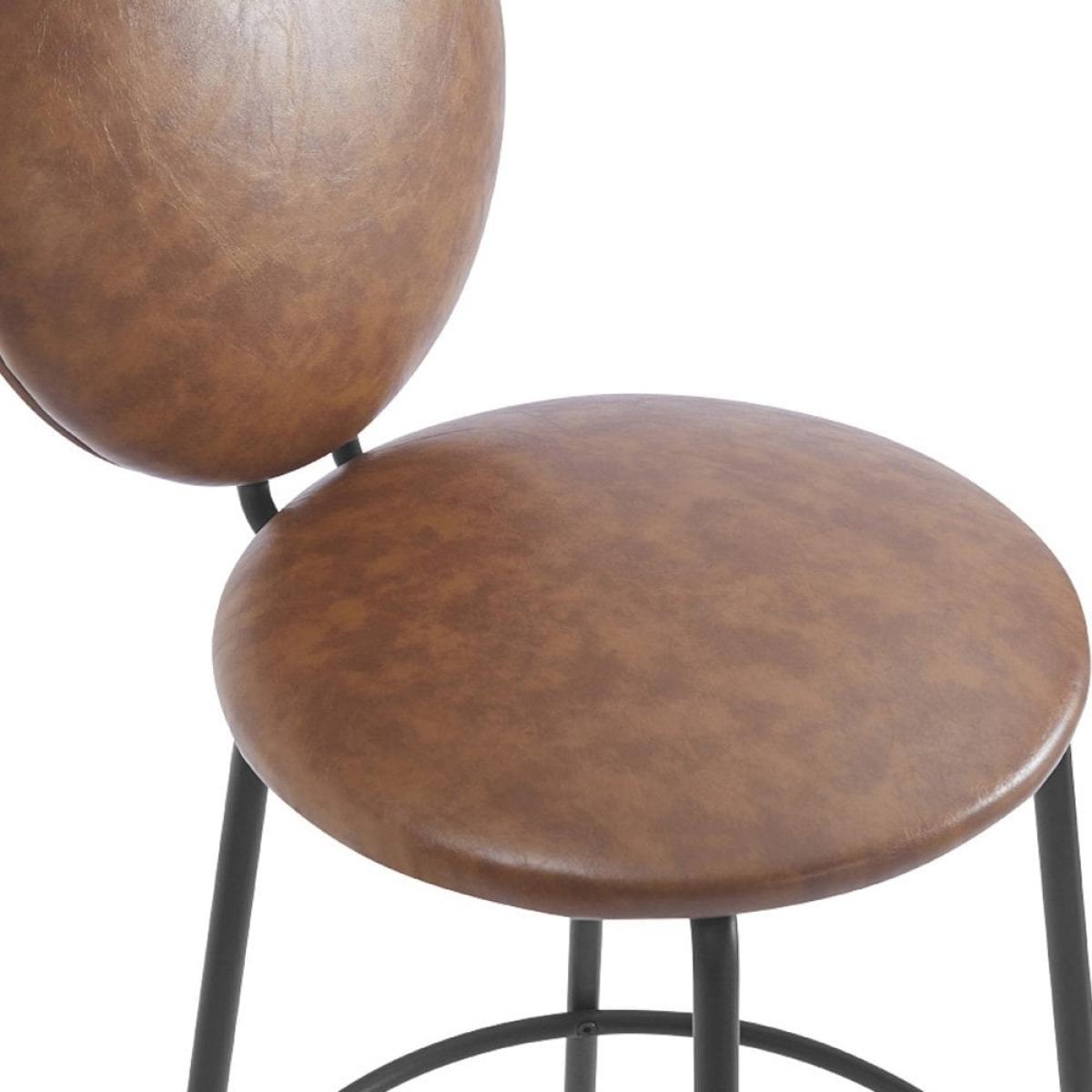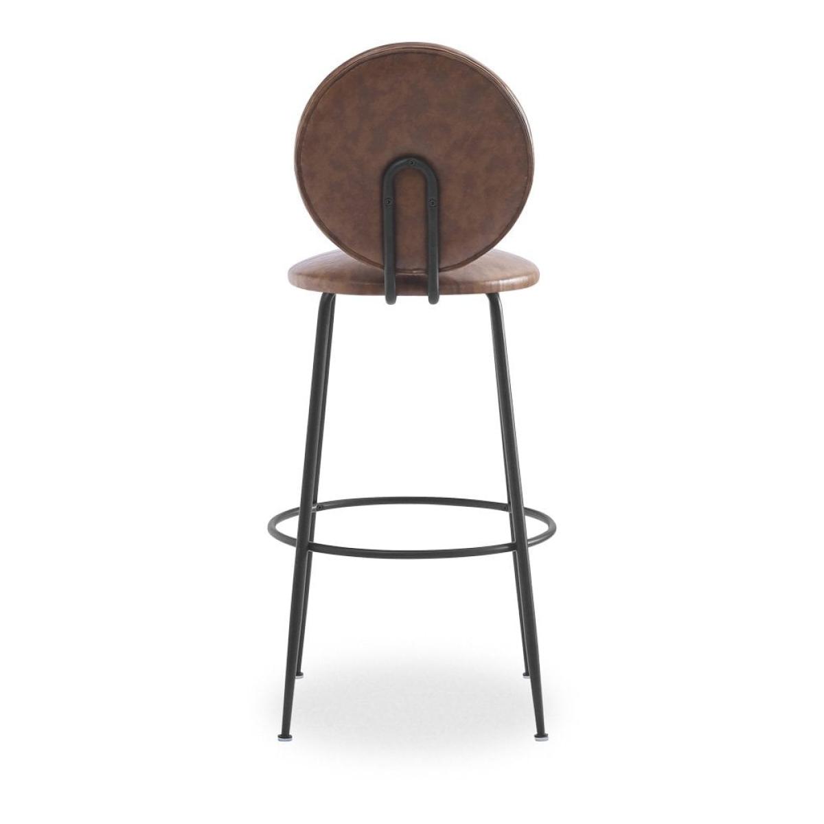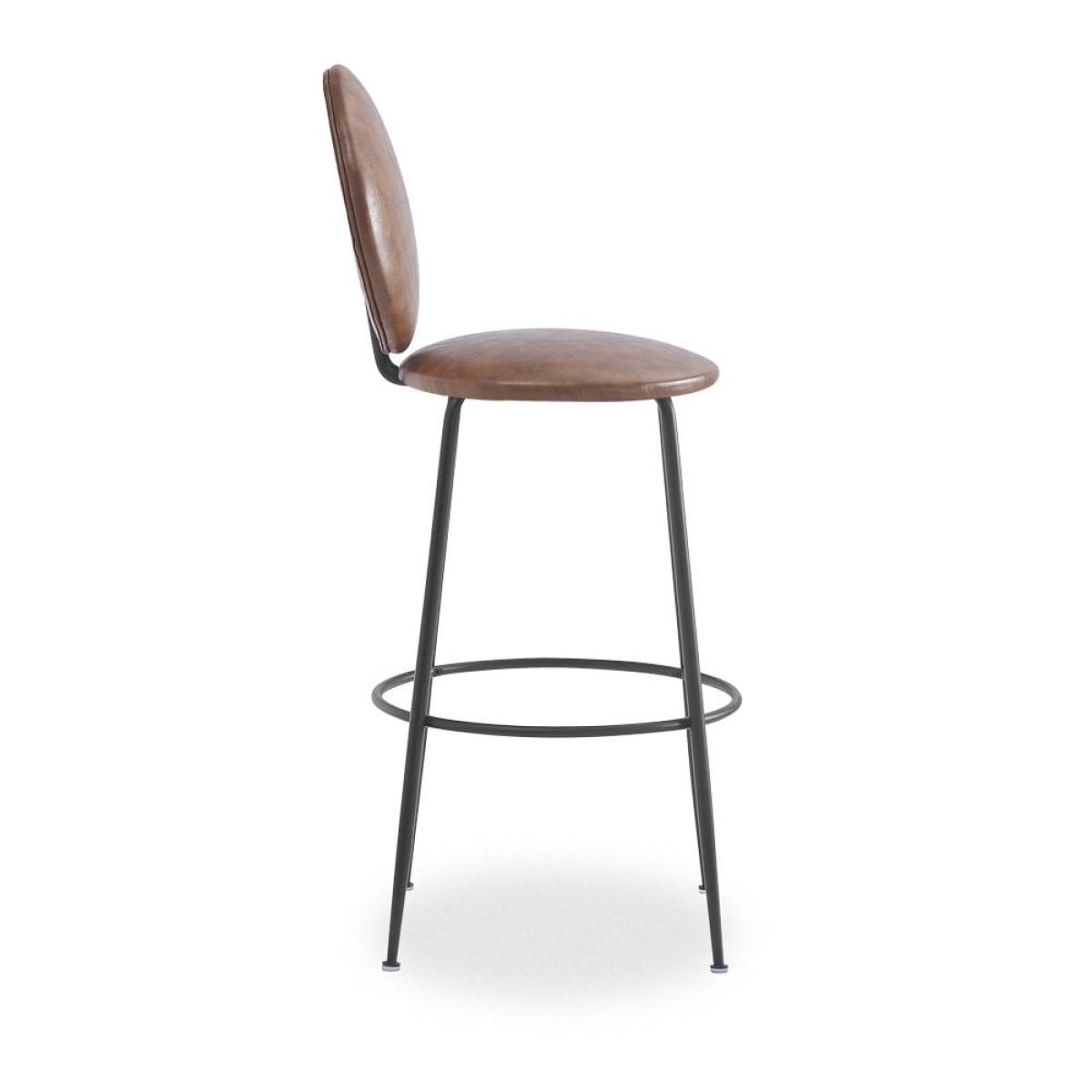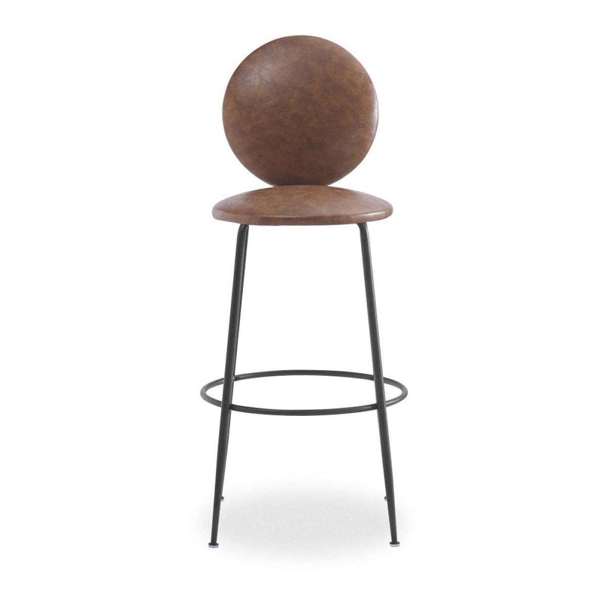 The Regent Bar Stool with vintage tan faux leather padded seat and backrest for a comfortable perch. Featuring an upholstered round seat mounted on a sleek metal base with a built-in footrest, this contemporary design has a soft silhouette with luxurious fabric for a high end interior edge. View The Regent Range