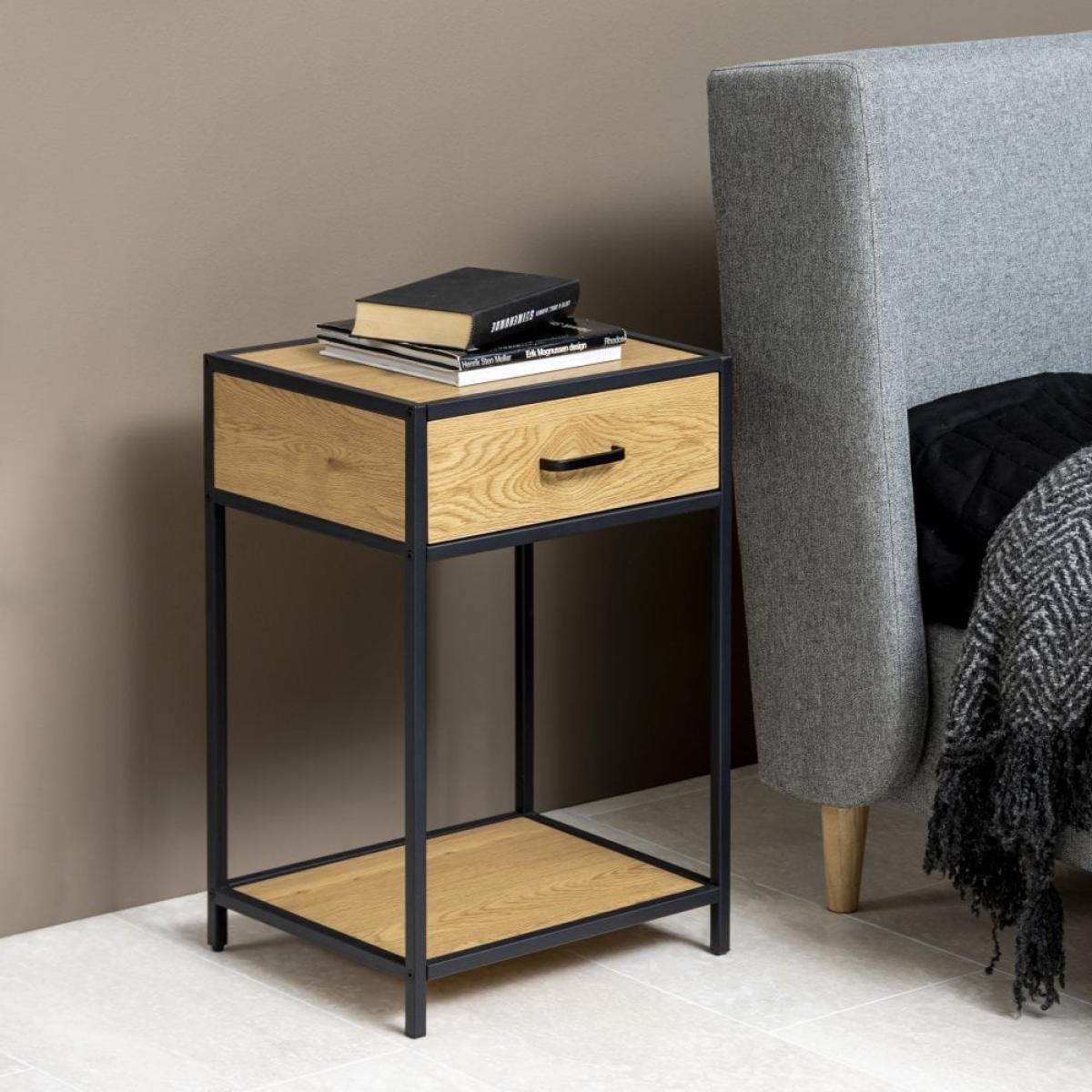 £10 Off Seaford Bedside Table, Oak Effect & Black