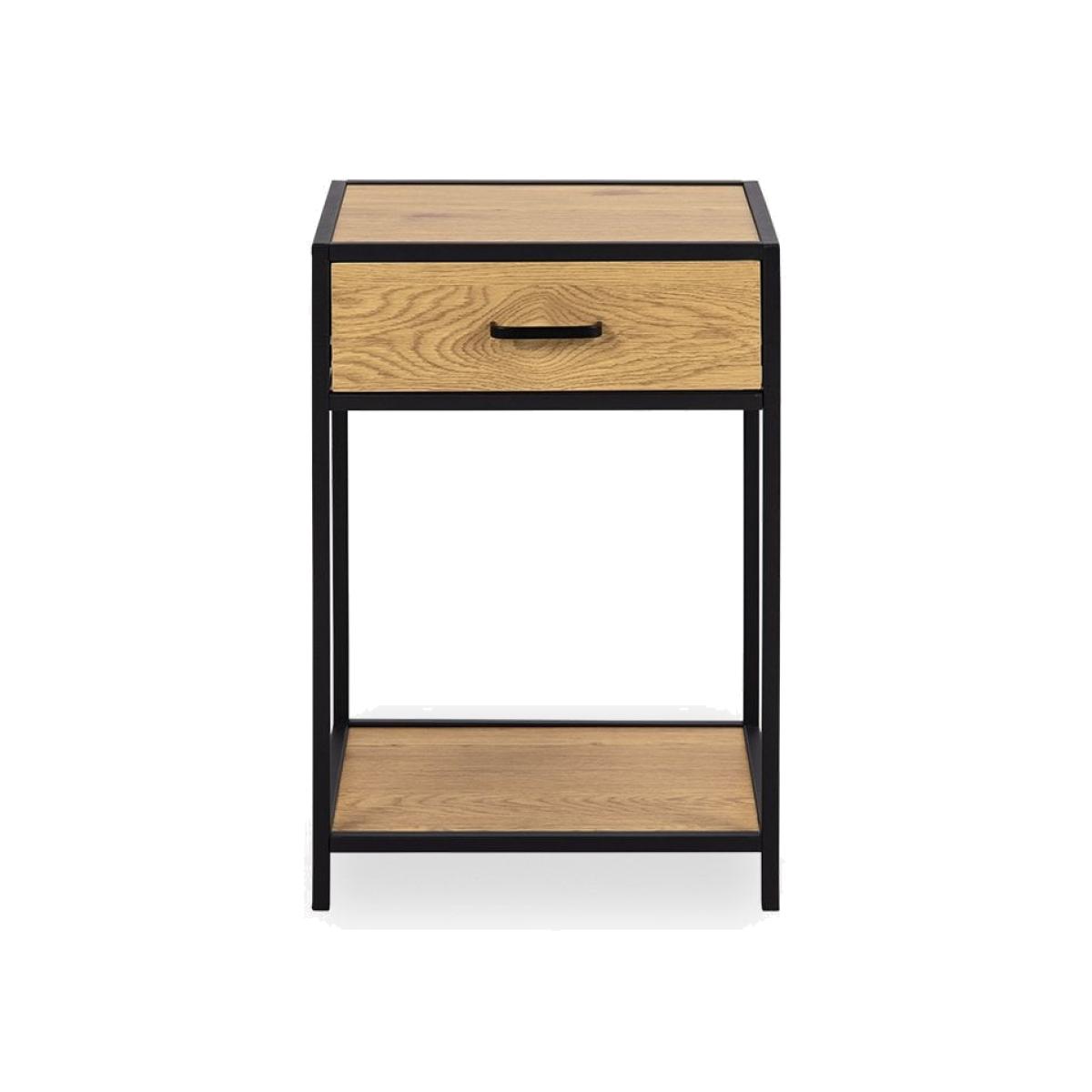 This Seaford Side Table, inspired by industrial design, combines natural and industrial elements that complement each other perfectly. The square shape with a natural wood top and the shelf is ideal for bedrooms. Practical storage space with added drawer too for all your necessities. View The Seaford Range