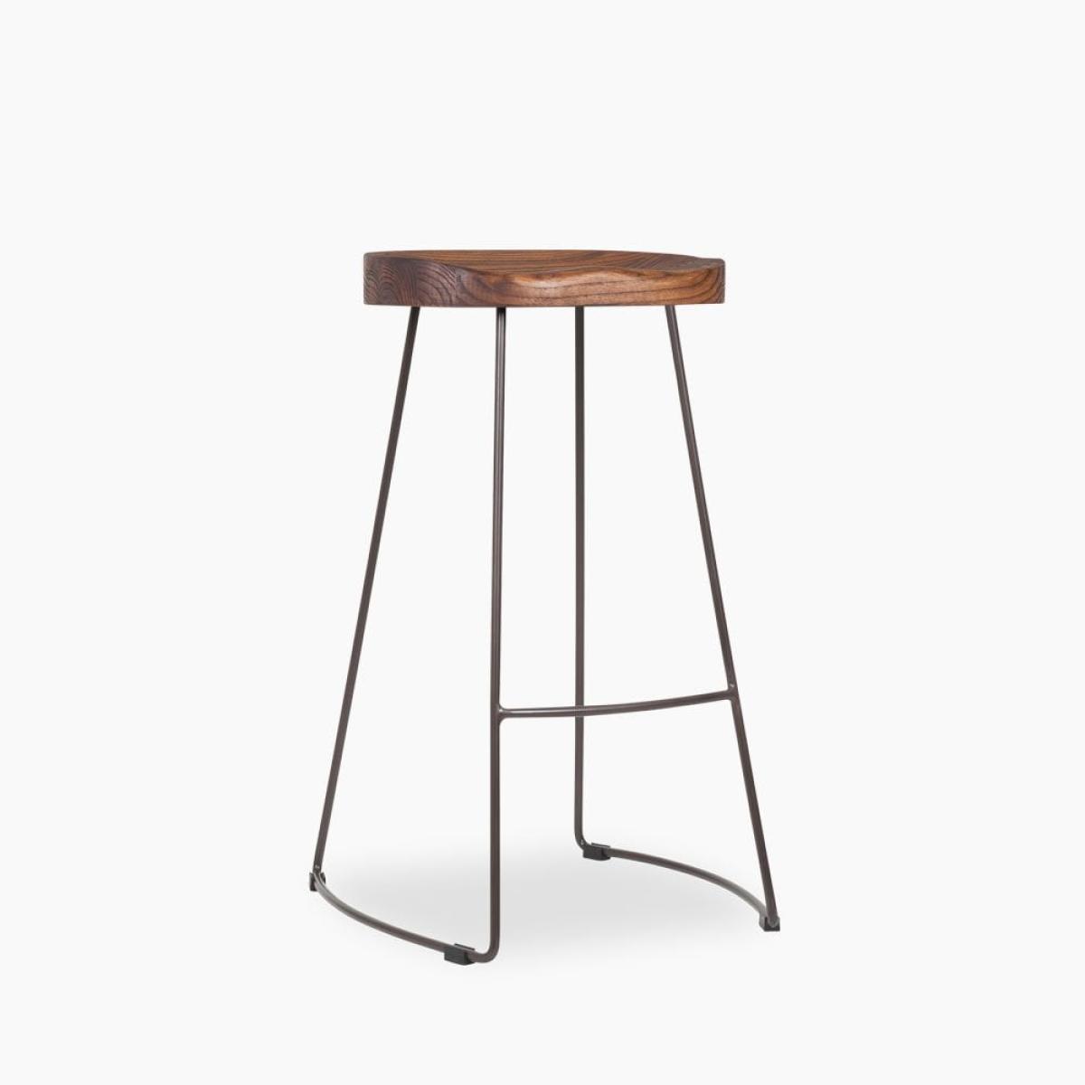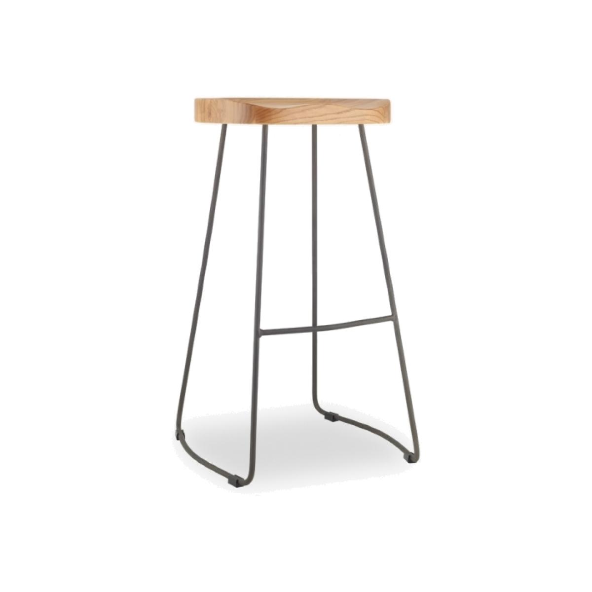 £10 Off Victoria Metal Bar Stool, Elm Wood & Rustic Seat Colour: Natural Wood Seat
