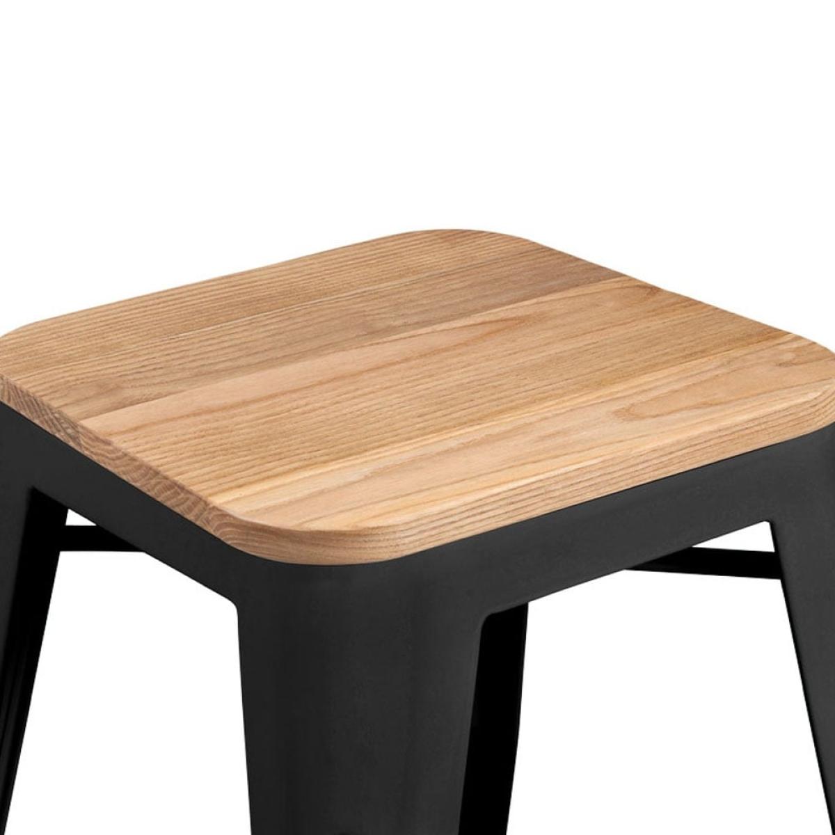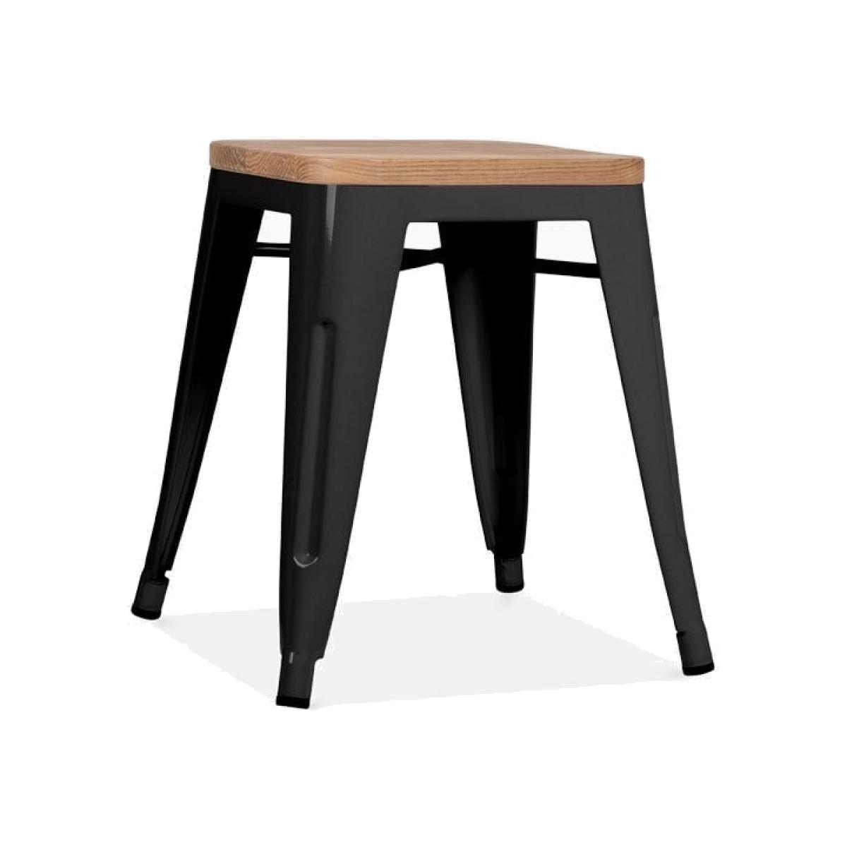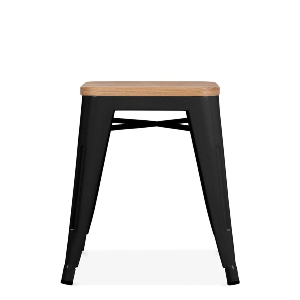 £10 Off Xavier Pauchard Tolix Style Metal Low Stool, Natural & Matte Black Natural Wood Seat