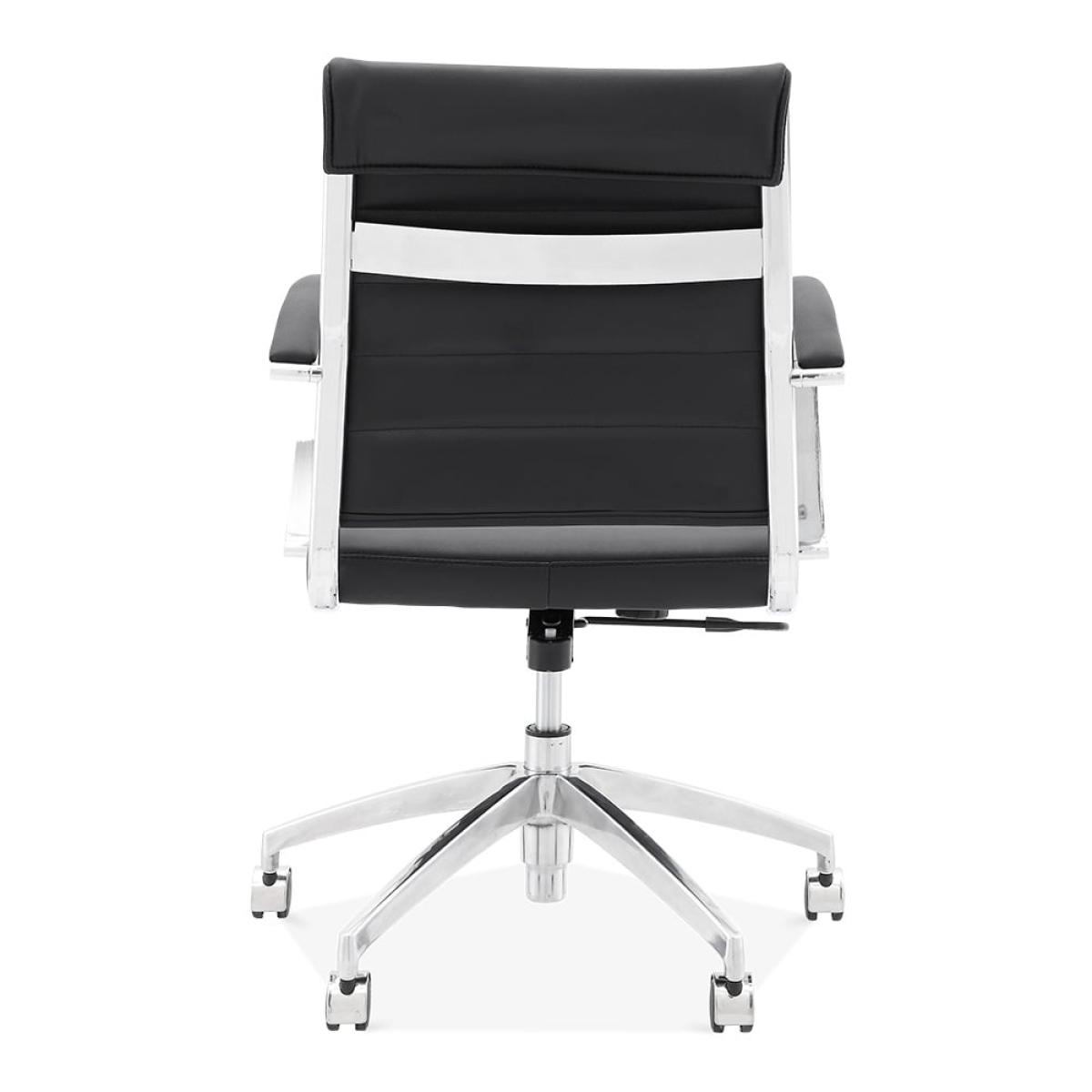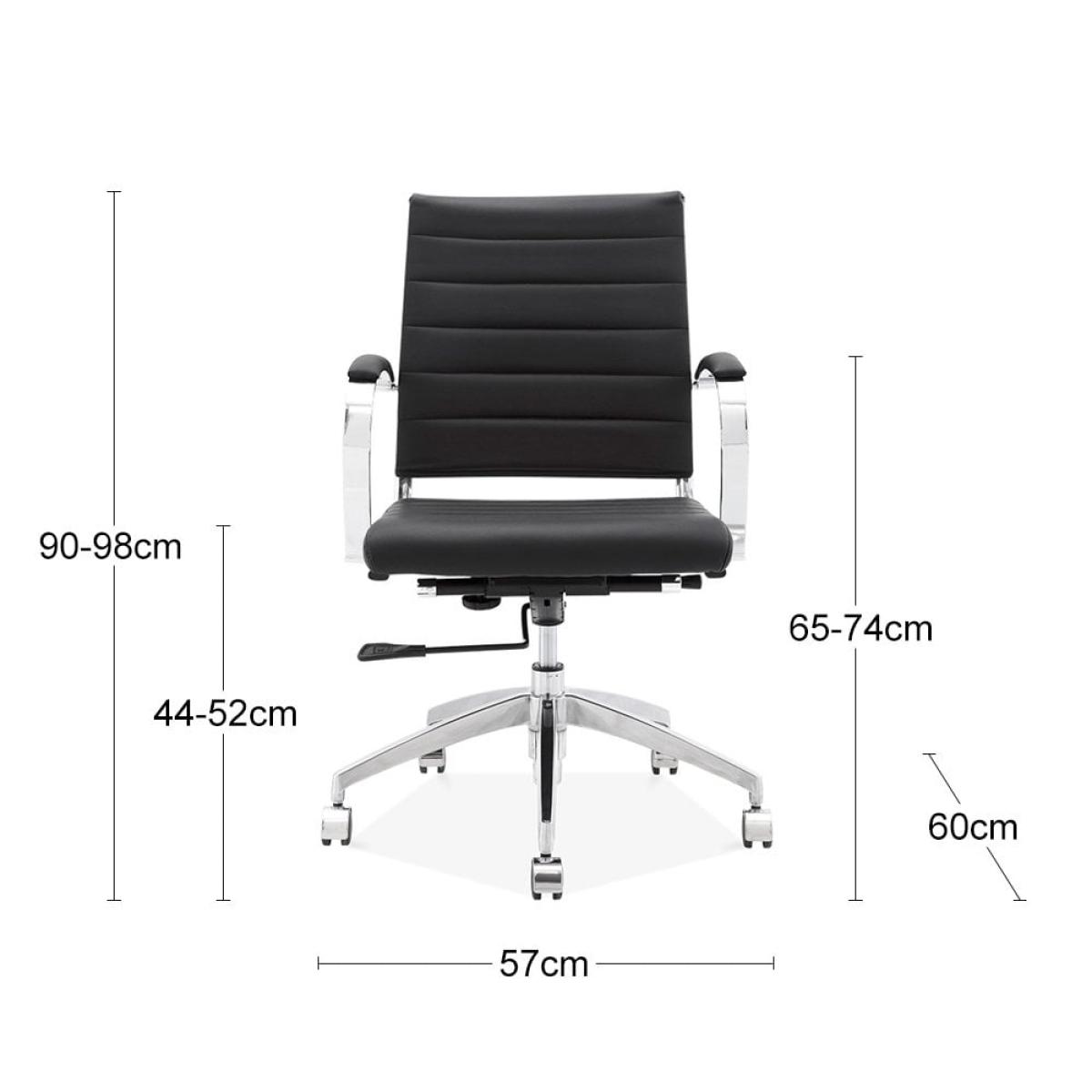 Ready to add a bit of style to your office? Meet our Deluxe office chair, a luxury seat designed to suit modern offices and home workspaces; made from foam and provides all the support you need. Features soft faux leather upholstery, which also happens to be fireproof, swivel chair and a gas lift aluminium base on castor wheels, giving the chair a strong foundation, perfect for daily use around the office, and great if you like to be flexible and move around with ease. Available in a range of colours, with a choice of a short backrest option, our Deluxe office chair makes a charming office room suite when paired with one of our mid-century inspired desks. View The Deluxe Range
