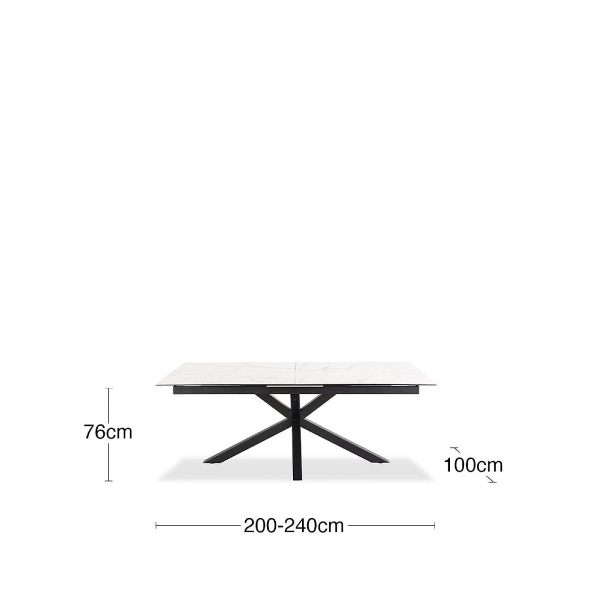 Comfortably sitting 8-10 people with easily extendable function, the blend of raw materials mixes contemporary industrial design with everyday dining for a modern dining table built to last. The Heaven Dining Table in White features sculptural starburst metal legs in black that offer stability and maximise legroom whilst the matte white surface is made of durable ceramic; low maintenance in a contemporary modern design. View The Heaven Range