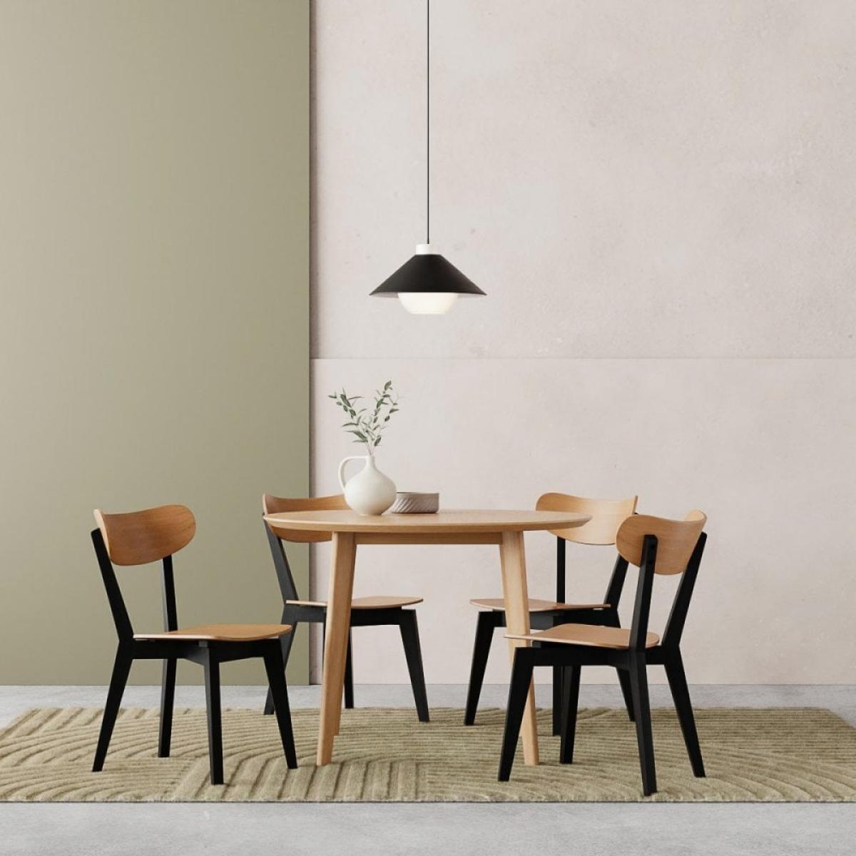 Mid Century Design for dining spaces, the Roxby Dining Set in Black & Oak features 4 chairs and a wooden dining table with an extendable leaf, ideal for utilising smaller dining spaces. Specially curated by the Cult Team for our Cult Essentials Range, the Roxby 4-Seater Dining Set is exceptional value, taking the hassle out of buying furniture sets for style delivered straight to your door.