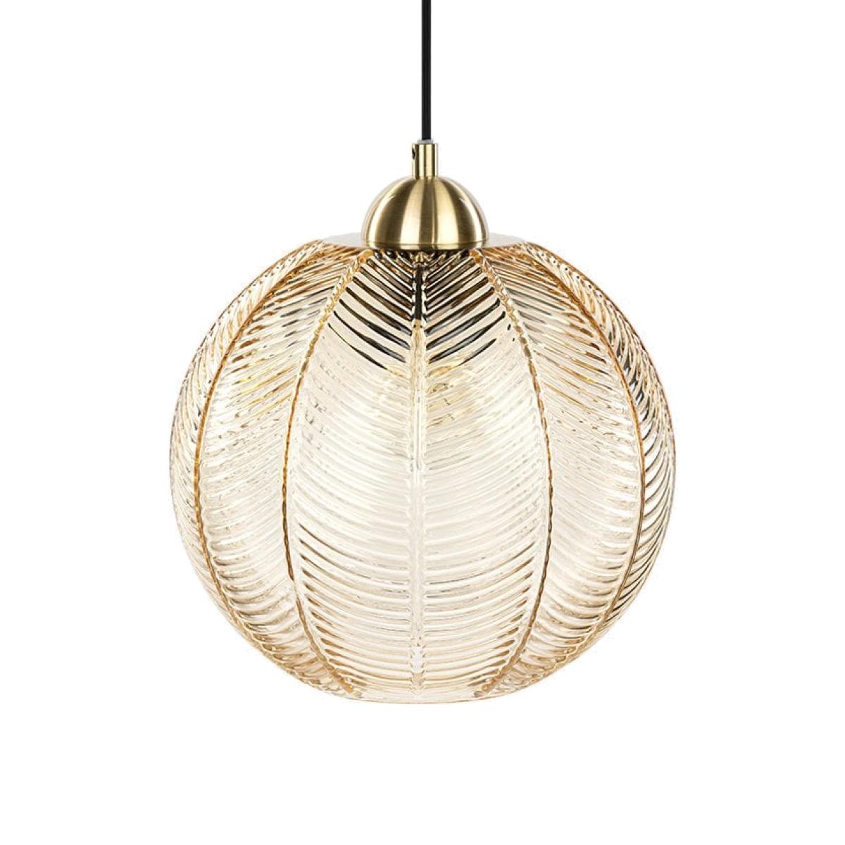 Unmistakable contemporary piece designed by our Cult Design Team, the Calla tawny brown glass pendant light features a curved glass shade with a textured palm leaf print for a tropical feel. We love the retro hue teamed with the brushed brass fixture that adds a sleek modern touch to your home interior.