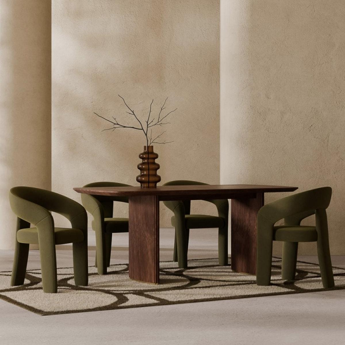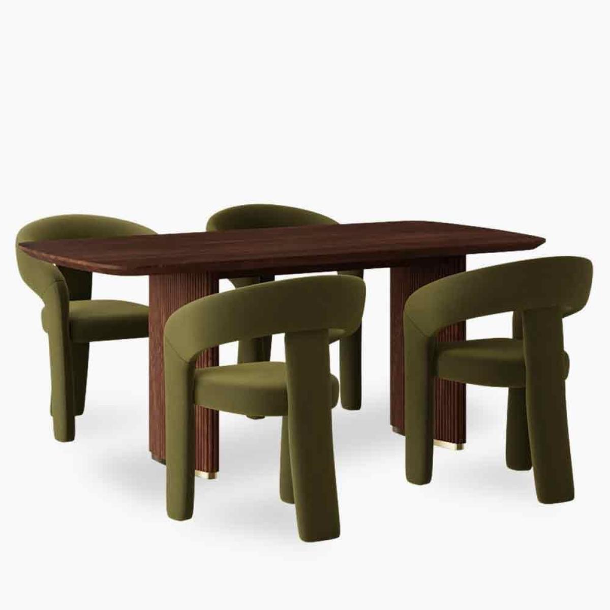 £146 Off Caleb & Bellamy 4 Chairs Dining Set, Walnut & Olive Green Sustainable Velvet