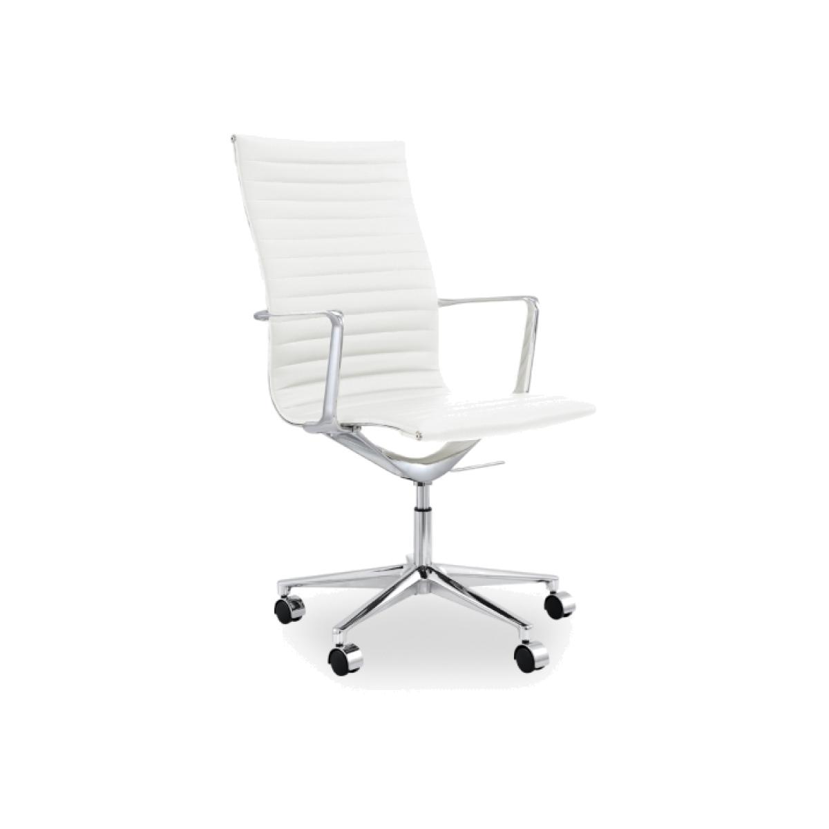 Comfortable office chairs in a wide selection of styles and colours for your office or workspace. An office chair that is both stylish and comfortable, meet the Ribbed office chair in white faux leather with a high back. Showcasing an ergonomic height-adjustable seat, on a swivel metal base with five rollerball wheels - making this chair ideal for those long working days at home or in the office. Made with our new style U shape bracket, sleek chrome frame and armrests, these elements have clean lines for a minimal look. The backrest is supportive and contoured whilst the seat foam cushioning offers maximum comfort. View The Ribbed Office Chair Range Seat Material: Faux Leather Leg Material: Metal Assembly: Full Assembly Required Download Assembly Instructions Additional Features: Adjustable and Swivel Care: Wipe with a dry cloth Dimensions Total Size: H 103-111 x W 59 x D 63cm Seat Height 47-55cm Armrest Height 68- 76cm Backrest Height 61cm Weight: 12kg Packing Dimensions 87 x 62 x 38cm. Buy your Cult Living Ribbed Office Chair with High Back, White from a wide range of Furniture, Office Furniture, Office & Desk Chairs