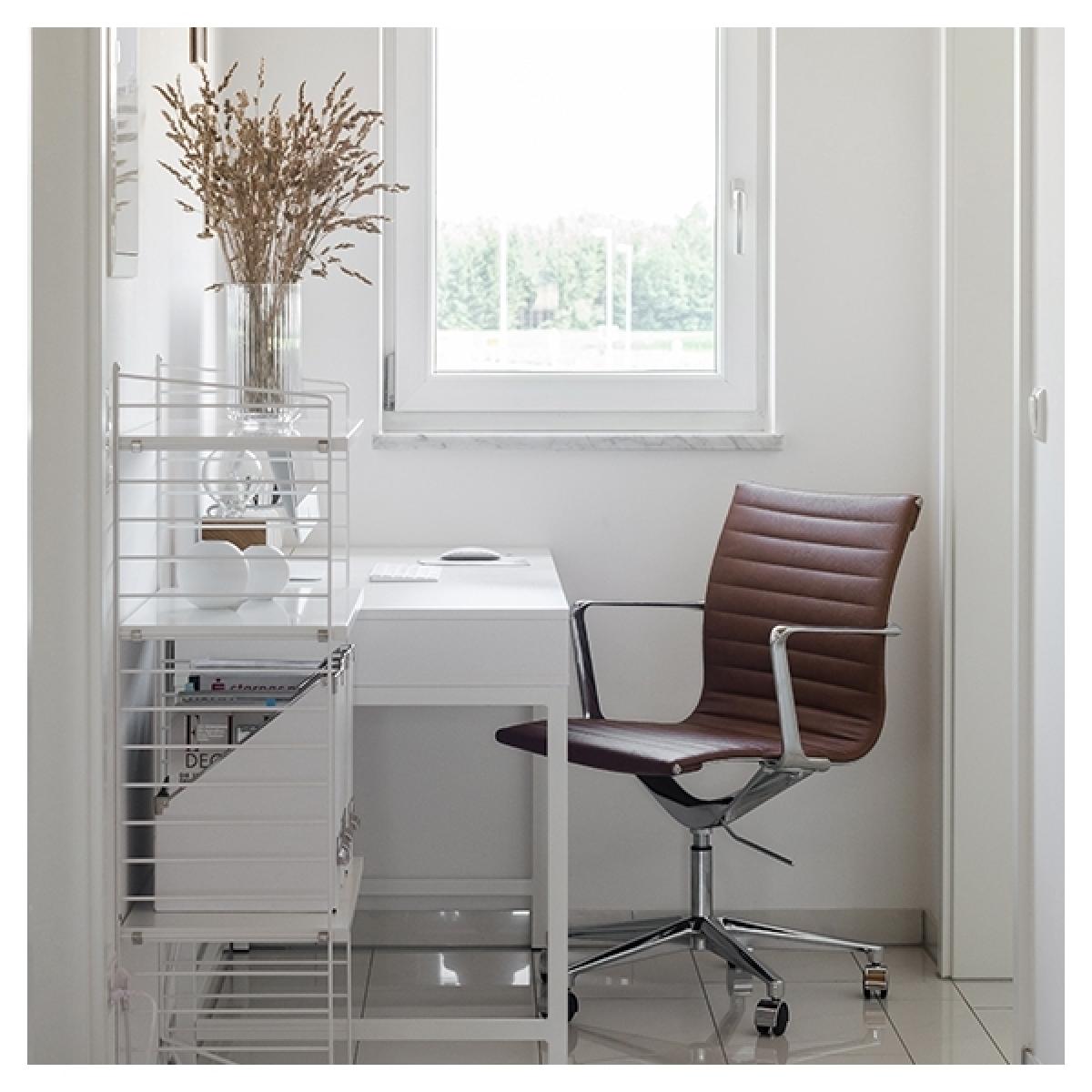 I love this low-back office chair for its sleek, modern look and versatile colour, making it easy to blend into various interior styles, from contemporary to minimalist schemes. The sage grey tone brings a calm, sophisticated touch and works well with both neutral palettes and more vibrant accents. Practical styling tips include pairing it with a simple glass or timber desk to keep the space feeling open, and adding soft textiles like a cosy rug or tactile accessories to create a more inviting work area. Its understated design makes it suitable for both home offices and smart, professional settings, offering a neat, functional addition without overpowering the decor.