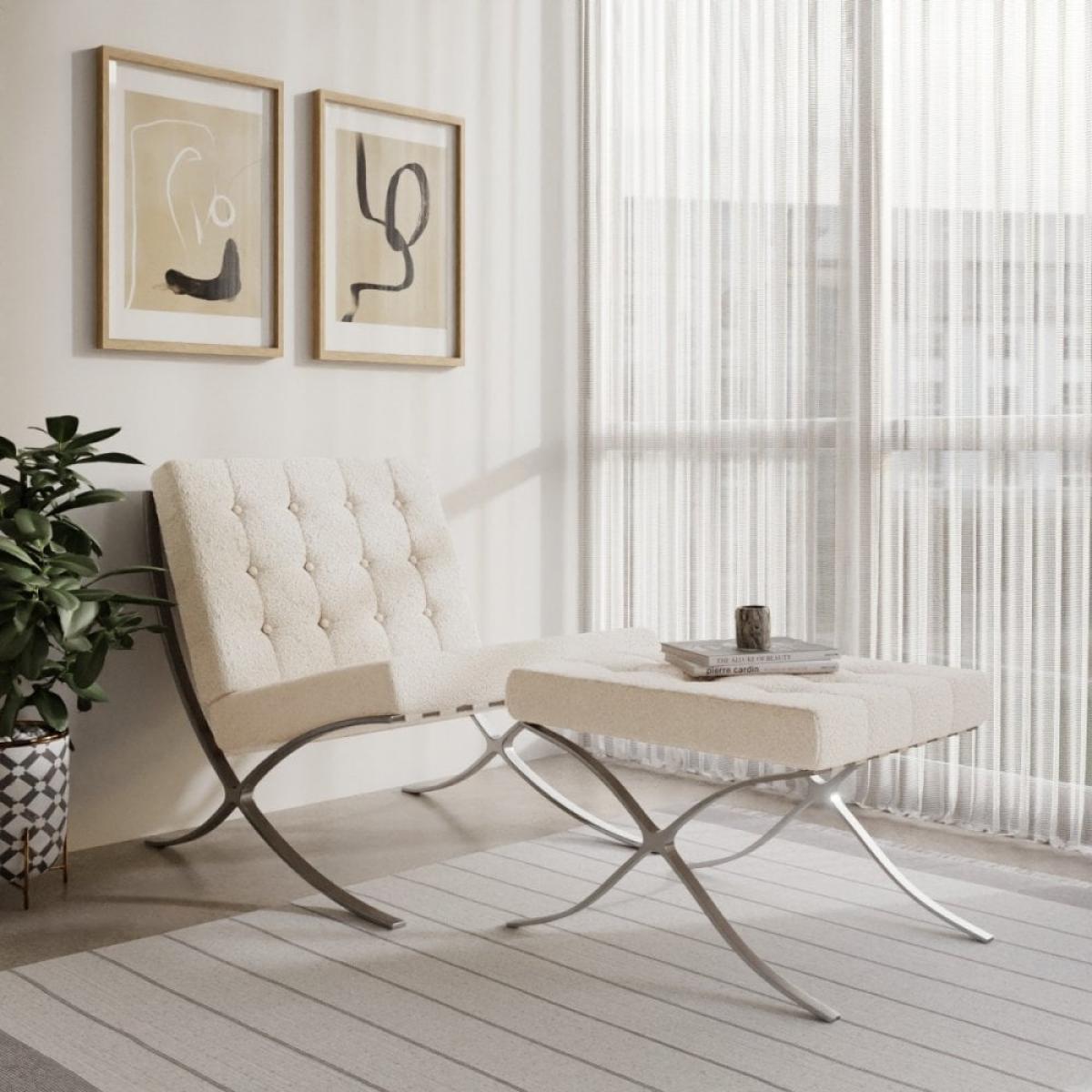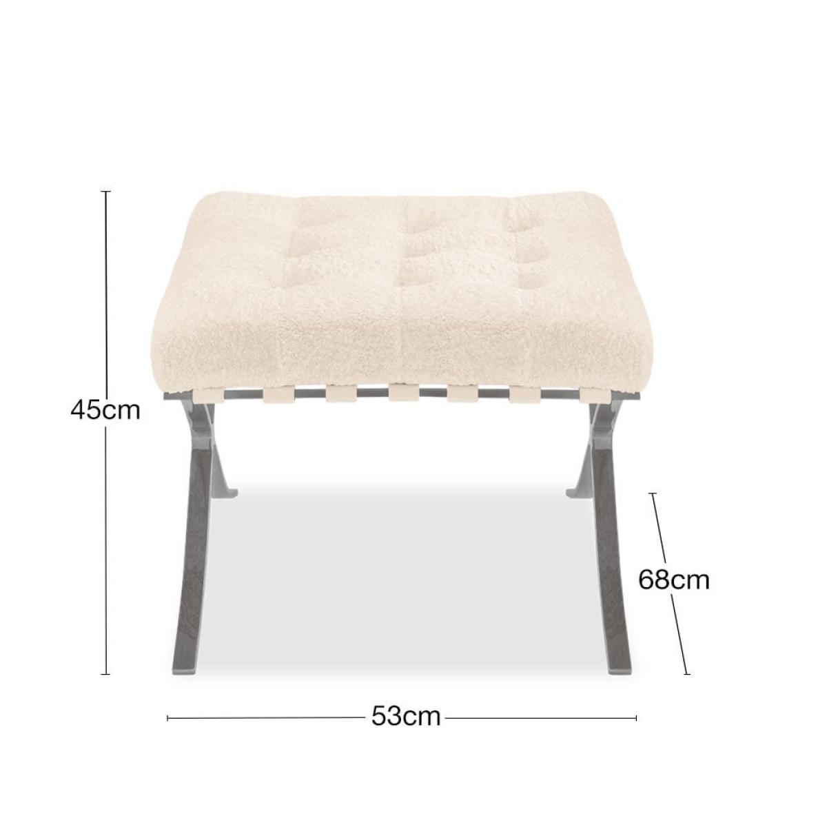 A timeless piece, this ivory white lounge stool is inspired by the "less is more" design. Packed with mid-century style the simple elegance of this chair adds a sophisticated look to any room. The Cagney stool has a quilted padded boucle cushioning making it perfect for the home, office or waiting rooms. Available in a boucle with chrome and chrome black legs, the Cagney stool is an icon of Barcelona modernist design, and we love it!