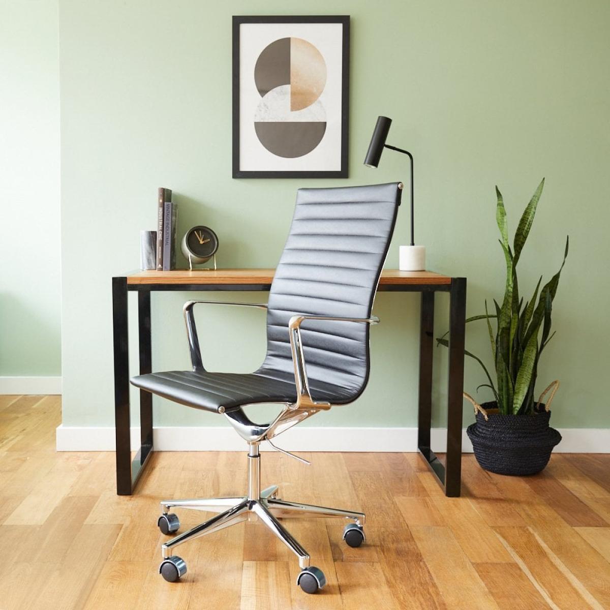 I love this office chair for its sleek and modern look, making it a versatile piece that works well in both contemporary and minimalist interiors. Its black ribbed design adds subtle texture without overwhelming the space, and the high back provides excellent support for long workdays. Styling tips include pairing it with a glass or wood desk for a clean, professional vibe, or softening its sharp lines with colourful accessories or textured rugs. It’s practical too, with a neutral colour slotting seamlessly into most colour schemes, while its ergonomic design ensures comfort during extended use. Overall, it’s a smart choice for anyone looking to combine function with a polished aesthetic.