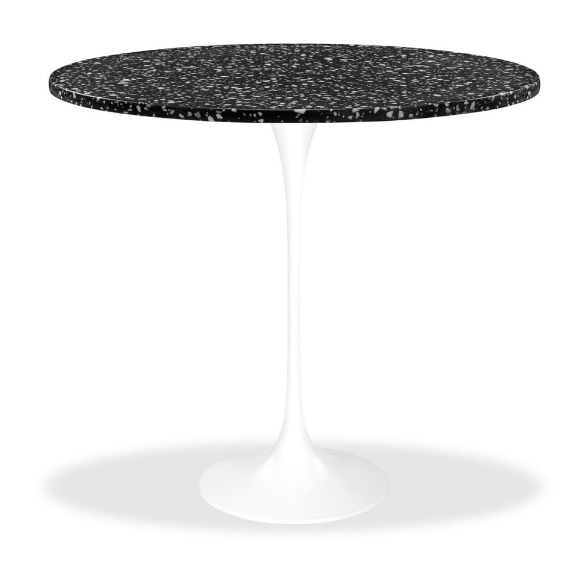 Accommodating up to 4 people, the Fulham Table Range mixes the natural qualities of a terrazzo tabletop with the modernity of a curved sculptural stand in a white metal finish. With the smooth terrazzo tabletop in black for a contemporary bistro vibe to your kitchen and available in two tabletop sizes, our Fulham Round Bar Table makes a chic addition to any dining space. And if you buying for business? You can head to our Trade Team for more details. Please note: The table requires assembly, which includes drilling holes into the tabletop. Doing so is a simple process we have detailed below: The tabletop has a wooden underside that can be lined up with the base. Drill small guide holes into the wood and then drill in the inserts. Attach the tabletop to the base with the 10mm bolts we have provided. View The Fulham Range