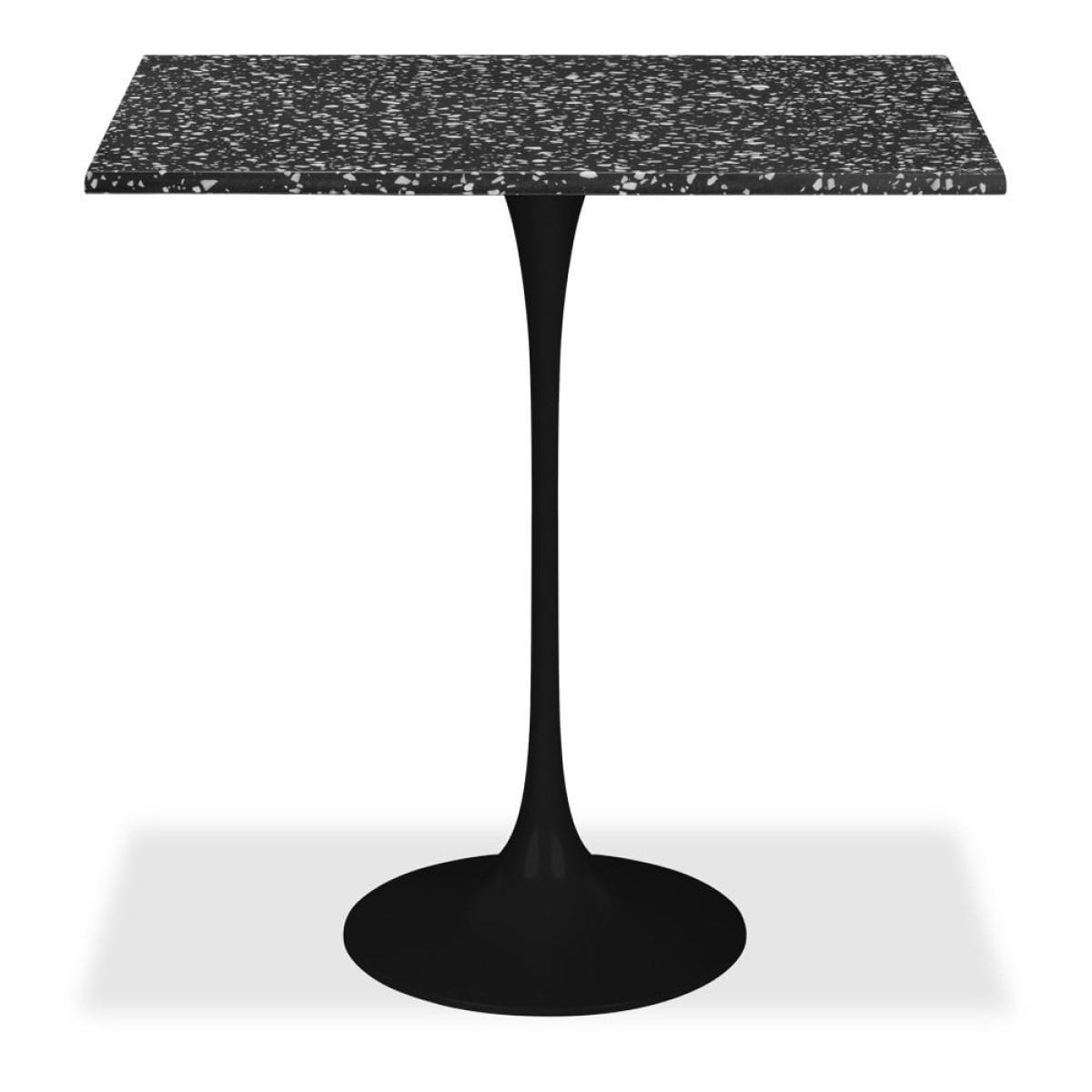 Accommodating up to 4 people, the Fulham Table Range mixes the natural qualities of a terrazzo tabletop with the modernity of a curved sculptural stand in a black metal finish. With the smooth terrazzo tabletop in black for a contemporary bistro vibe to your kitchen and available in two tabletop sizes, our Fulham Square Bar Table makes a chic addition to any dining space. And if you buying for business? You can head to our Trade Team for more details. Please note: The table requires assembly, which includes drilling holes into the tabletop. Doing so is a simple process we have detailed below: The tabletop has a wooden underside that can be lined up with the base. Drill small guide holes into the wood and then drill in the inserts. Attach the tabletop to the base with the 10mm bolts we have provided. View The Fulham Range