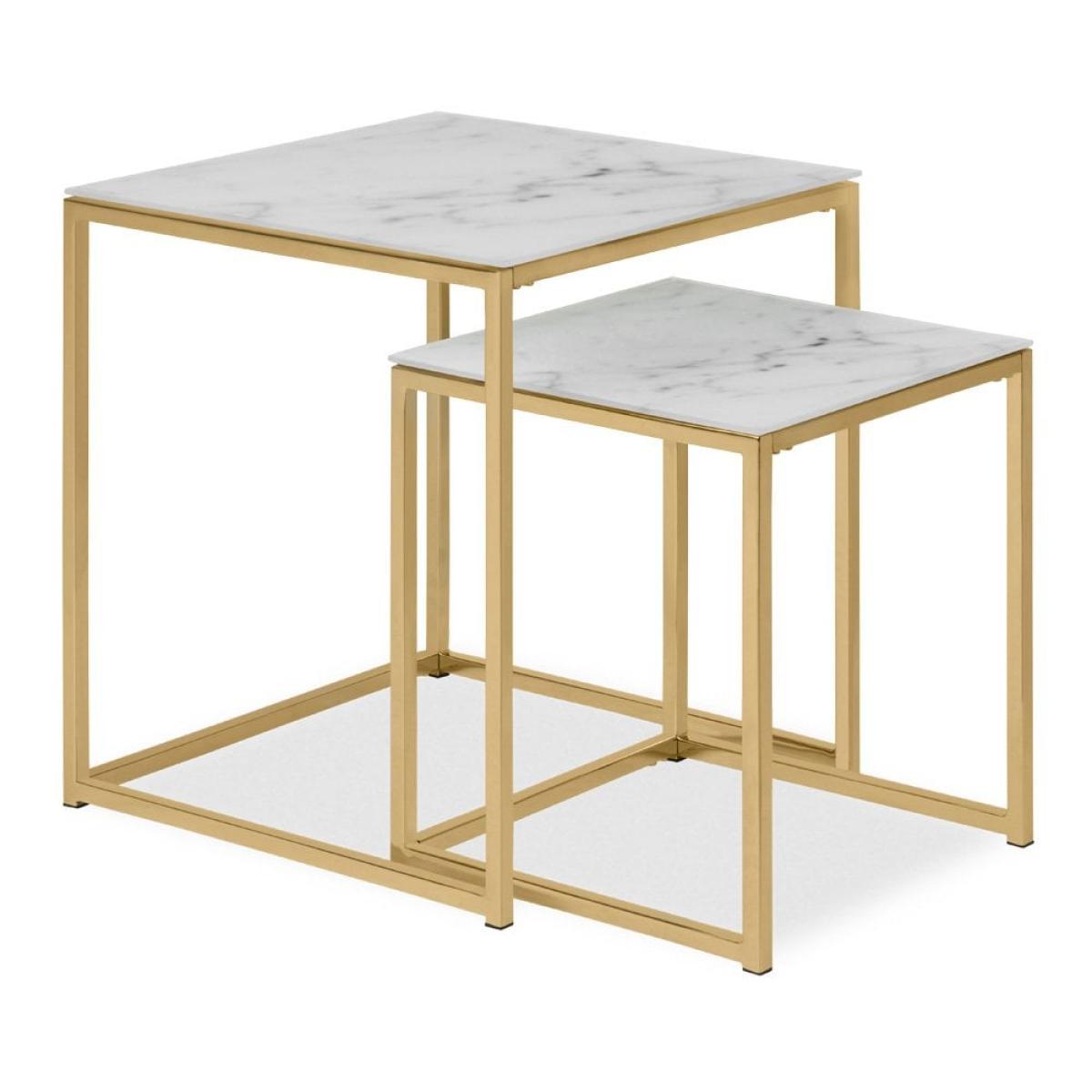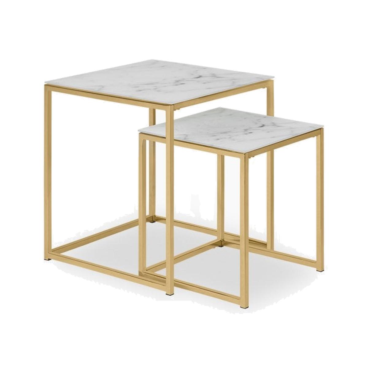 £20 Off Alisma Set of 2 Nesting Side Tables, White Marbled Glass & Brass