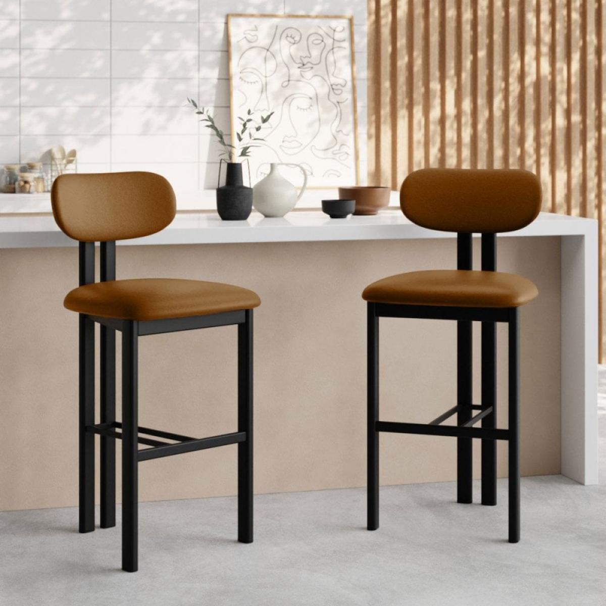 I love this bar stool for its versatile design and warm Tuscan Tan finish, which adds a cosy, inviting feel to any space. It works particularly well in contemporary or rustic kitchens and bar areas, where its clean lines and earthy tone can complement natural materials like wood and stone. Practical styling tips include pairing it with mid-century or industrial-inspired finishes or using it to create an eclectic mix with more modern pieces. Its neutral hue allows for easy coordination with various colour schemes, making it a practical choice for both everyday use and added visual interest in a social space.